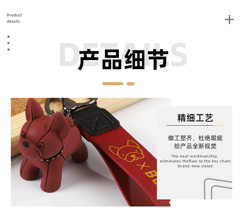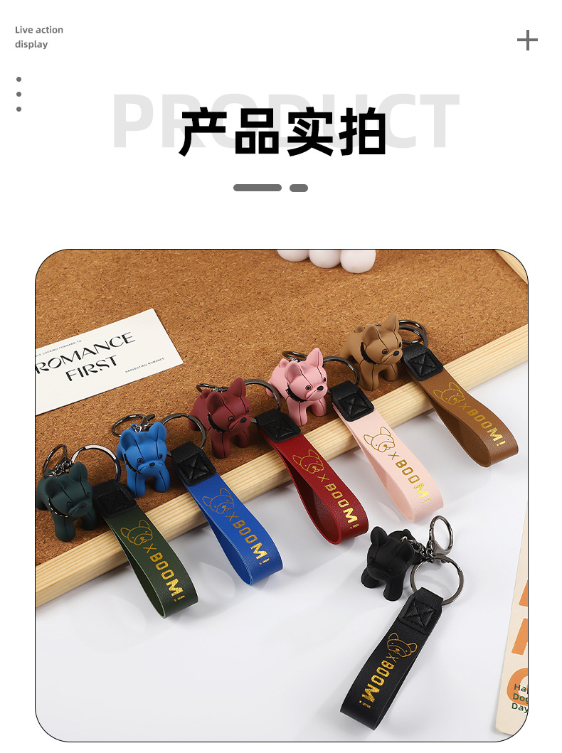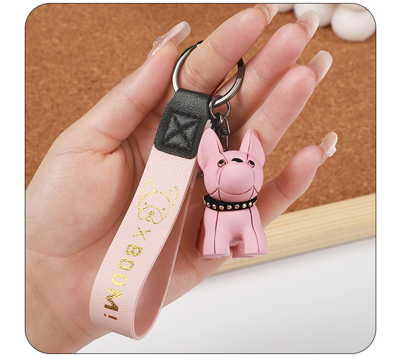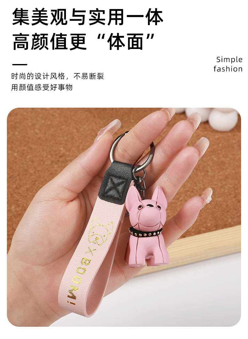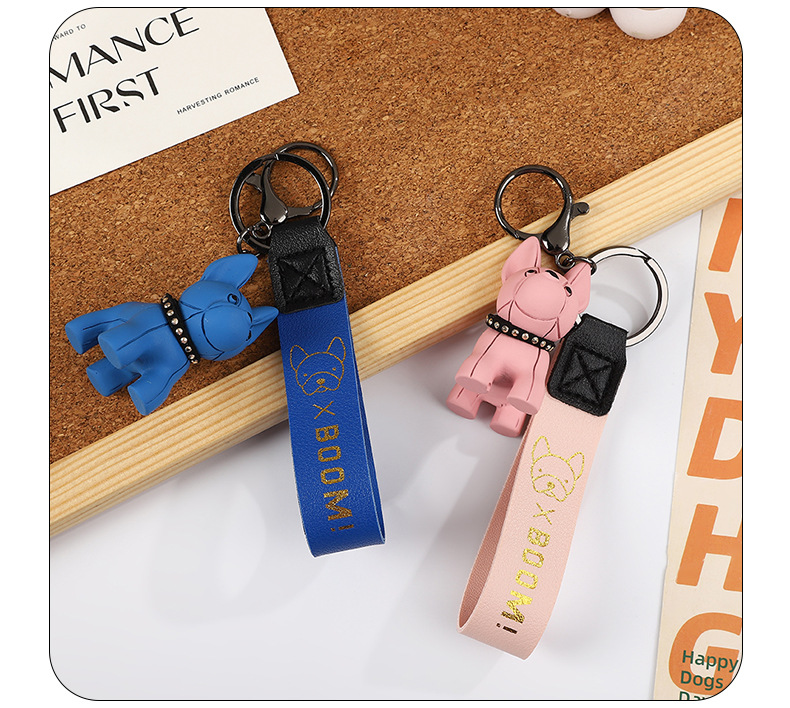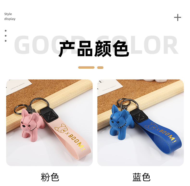 烫金BOOM狗钥匙扣可爱公仔钥匙链皮革腕带卡通小狗简约钥匙扣挂饰