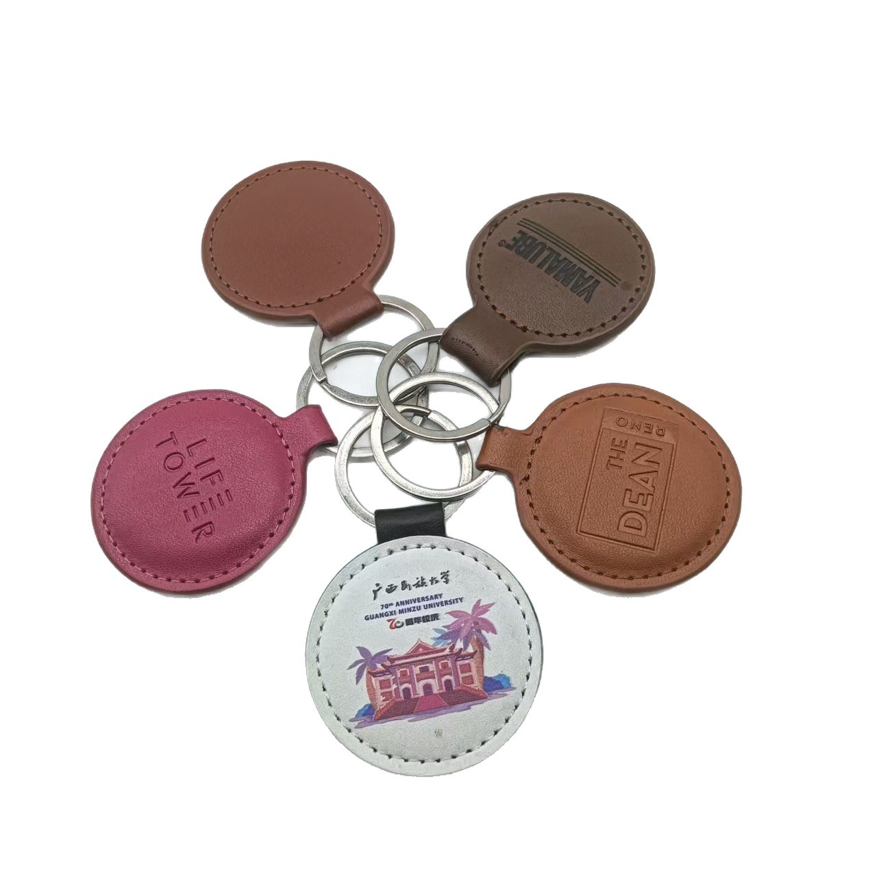 简约皮质圆形钥匙扣 包包钥匙圈挂件 活动小礼品配件可加LOGO广告