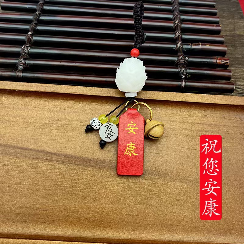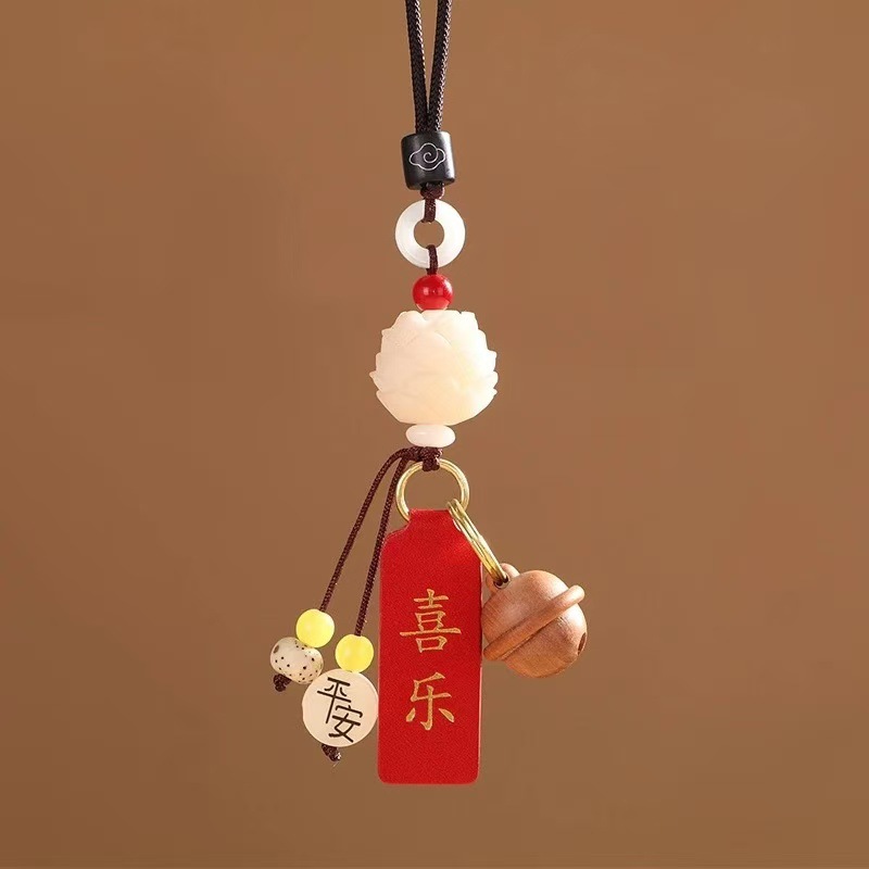 汽车挂件网红车内车挂饰菩提根莲花后视镜抖音同款平安喜乐钥匙扣