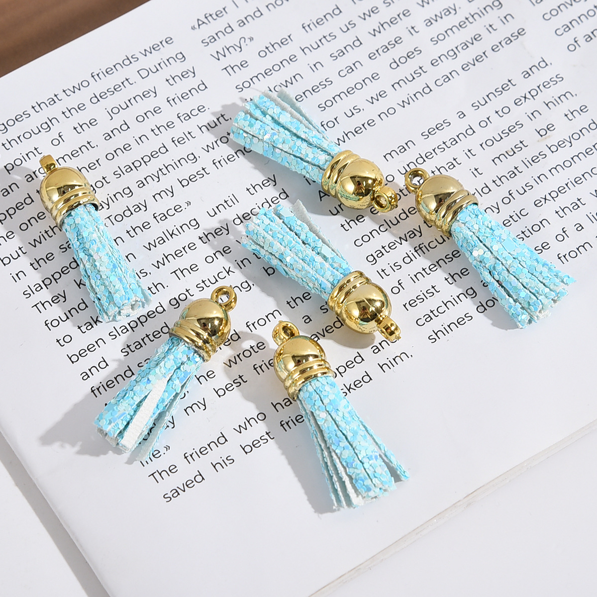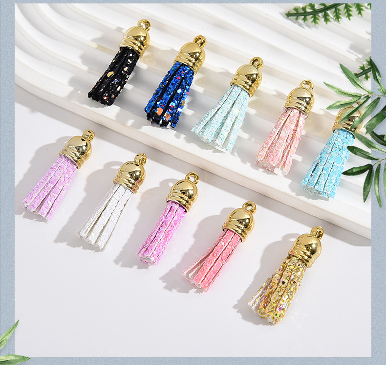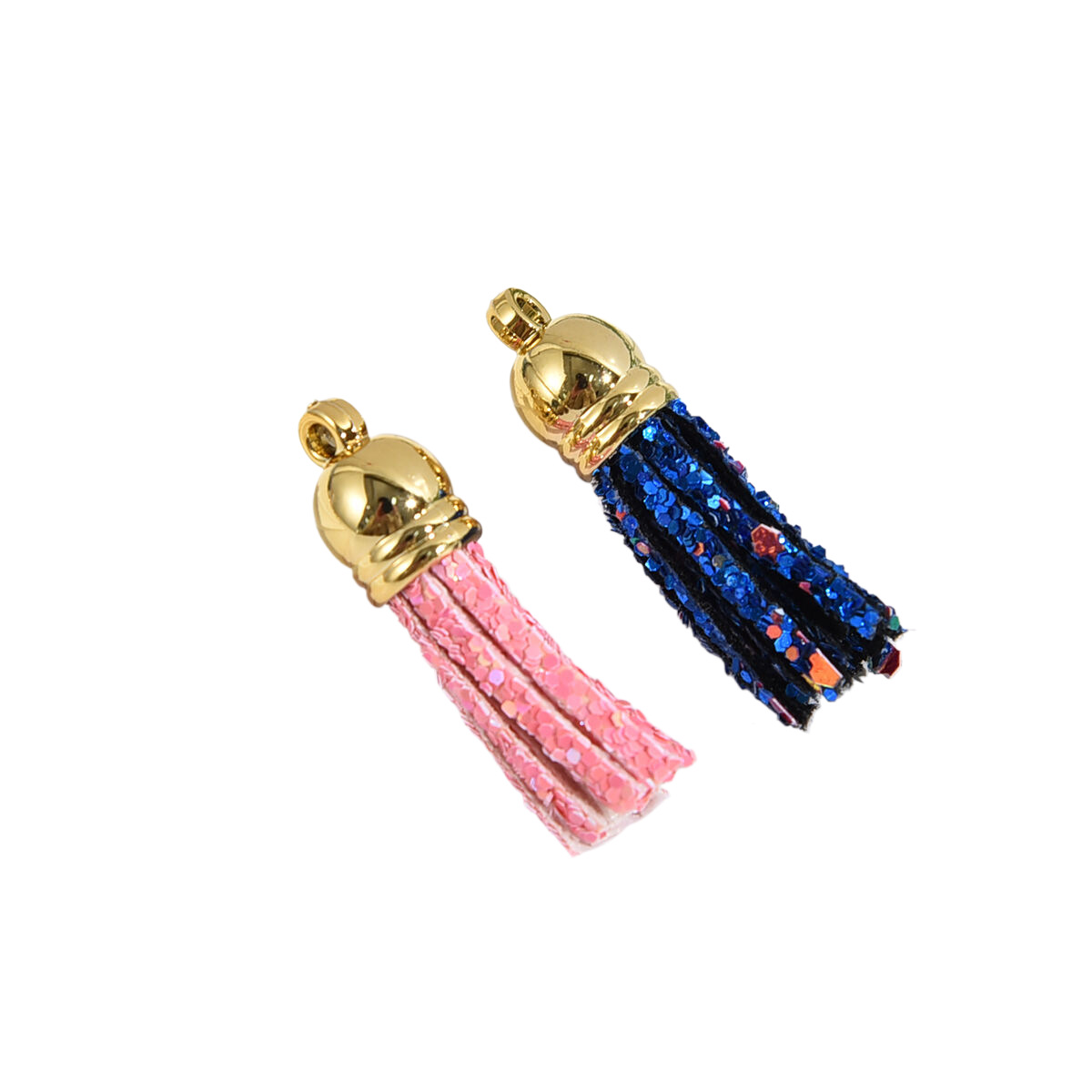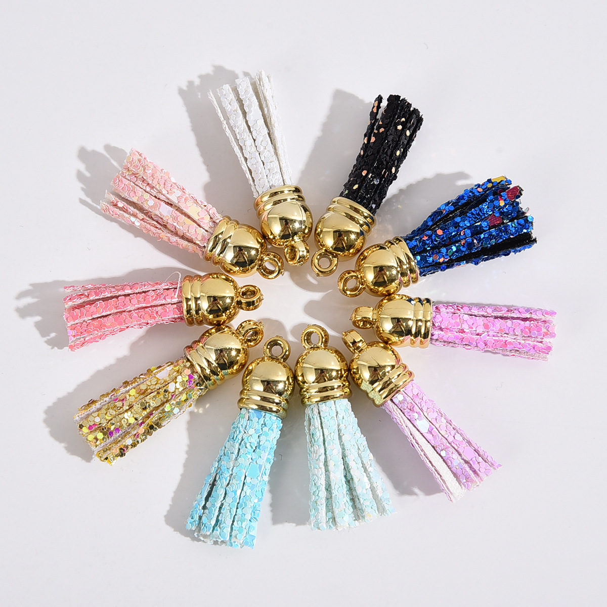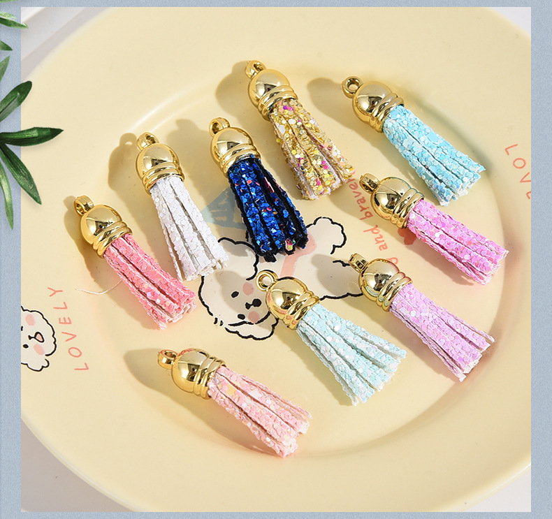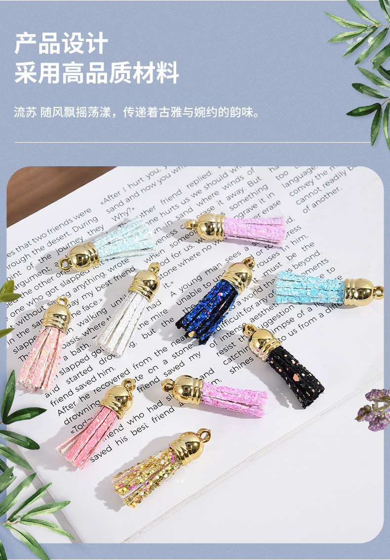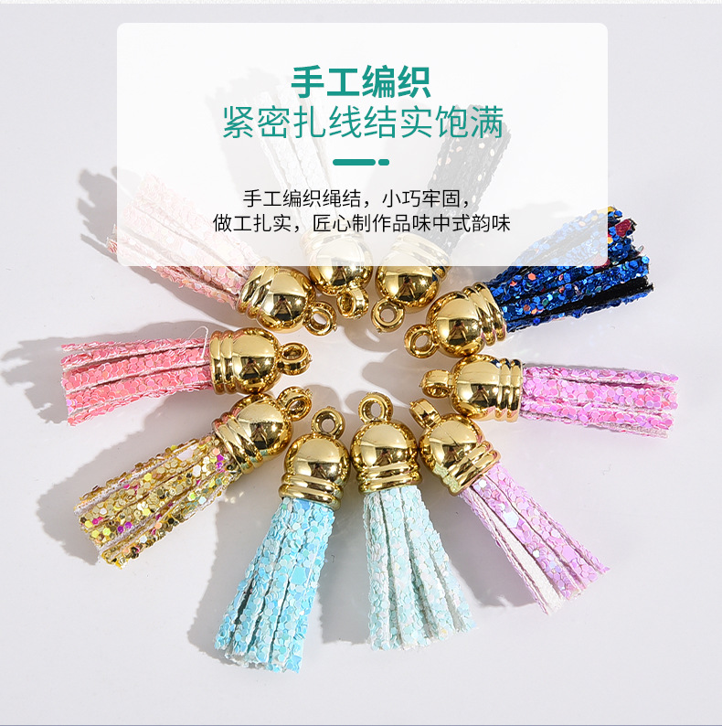 跨境热卖韩国绒流苏皮革流苏DIY配件钥匙扣流苏3cm金帽头流苏穗子