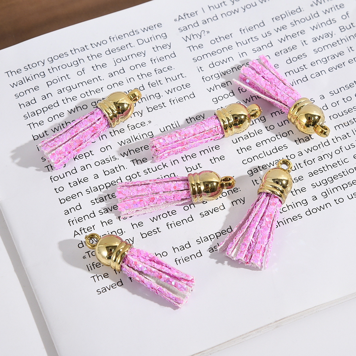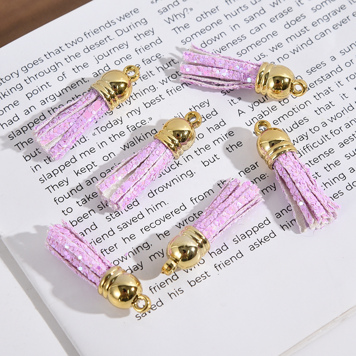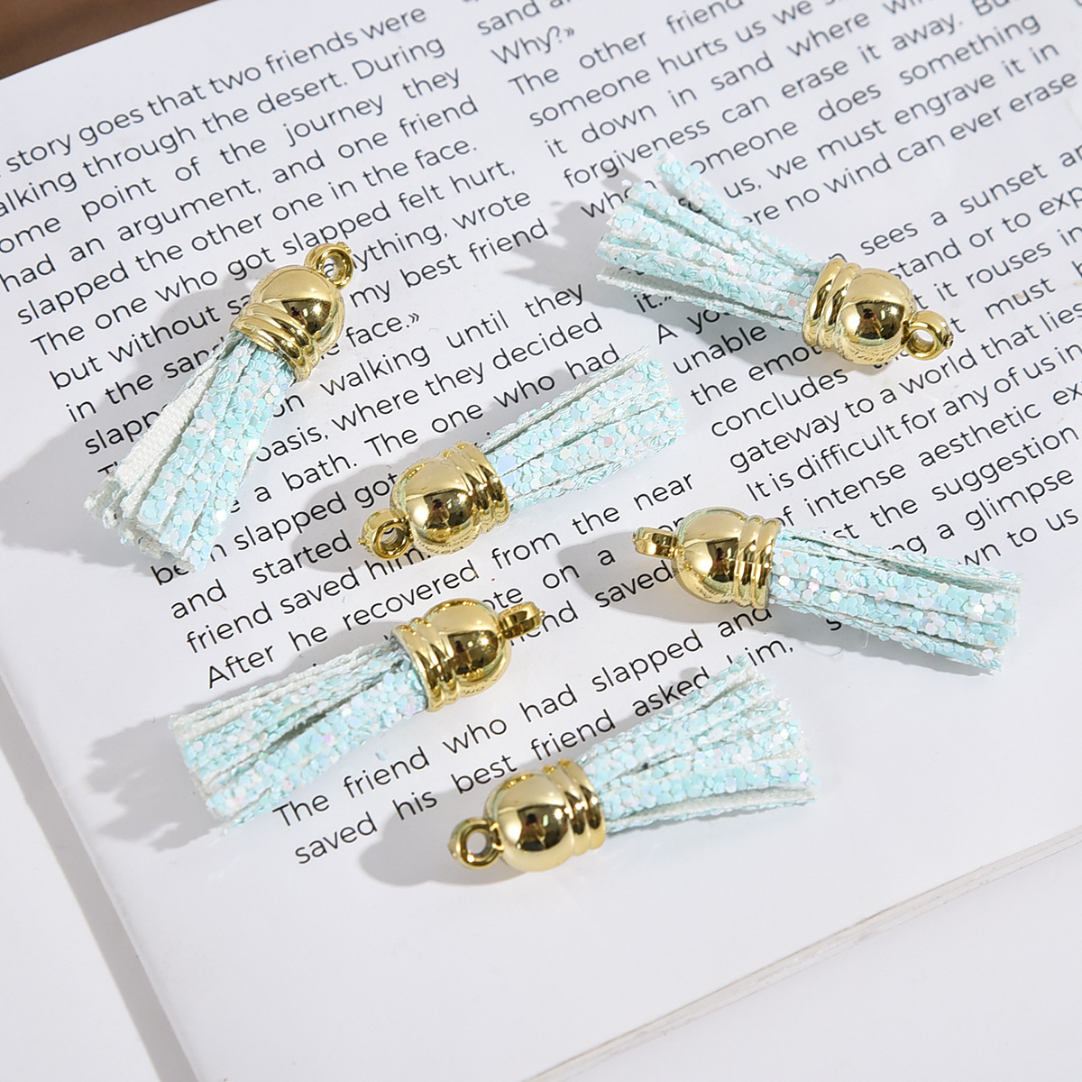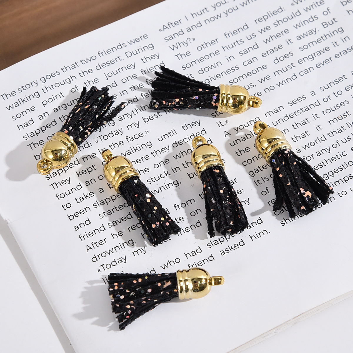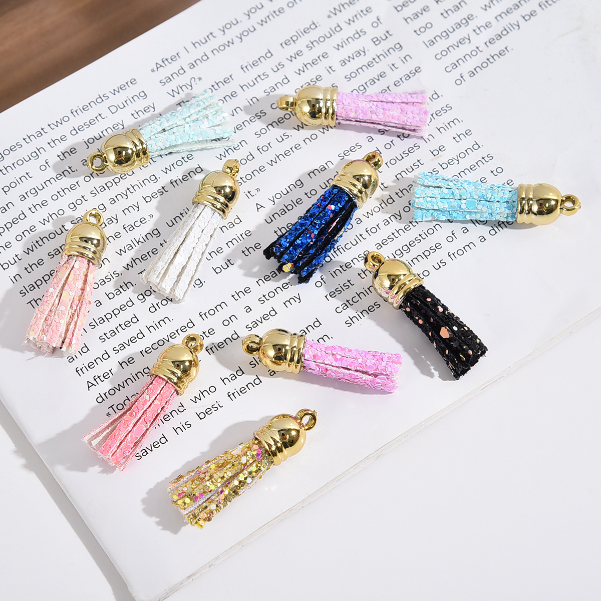 跨境热卖韩国绒流苏皮革流苏DIY配件钥匙扣流苏3cm金帽头流苏穗子