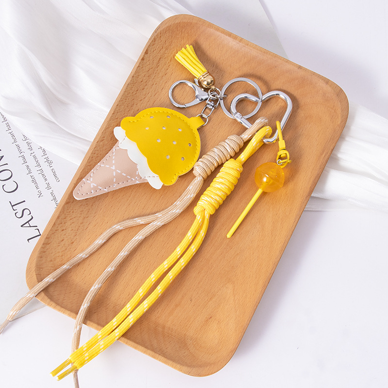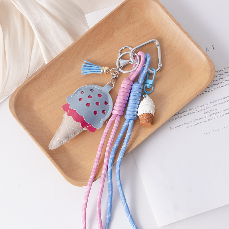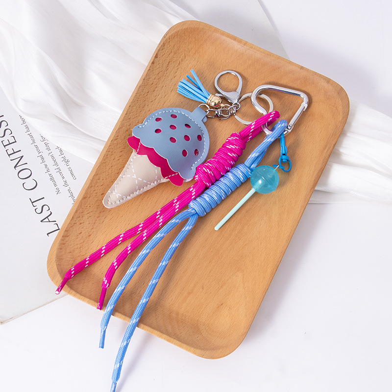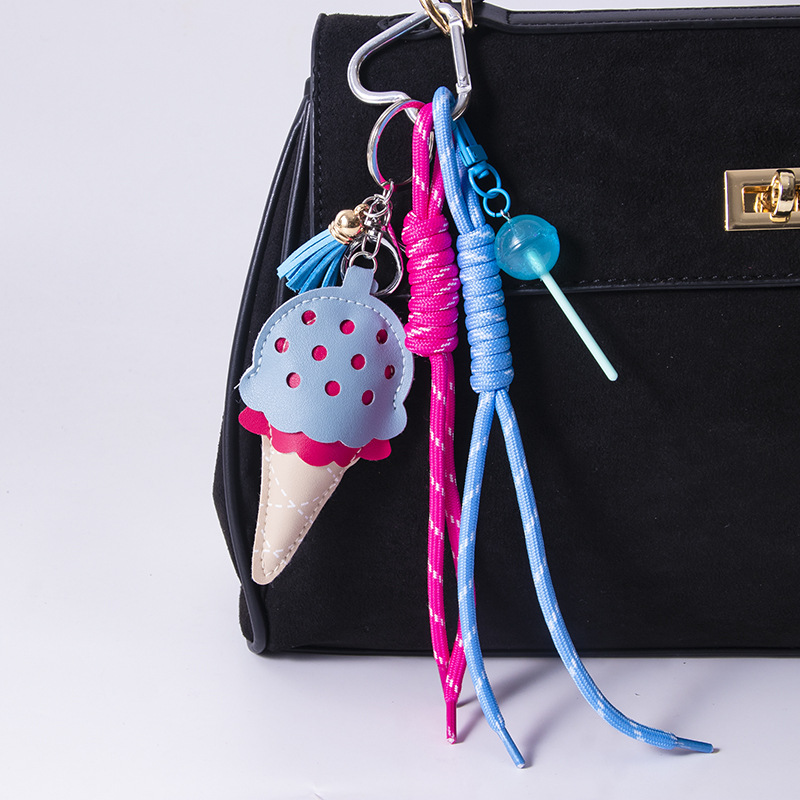 小众miu系皮质冰淇淋挂件迷你棒棒糖包包挂饰新品汽车钥匙链批发
