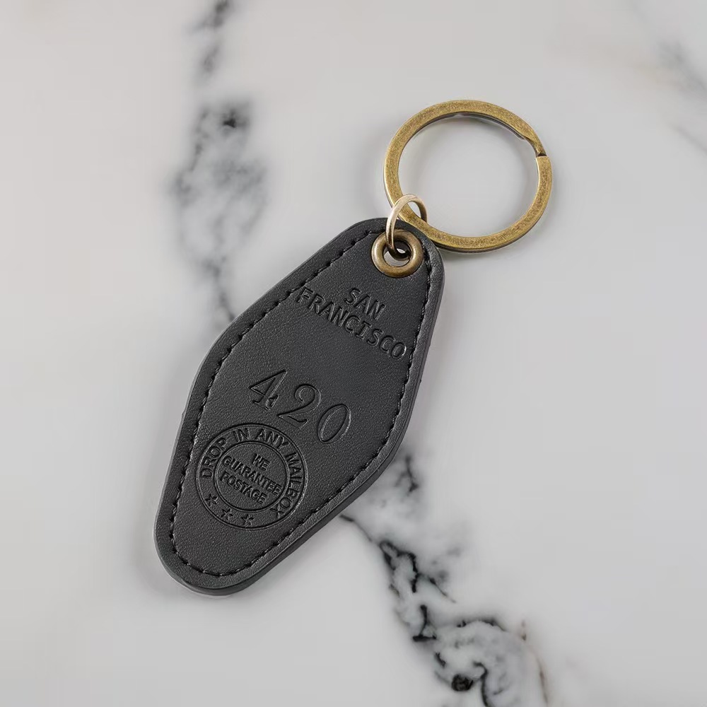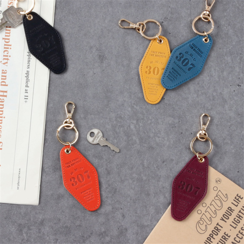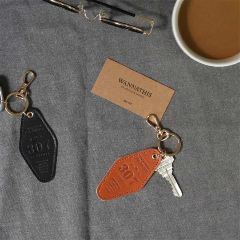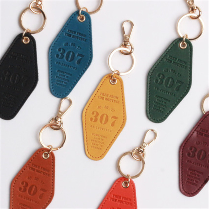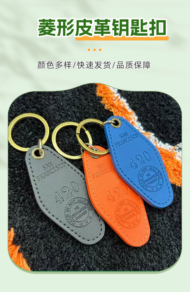 简约创意菱形皮革钥匙扣金属车钥匙钥匙圈箱包礼品配饰挂件logo