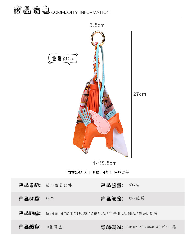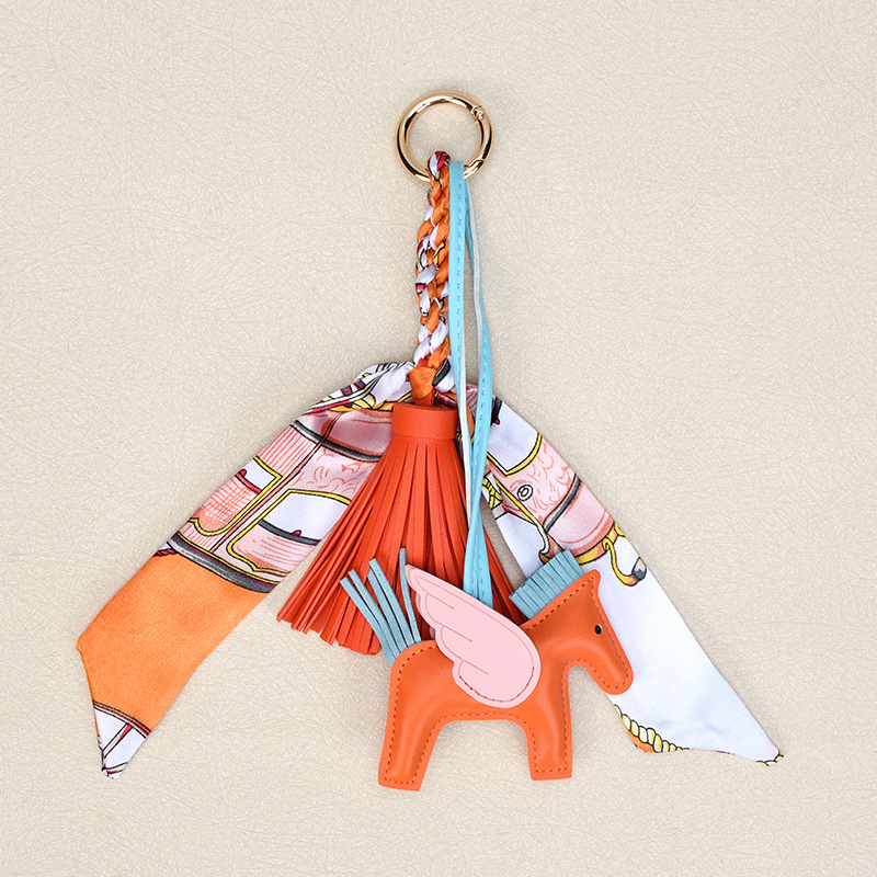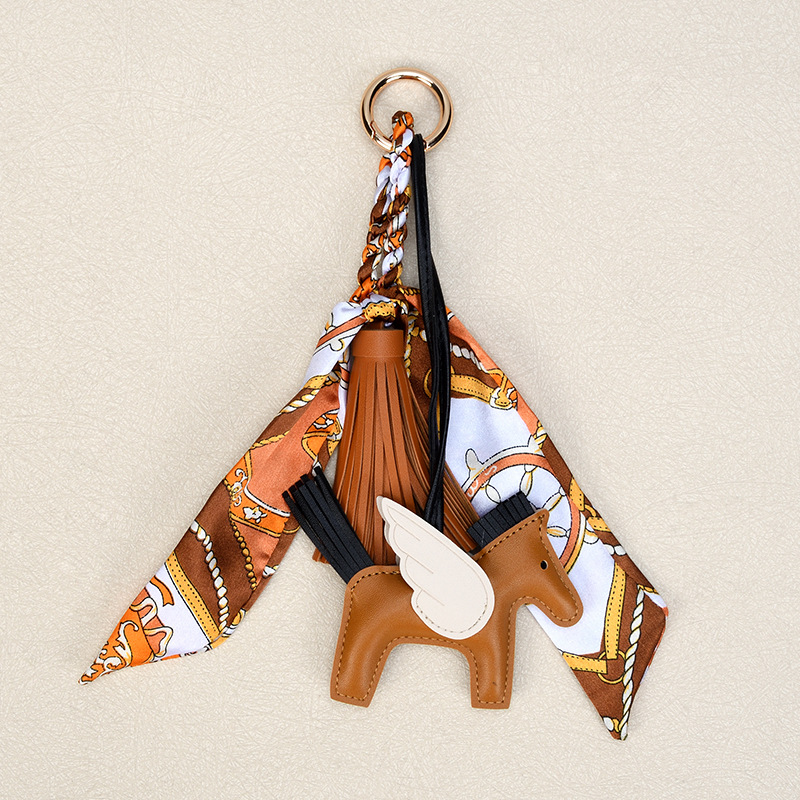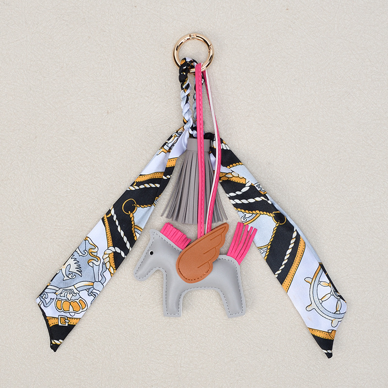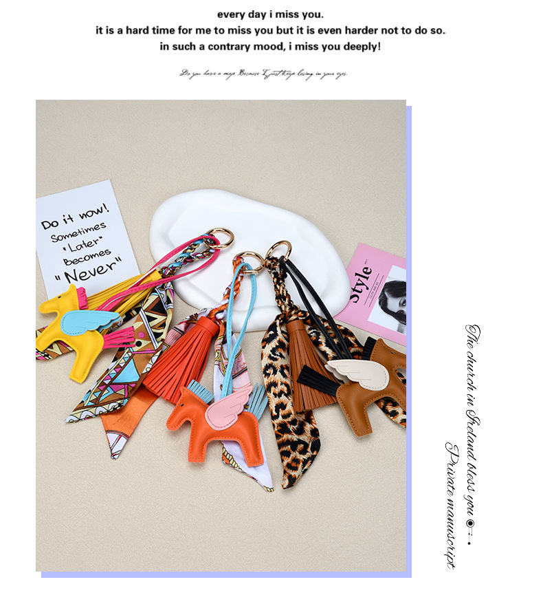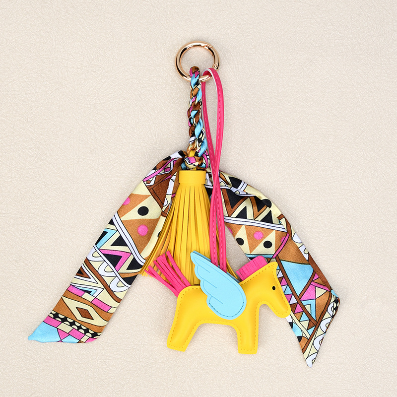 欧美跨境小飞马挂件高级丝巾PU皮革流苏穗子小马包包挂饰车钥匙扣