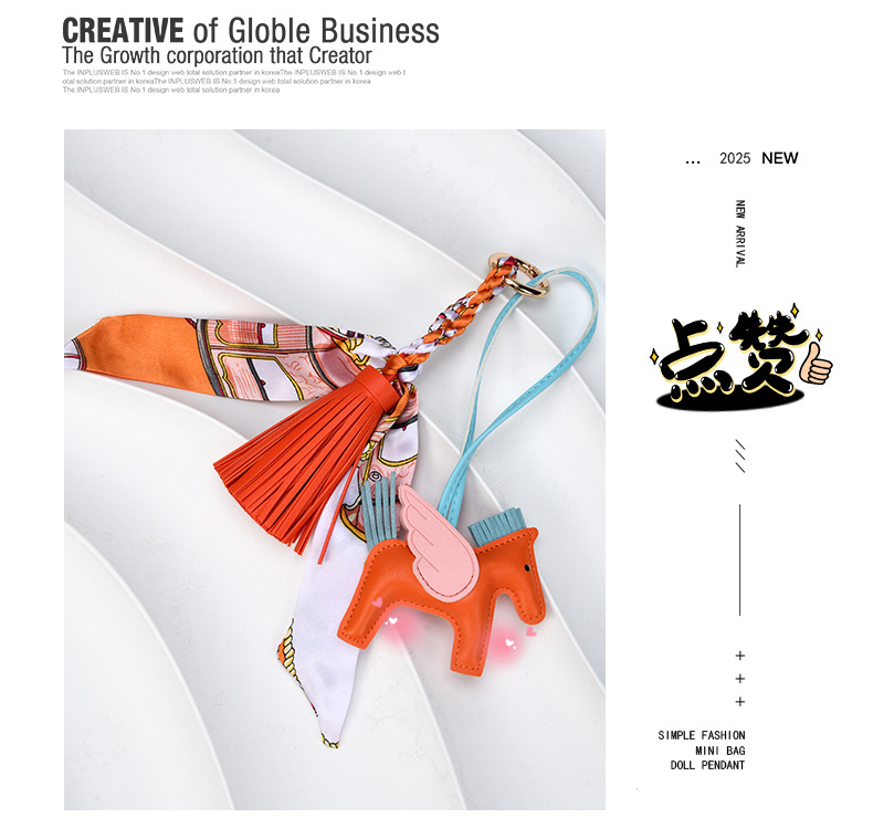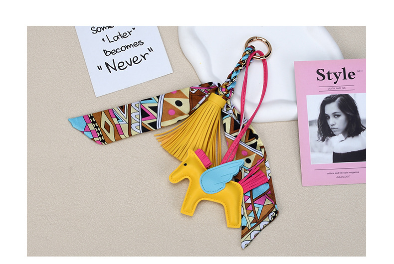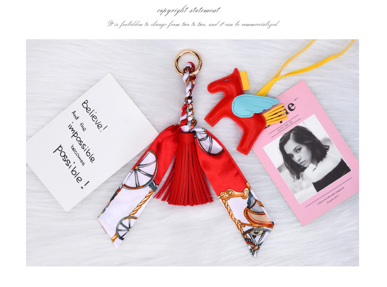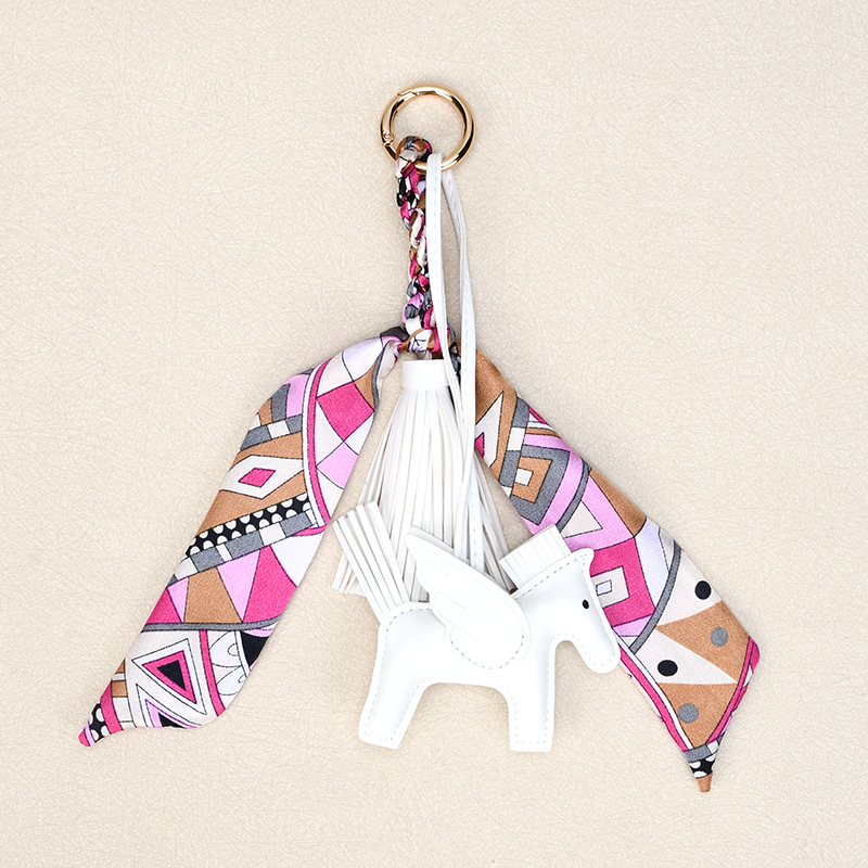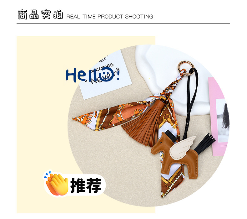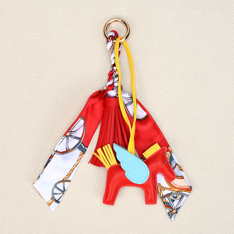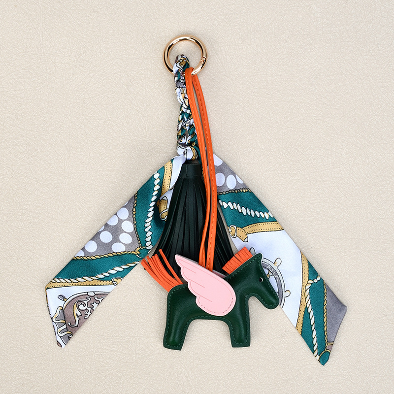 欧美跨境小飞马挂件高级丝巾PU皮革流苏穗子小马包包挂饰车钥匙扣
