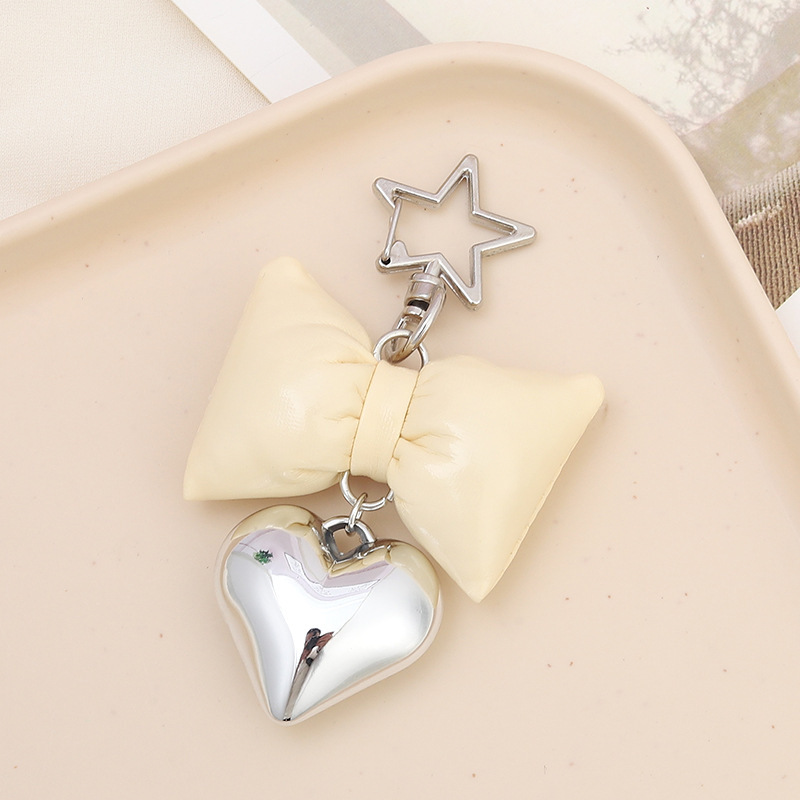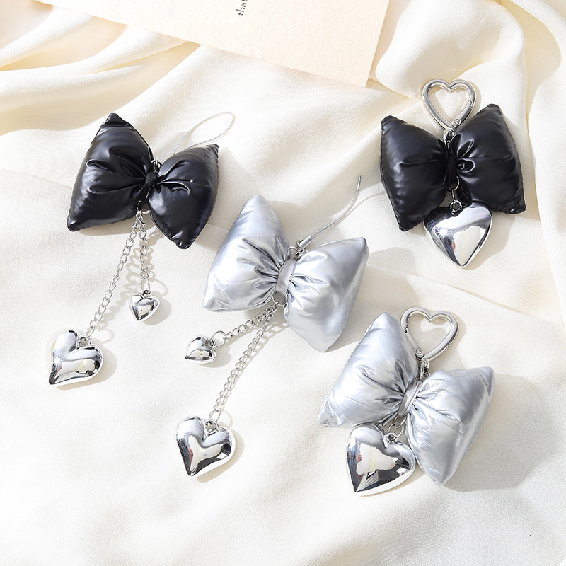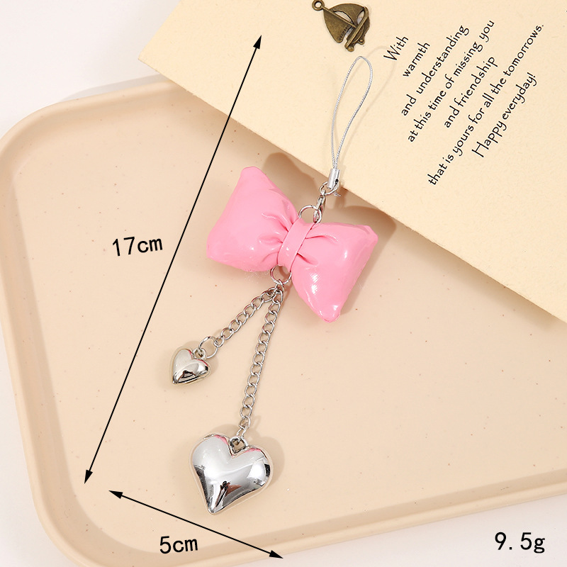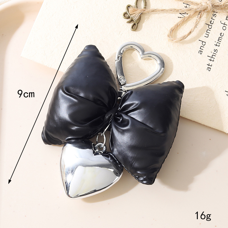 ins韩系小众新款充棉皮革蝴蝶结手机挂件 高级感包包钥匙扣挂饰女