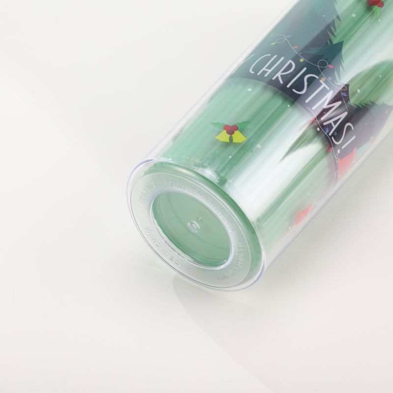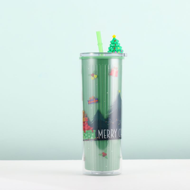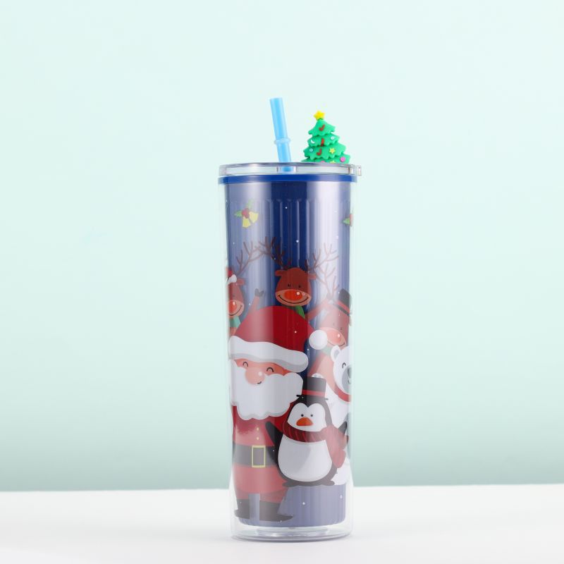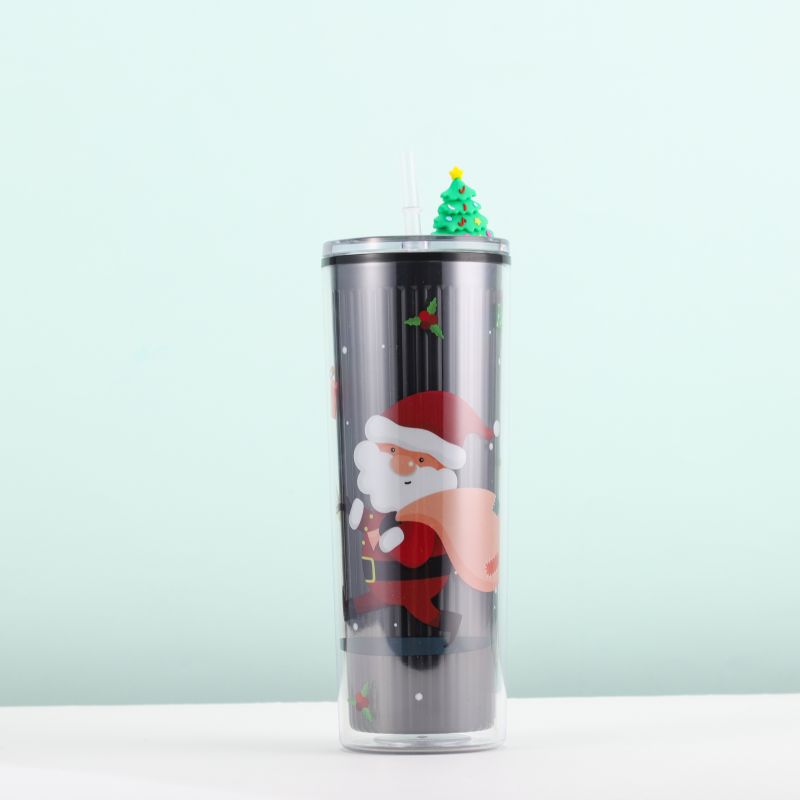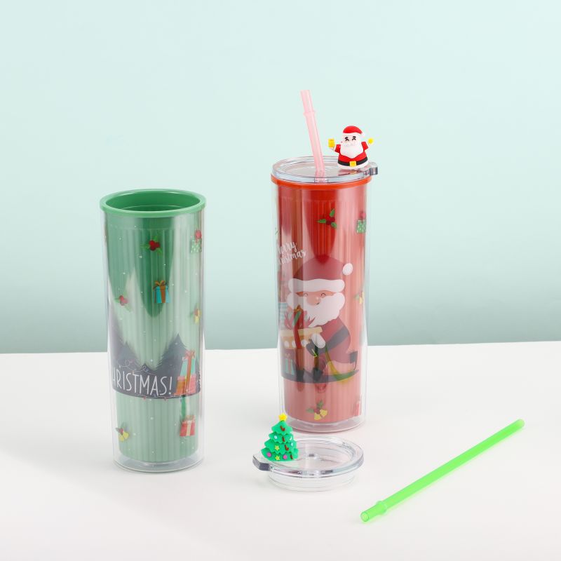 跨境爆款双层塑料吸管杯创意圣诞夏日冰杯学生便携情侣圣诞礼品杯