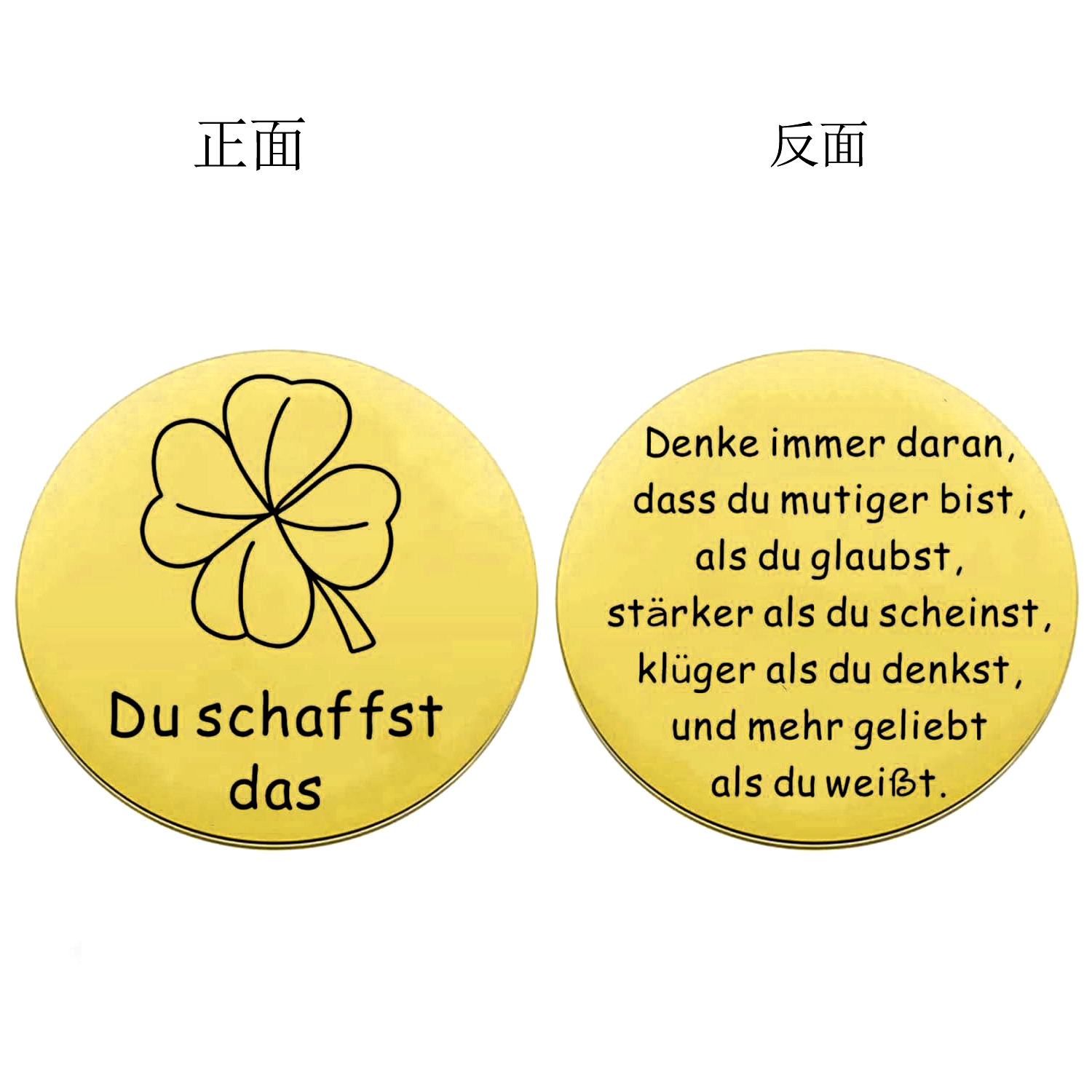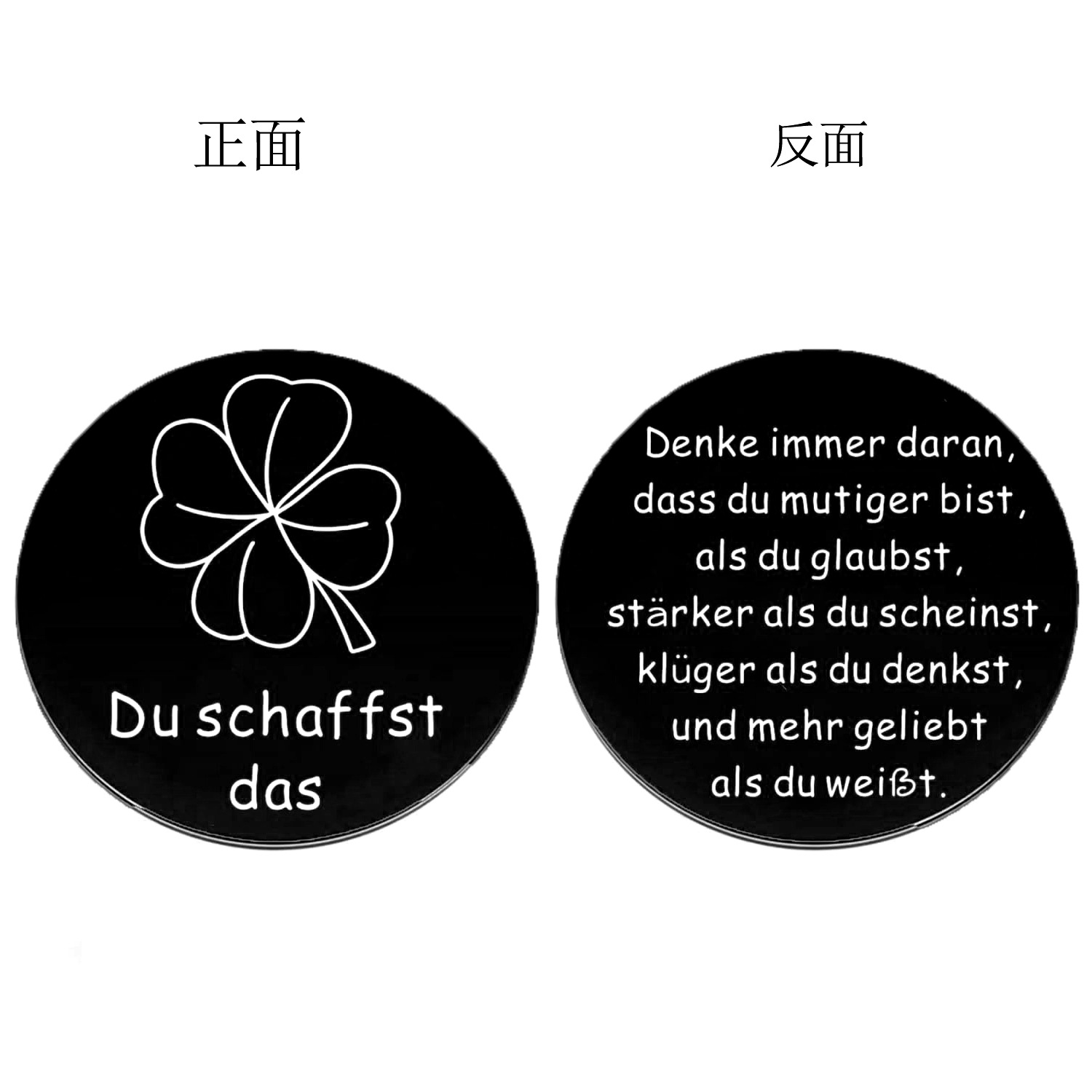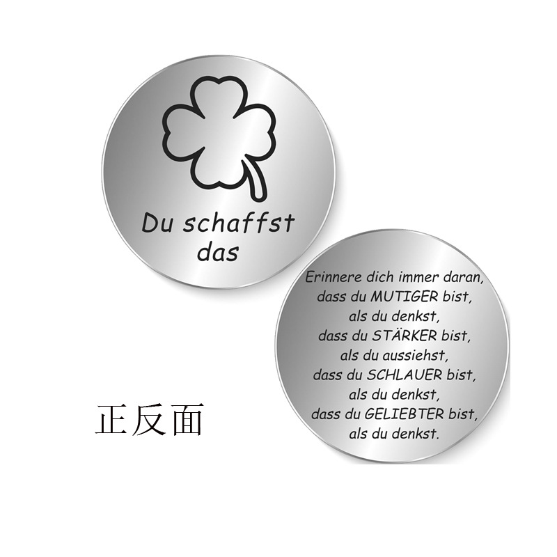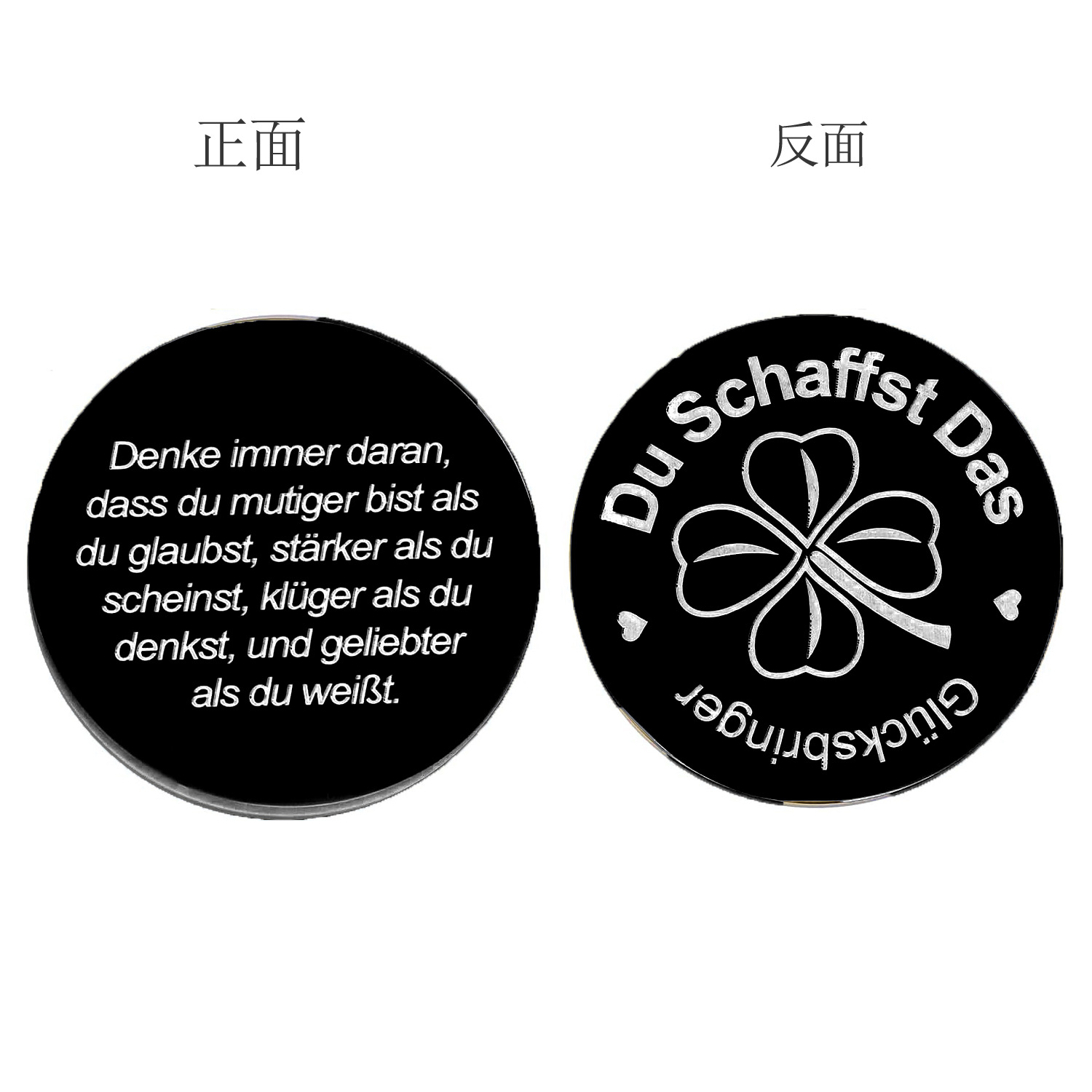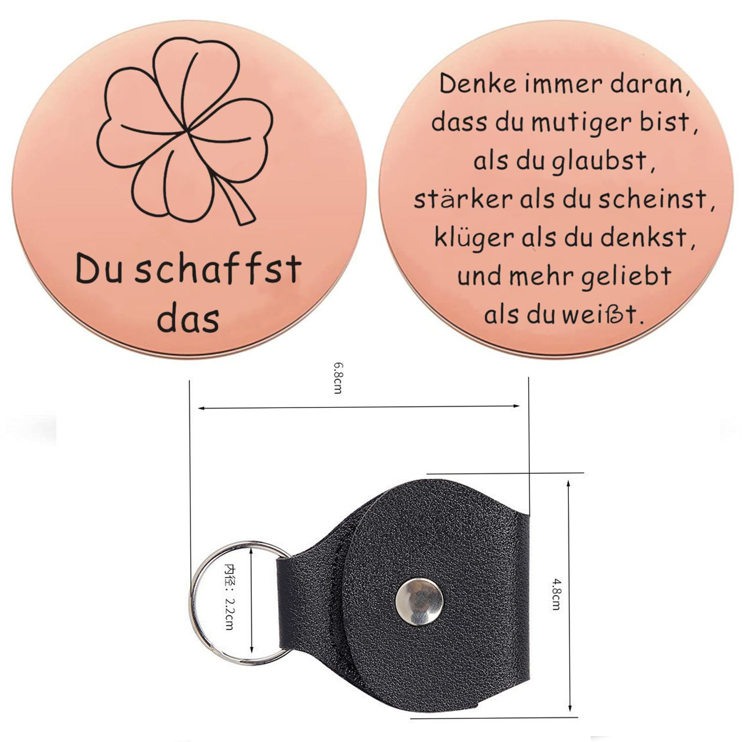 德语DU SCHAFFST DAS四叶草幸运币拥抱币皮革钥匙扣 双面雕刻四色
