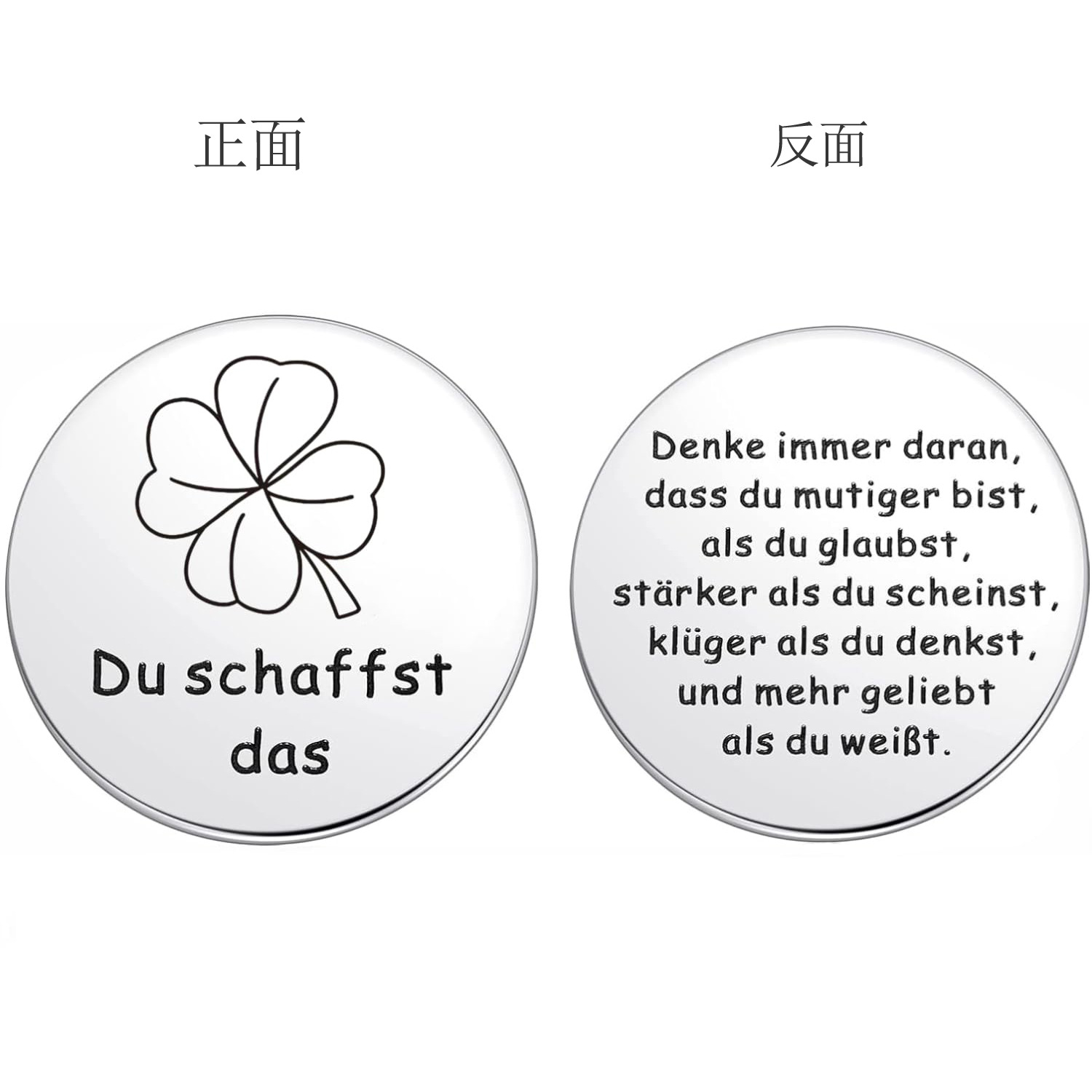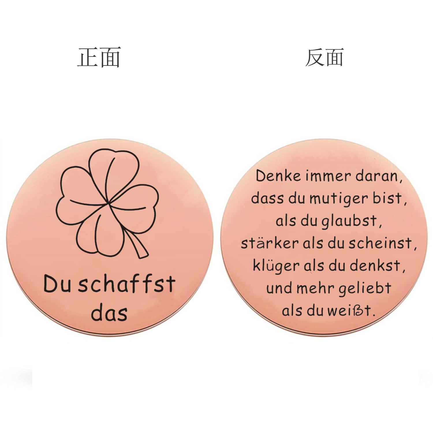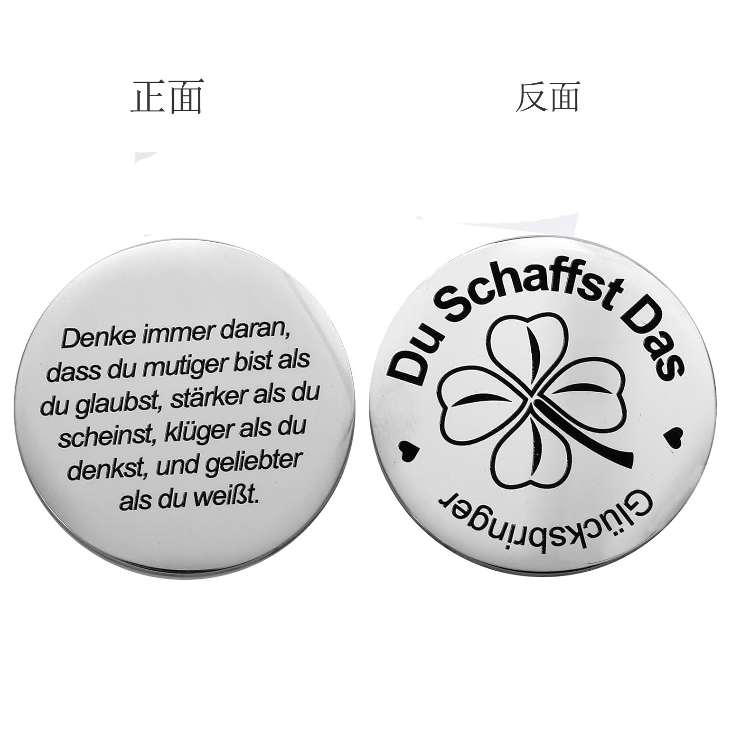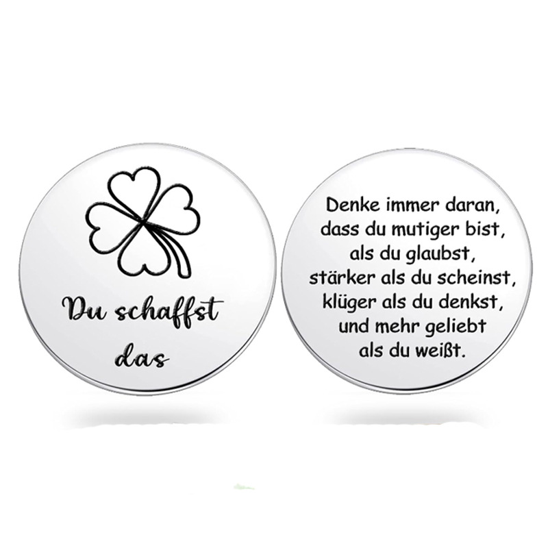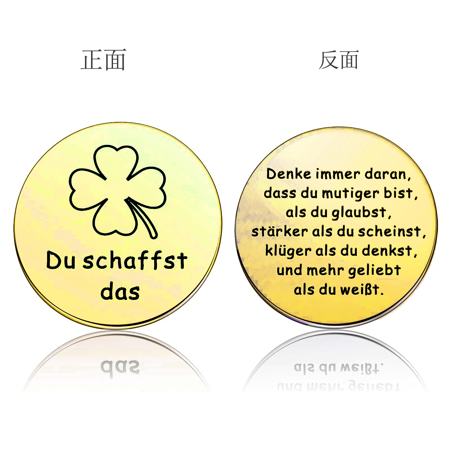 德语DU SCHAFFST DAS四叶草幸运币拥抱币皮革钥匙扣 双面雕刻四色