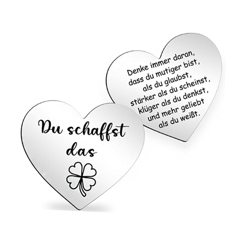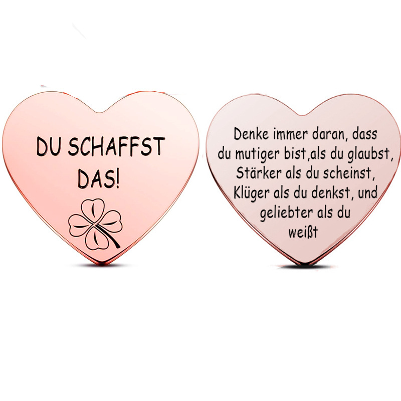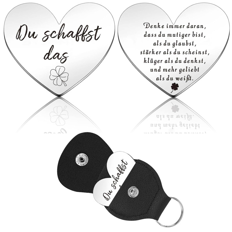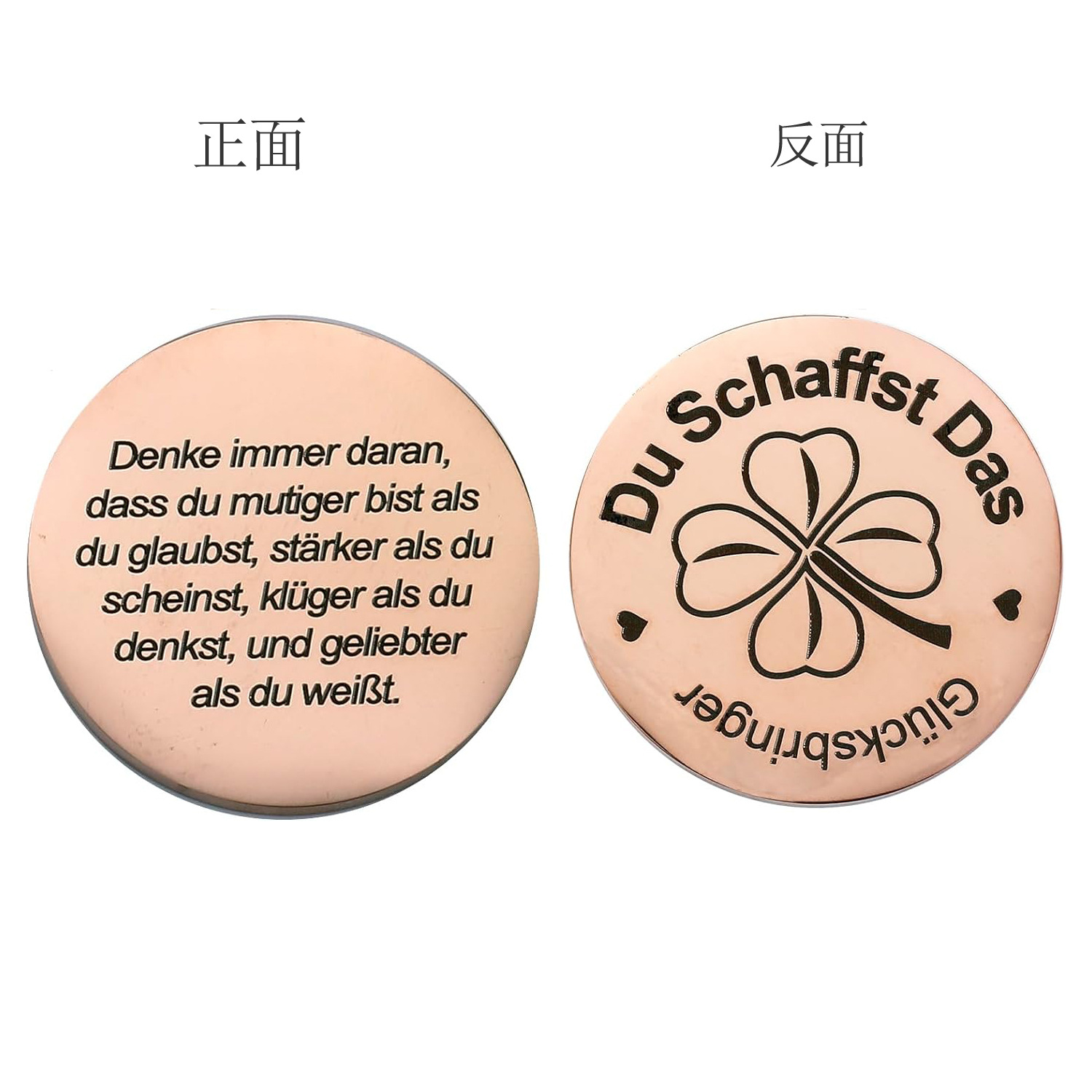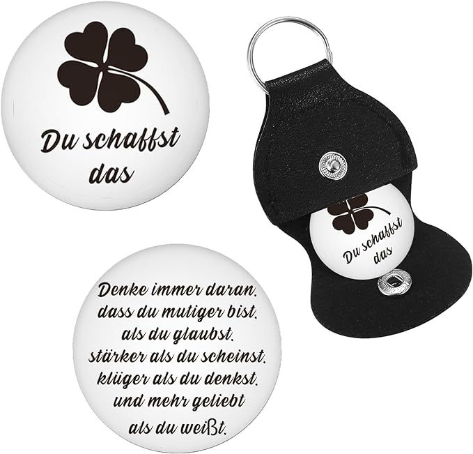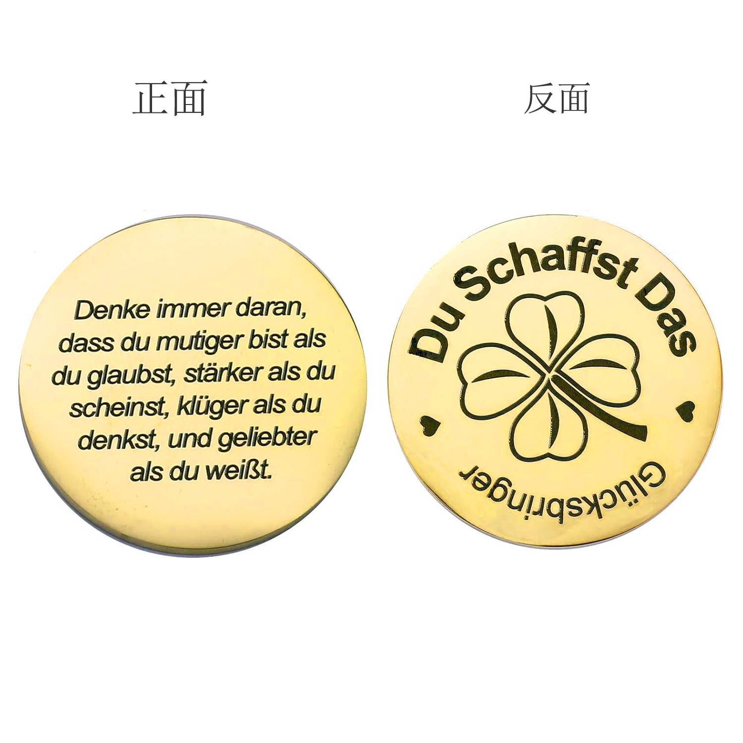 德语DU SCHAFFST DAS四叶草幸运币拥抱币皮革钥匙扣 双面雕刻四色