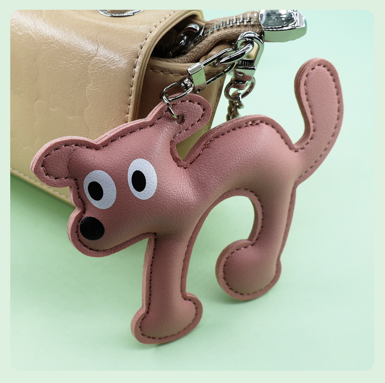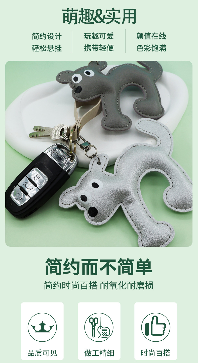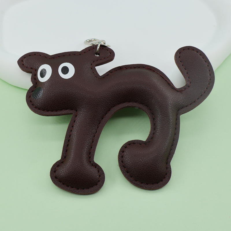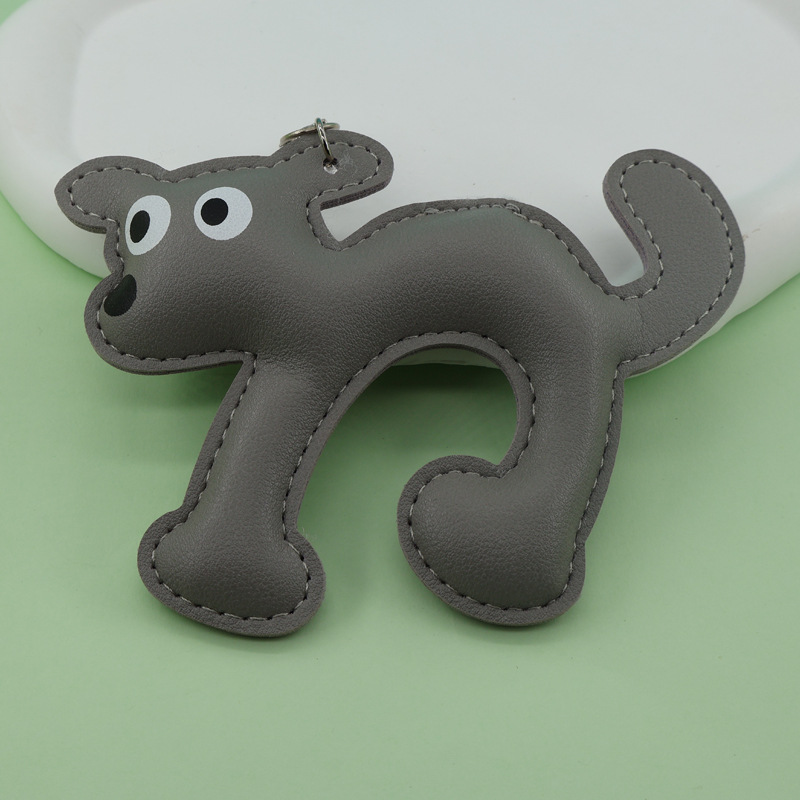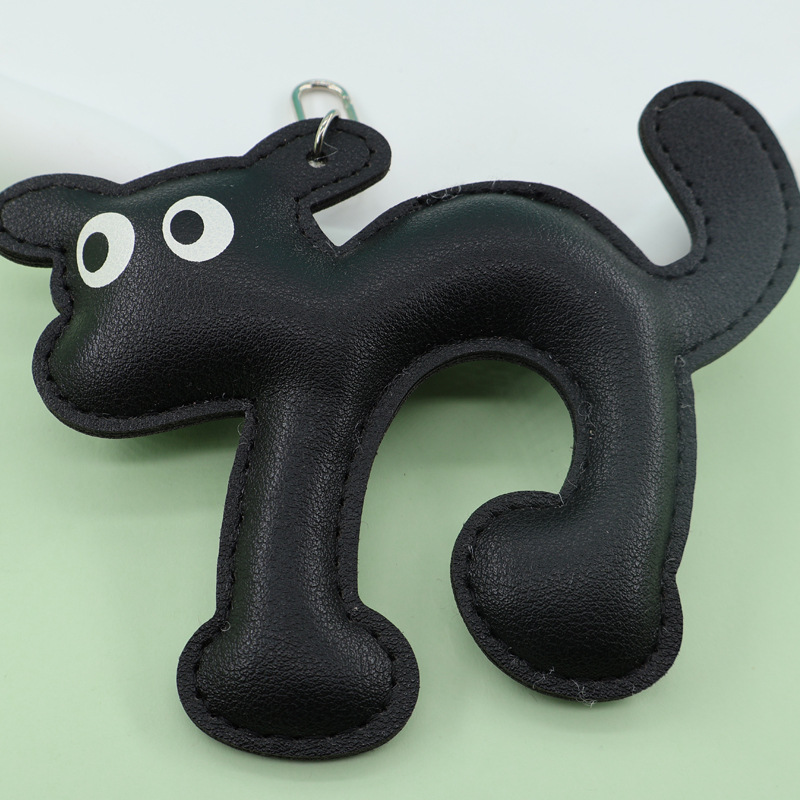 新款皮质大眼弓背猫pu皮革钥匙扣创意箱包立体挂件手机壳挂坠批发