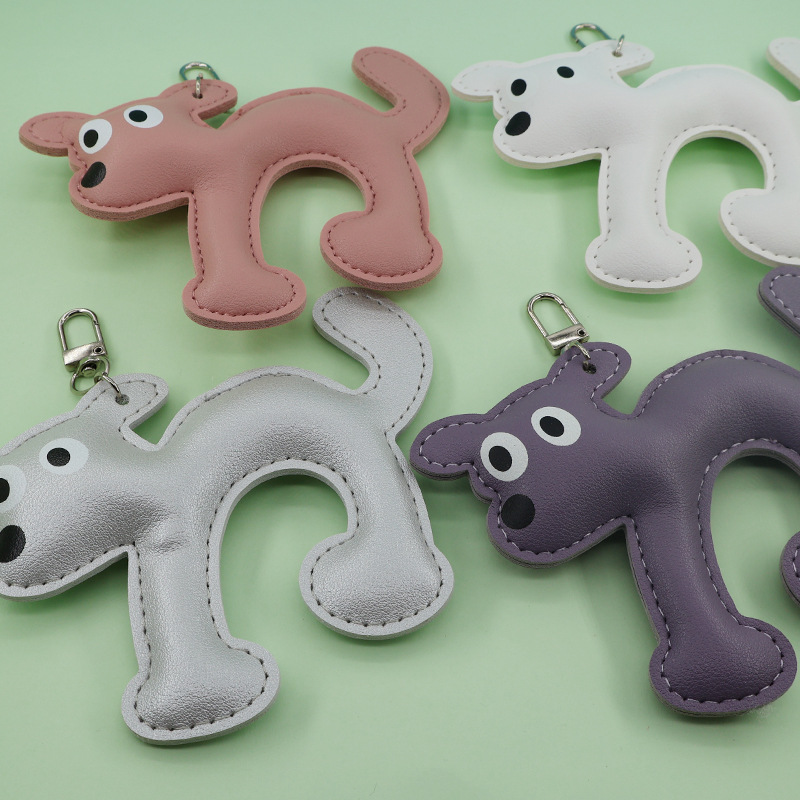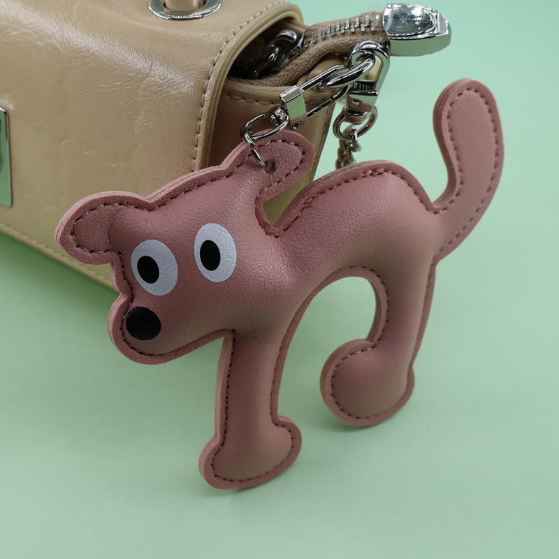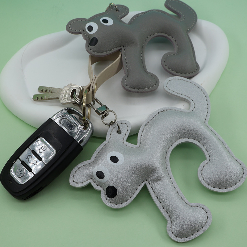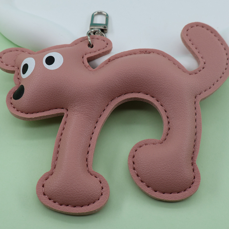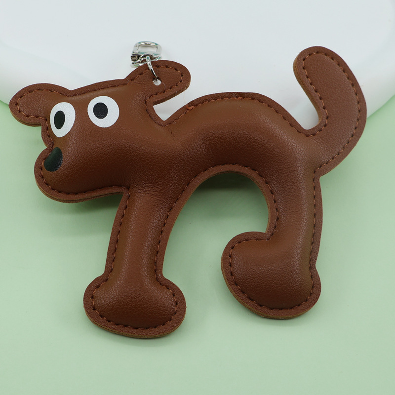 新款皮质大眼弓背猫pu皮革钥匙扣创意箱包立体挂件手机壳挂坠批发
