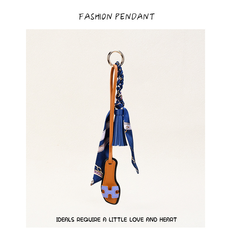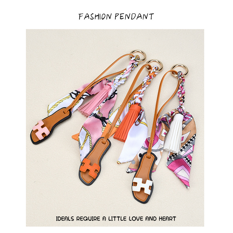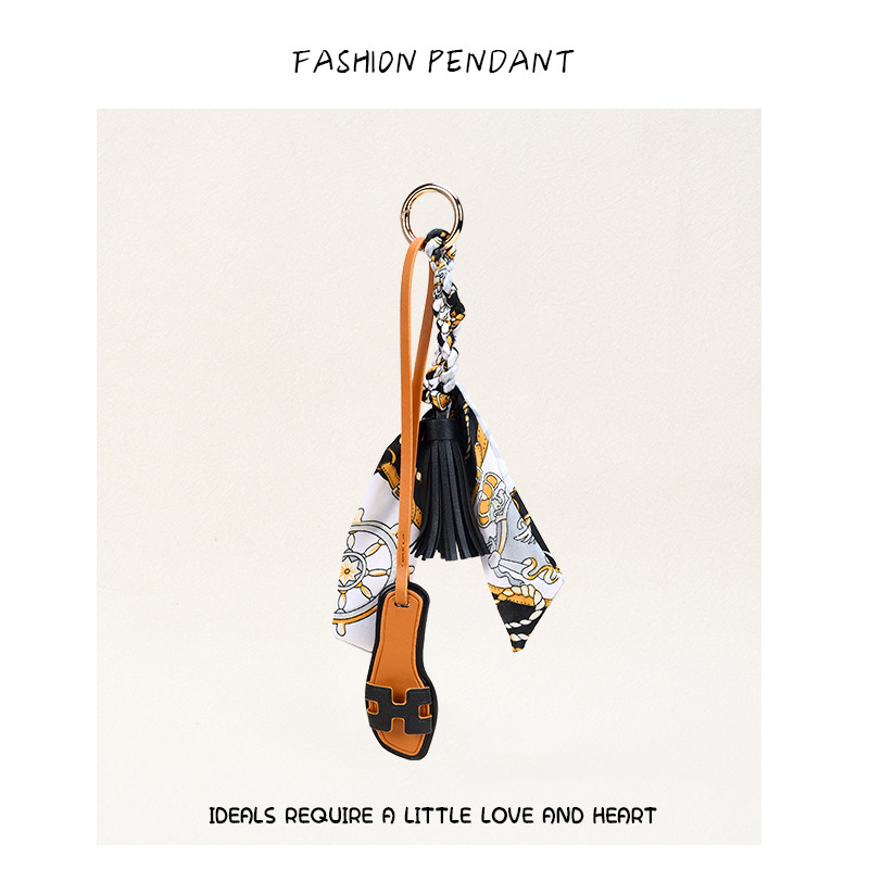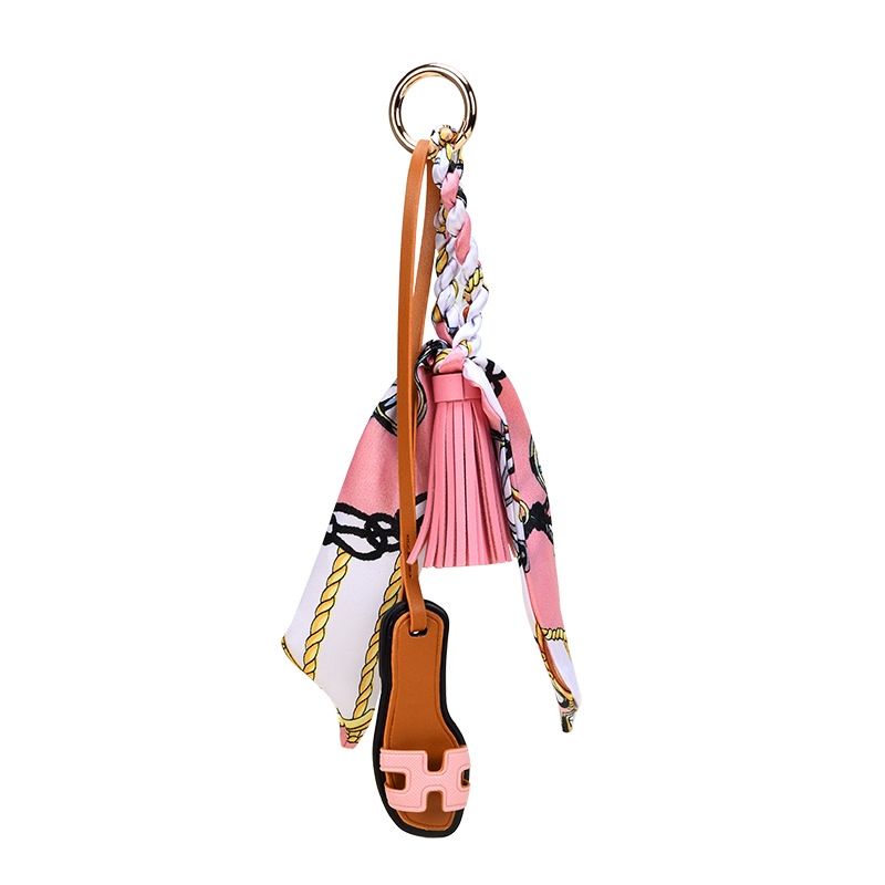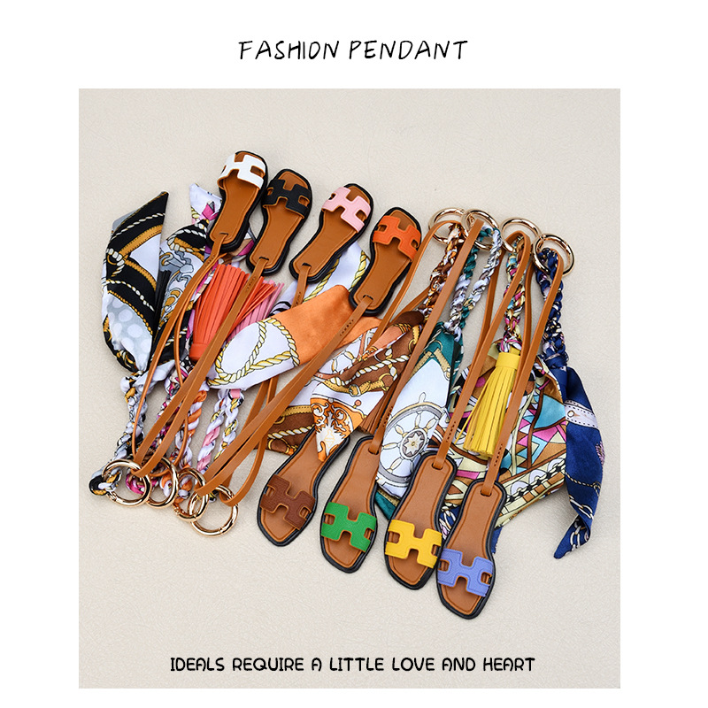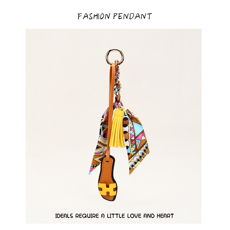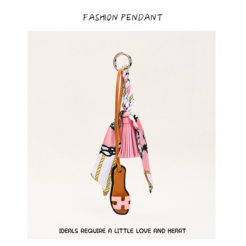 欧美新款流苏皮革小拖鞋挂件时尚包包挂饰韩国丝巾钥匙扣书包挂件