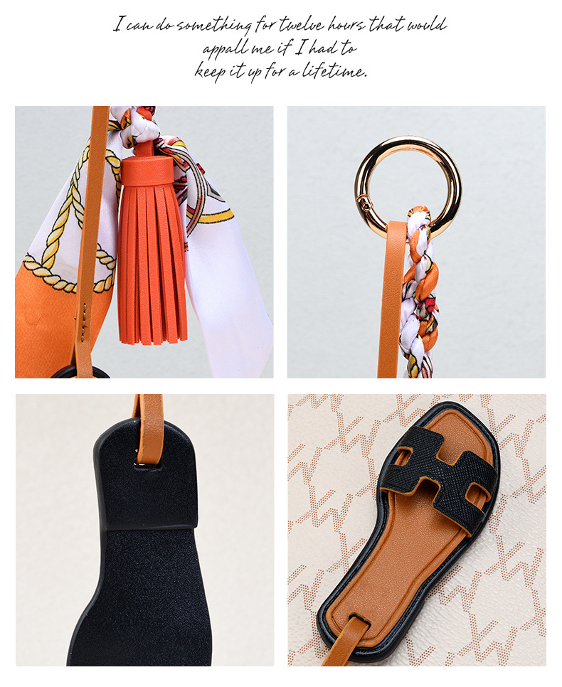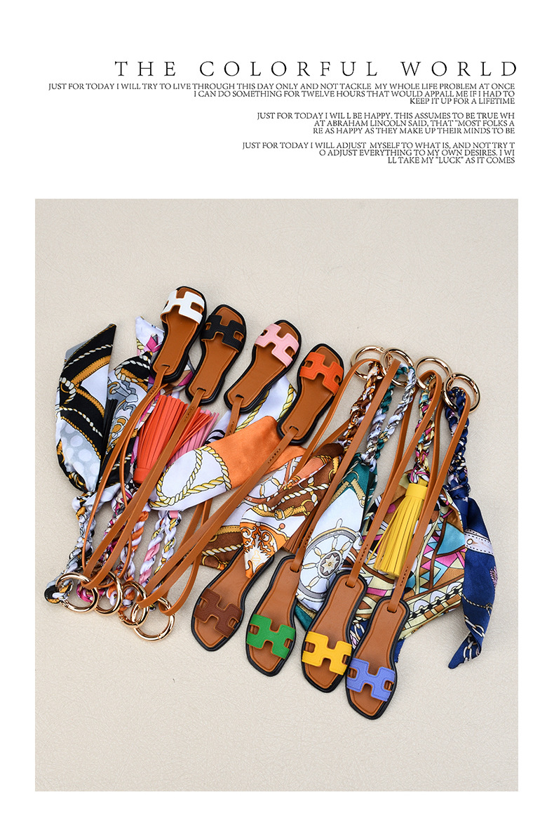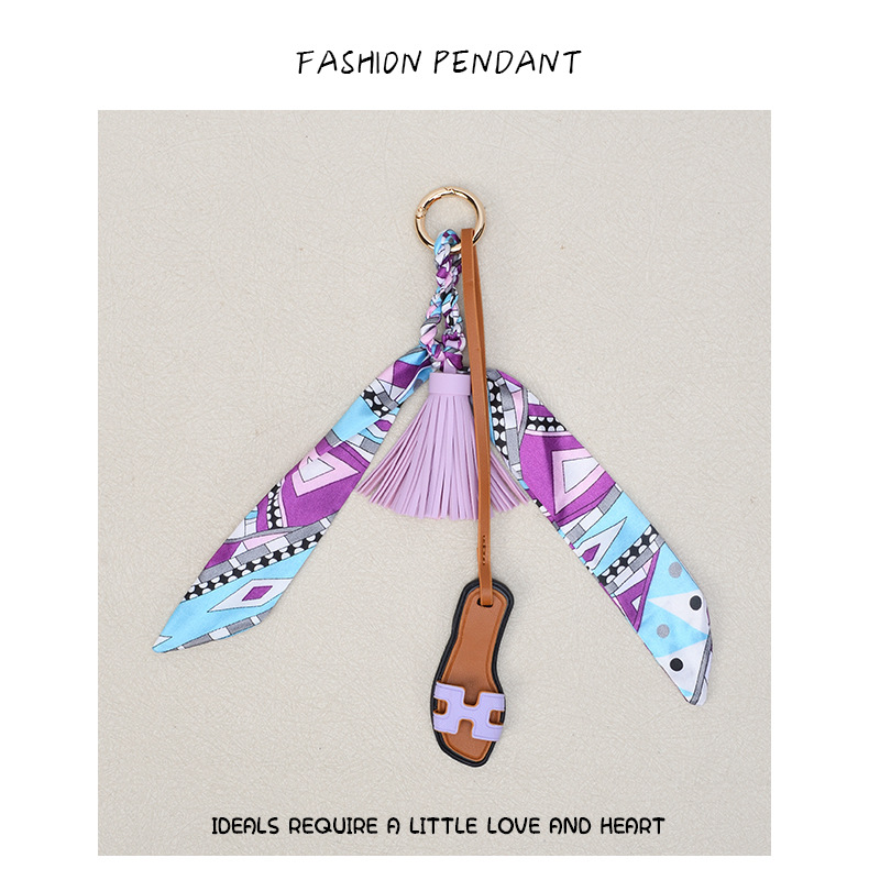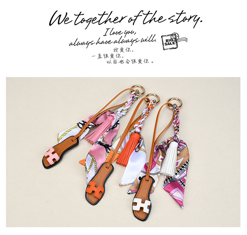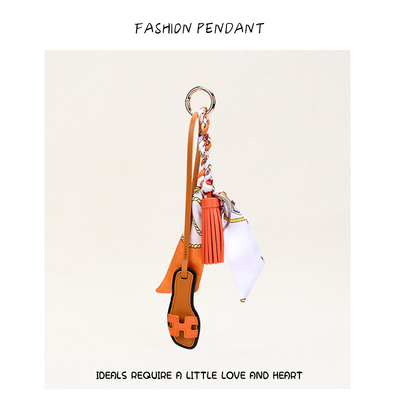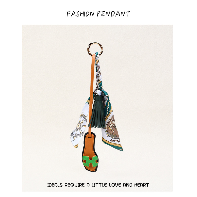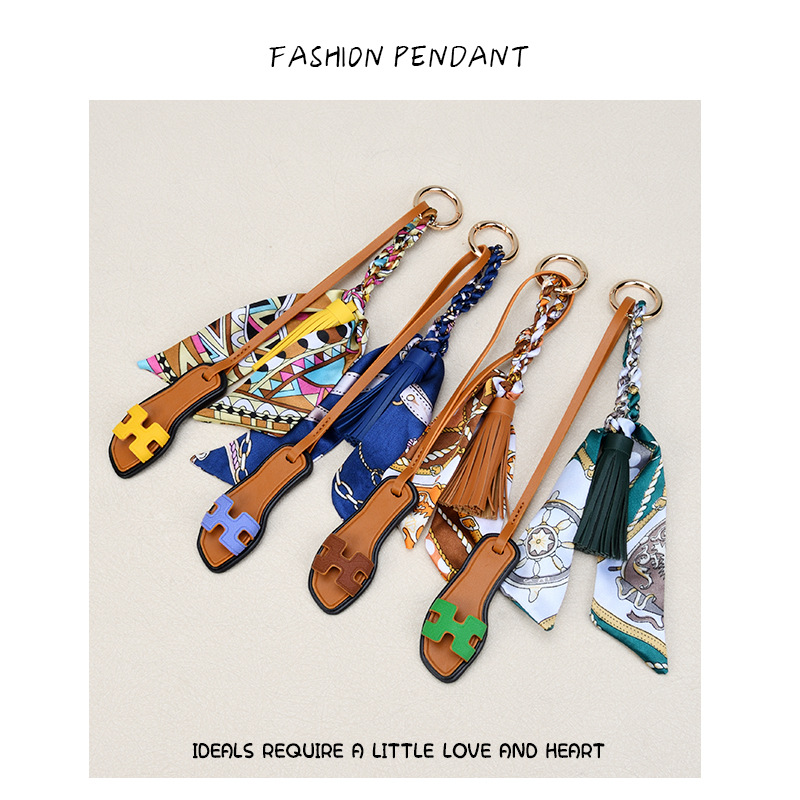 欧美新款流苏皮革小拖鞋挂件时尚包包挂饰韩国丝巾钥匙扣书包挂件