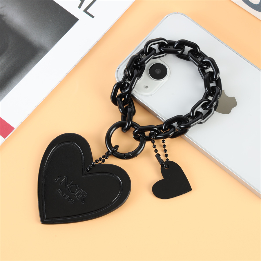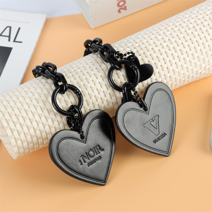 黑色爱心钥匙链皮质汽车钥匙扣链条挂饰小红书女款亚克力ins挂件