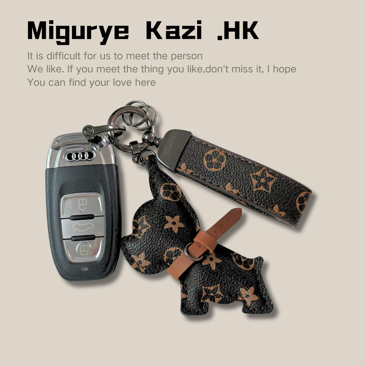 MIGURYE KAZI经典老花小法斗高档汽车钥匙扣挂件精致可爱挂饰礼品