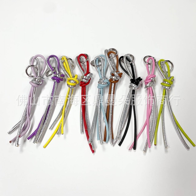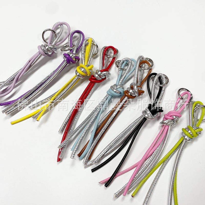 新款ins亮闪拼色银色糖果色蝴蝶结流苏钥匙扣挂件包挂DIY皮革挂饰