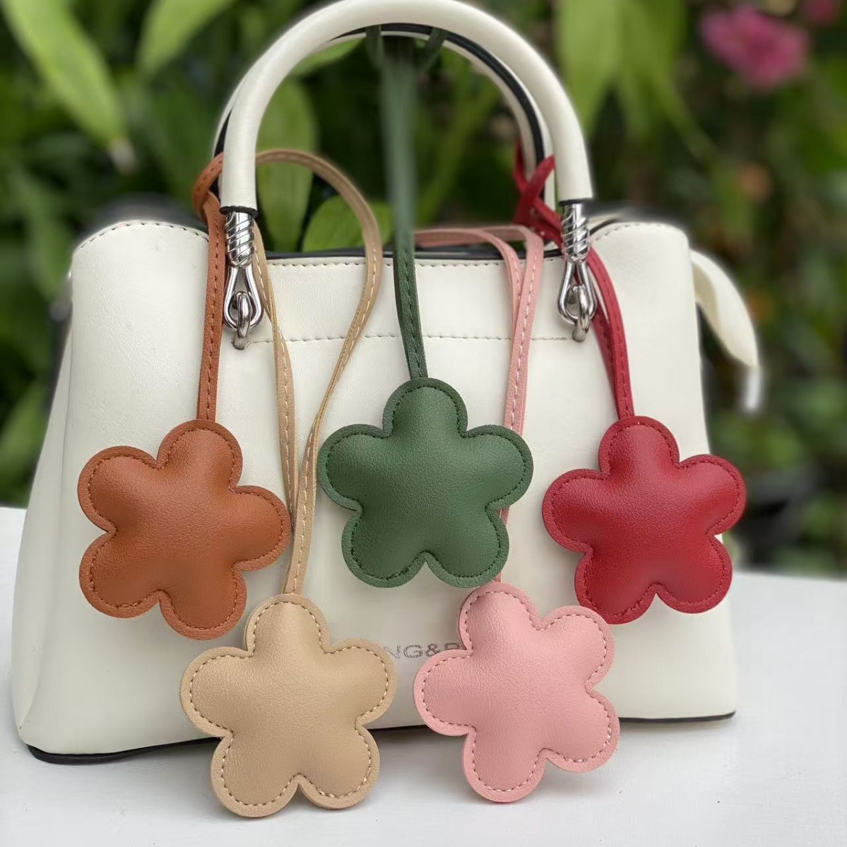 欧美新款花朵包包挂件可爱小花皮质饰品车载钥匙扣配件皮革挂件
