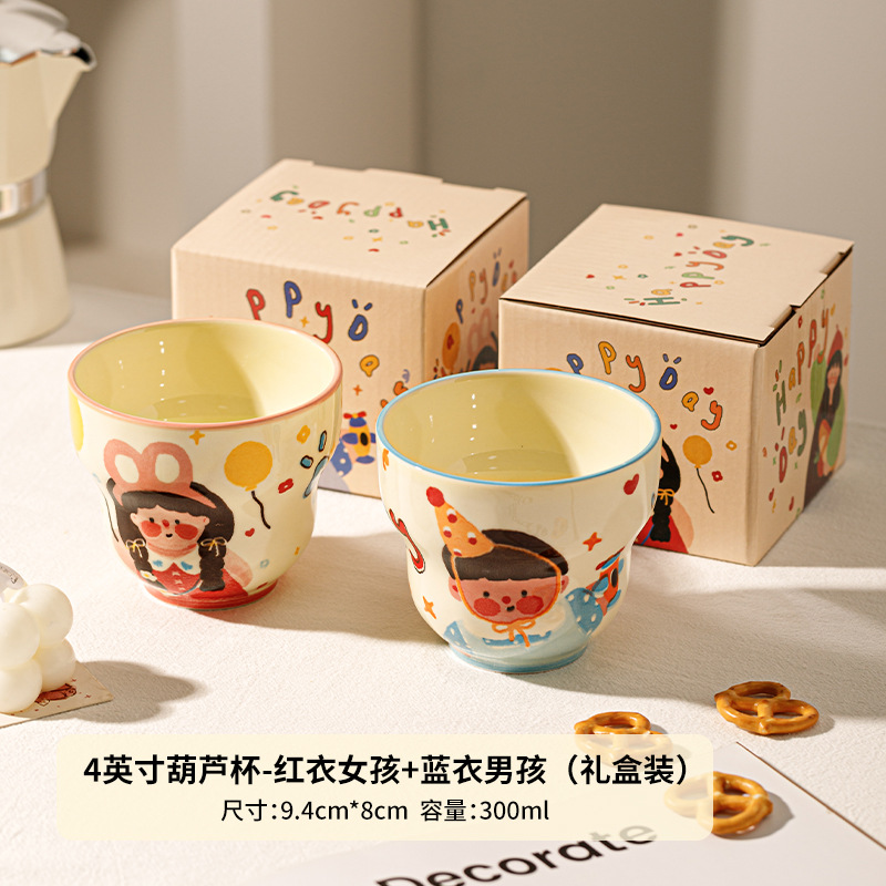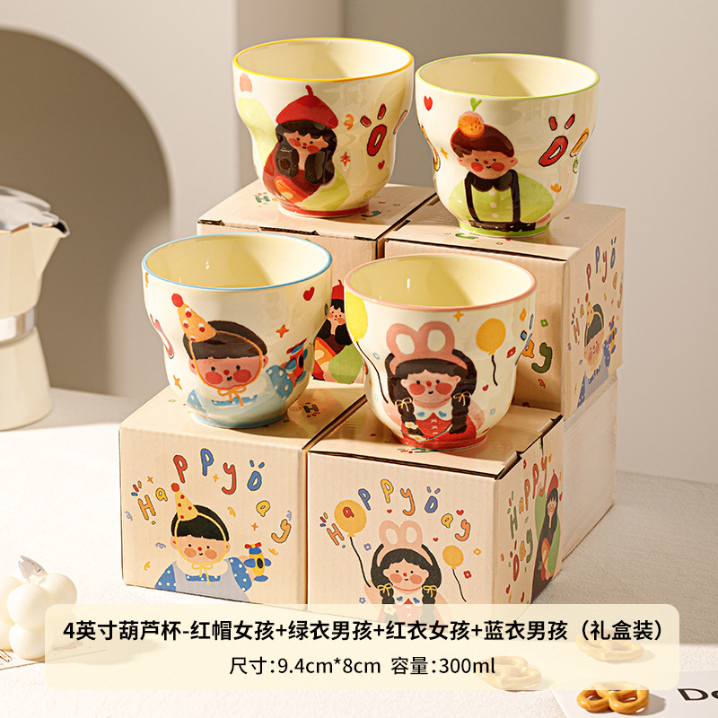 一家四口家用陶瓷杯可爱儿童早餐杯餐具卡通高颜值亲子水杯马克杯