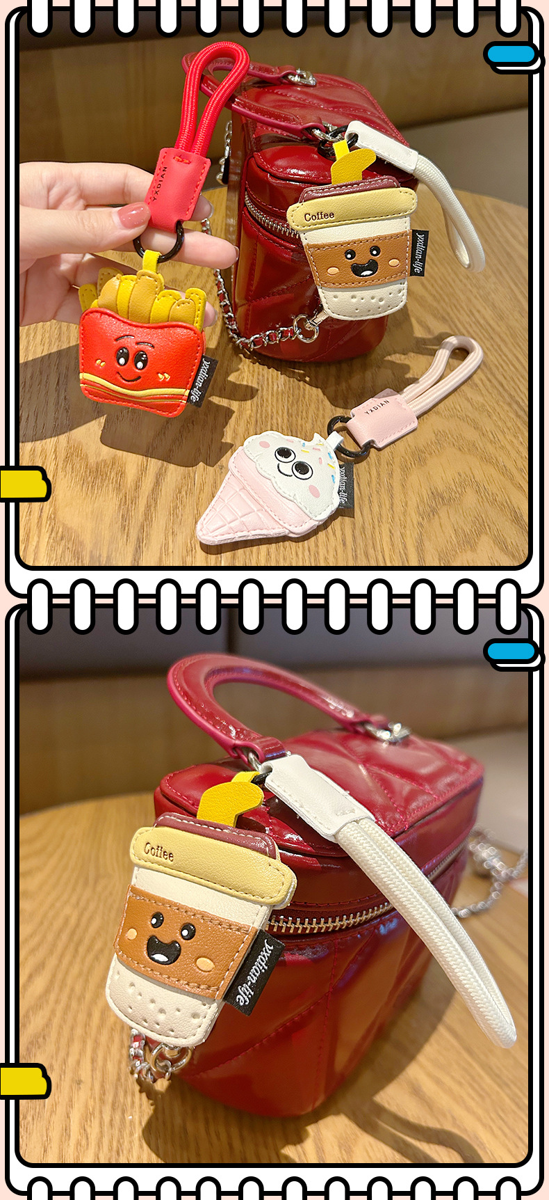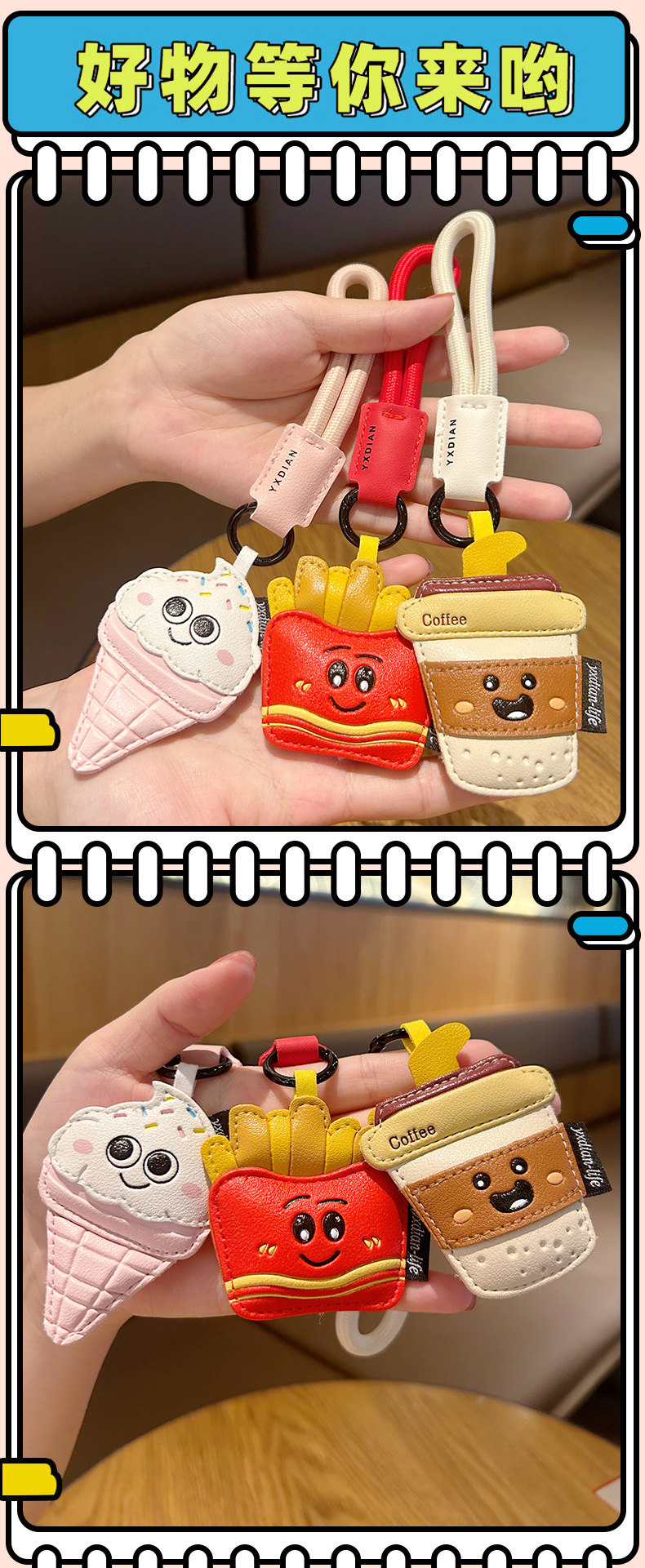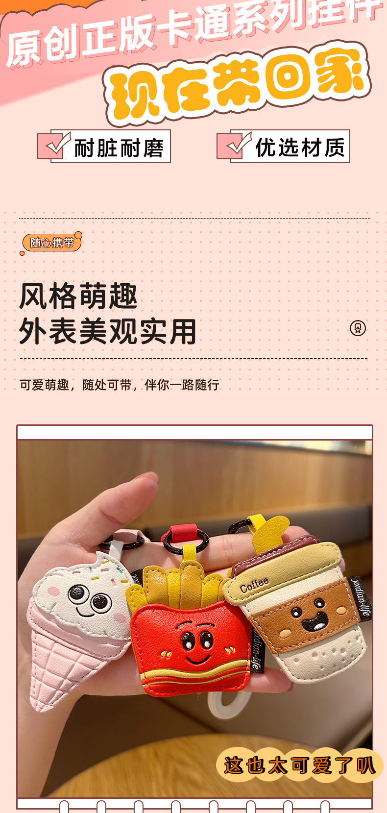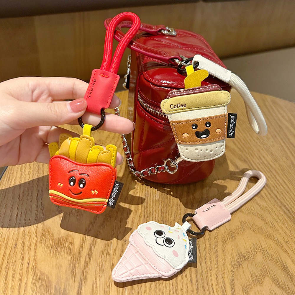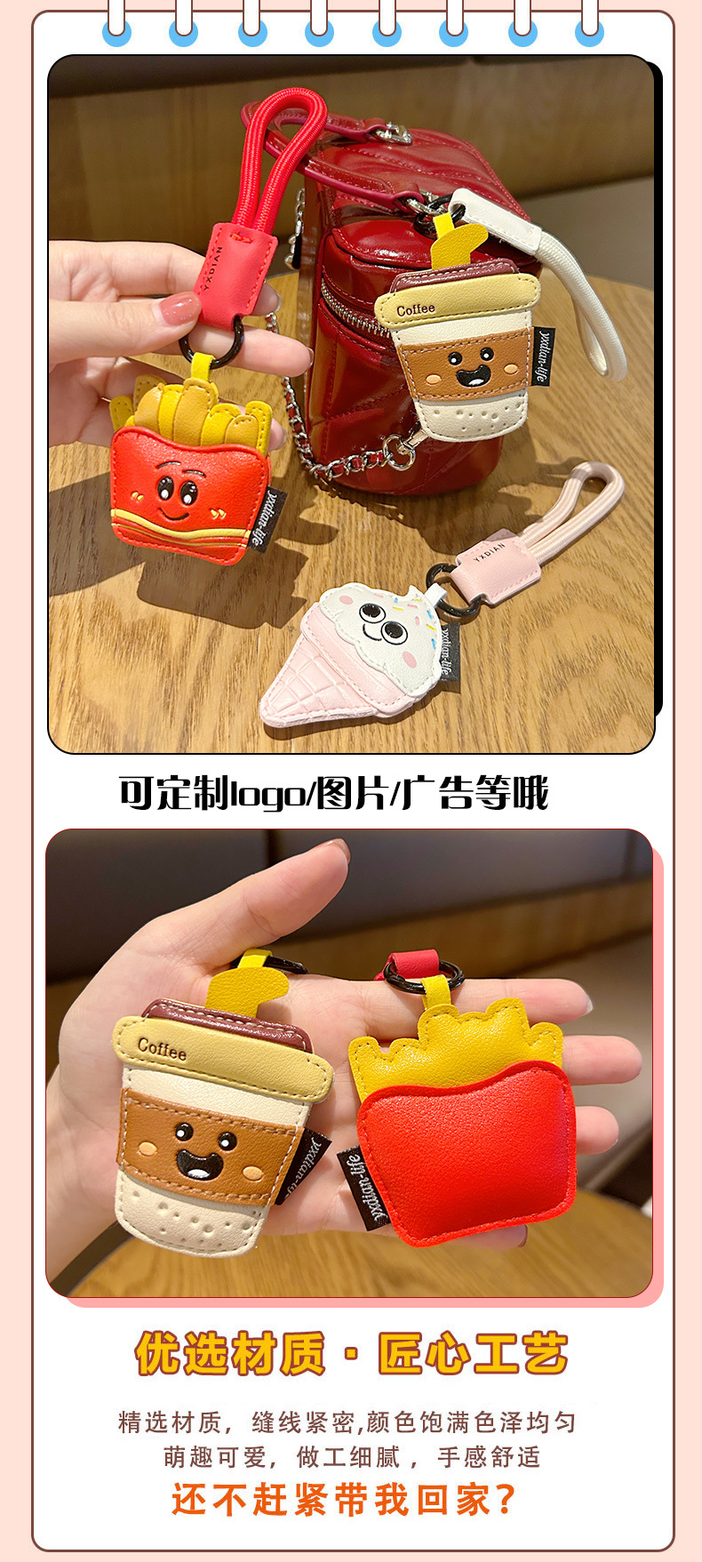 创意卡通皮革零食钥匙扣可爱薯条咖啡冰淇淋情侣包包挂件小礼品