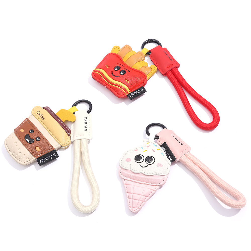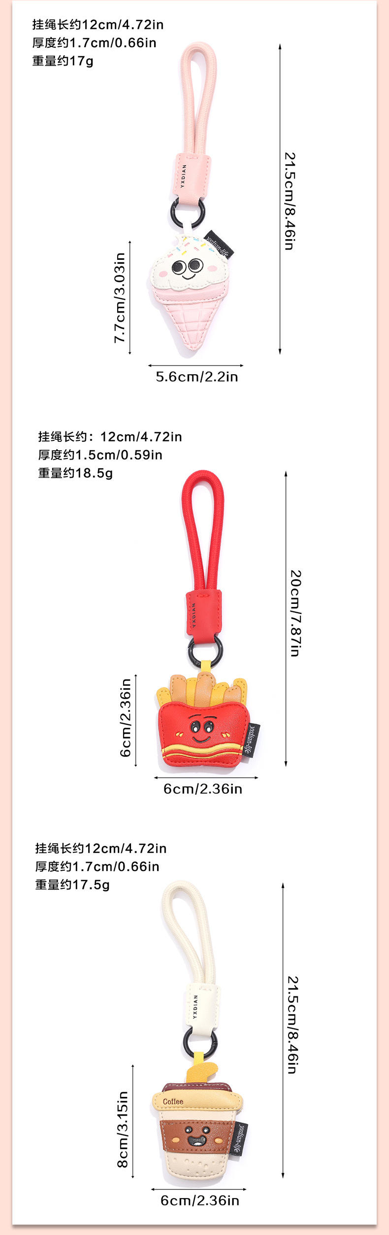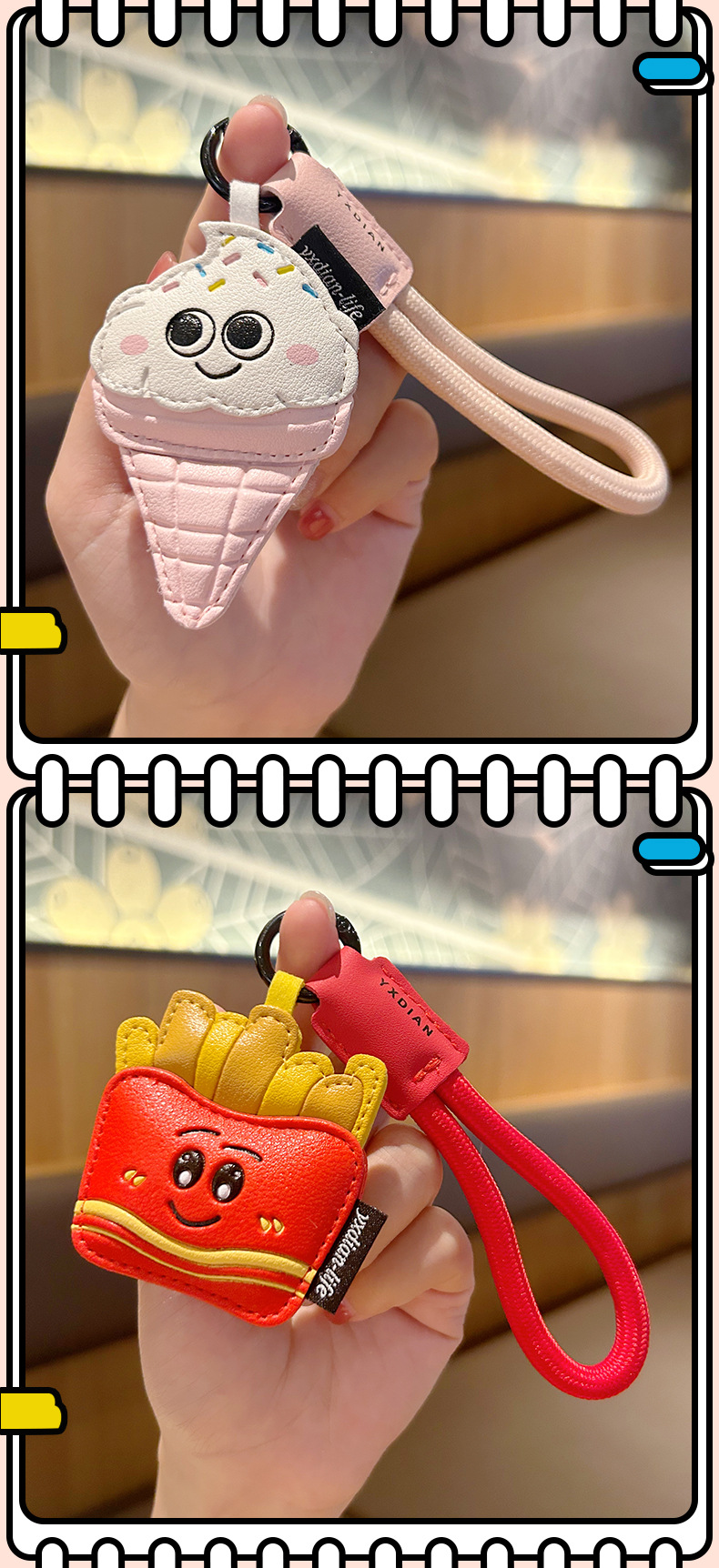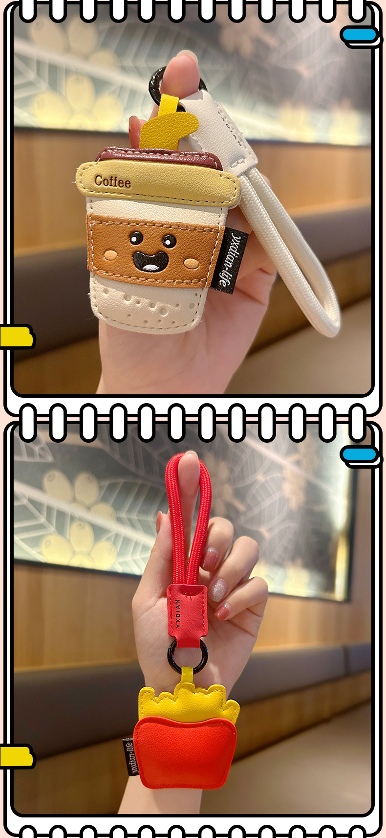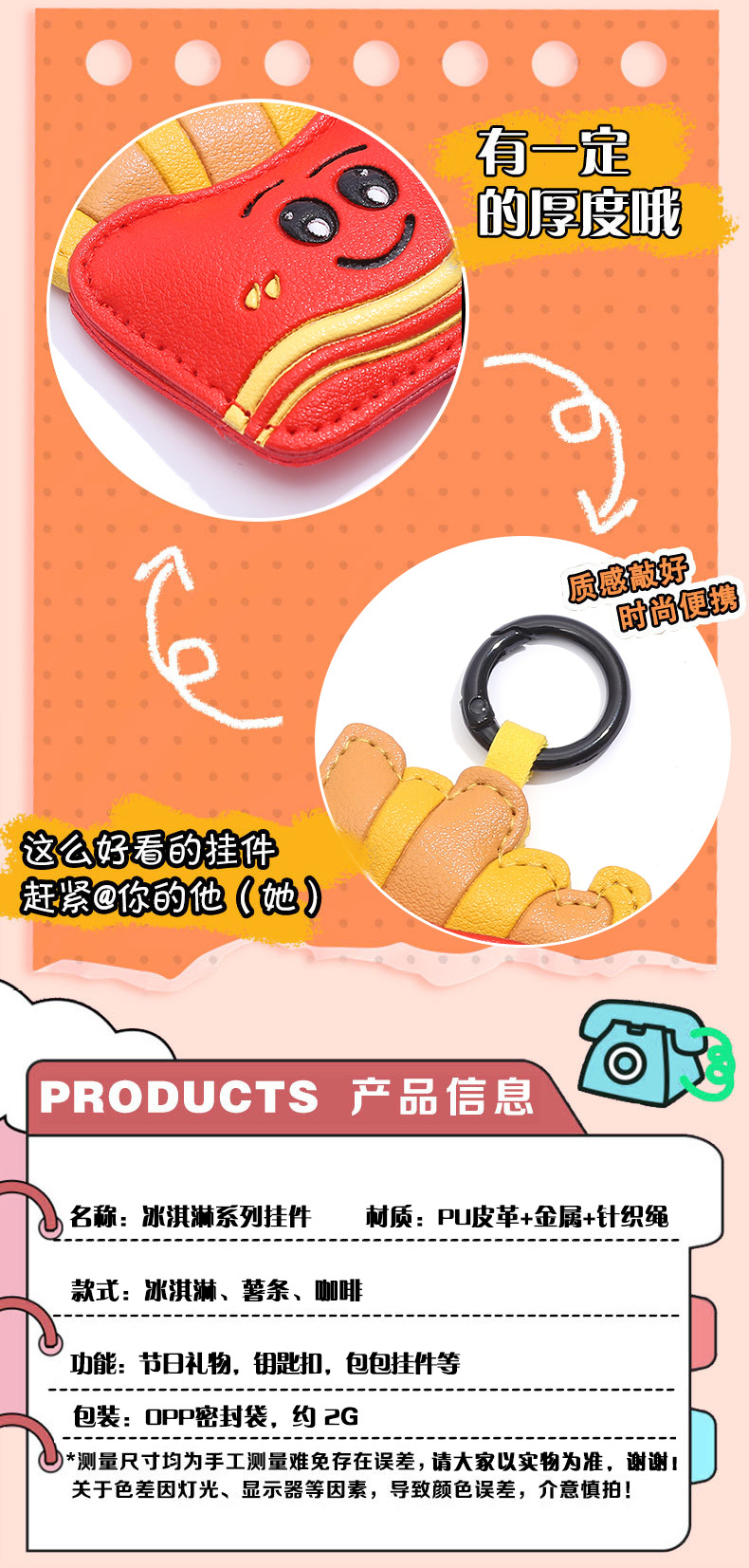 创意卡通皮革零食钥匙扣可爱薯条咖啡冰淇淋情侣包包挂件小礼品