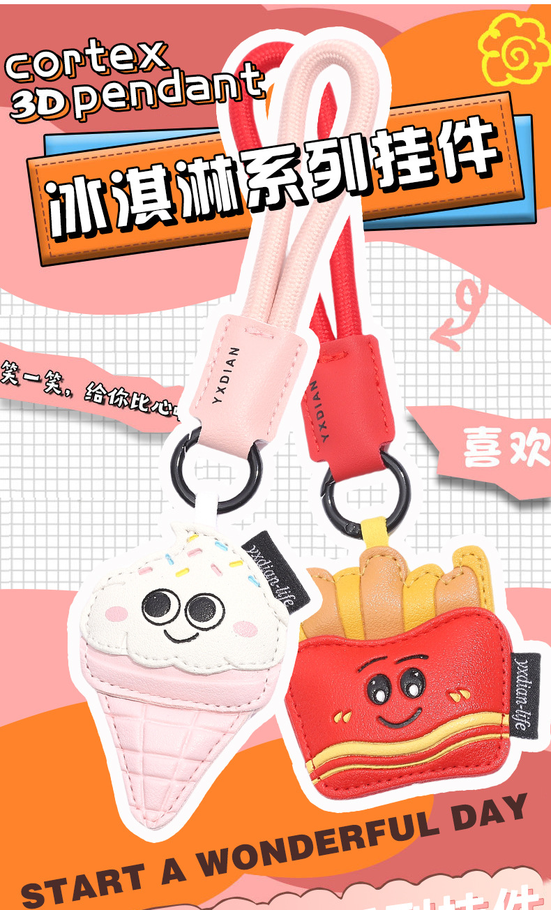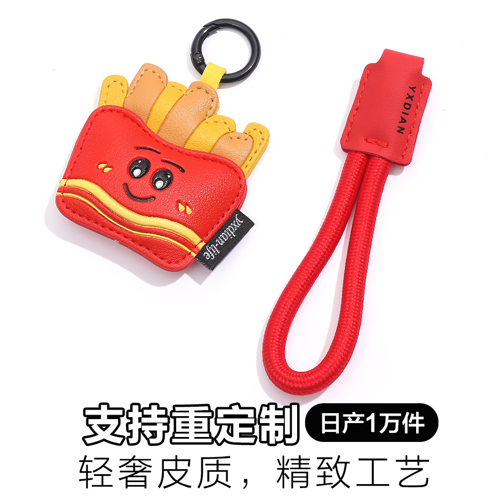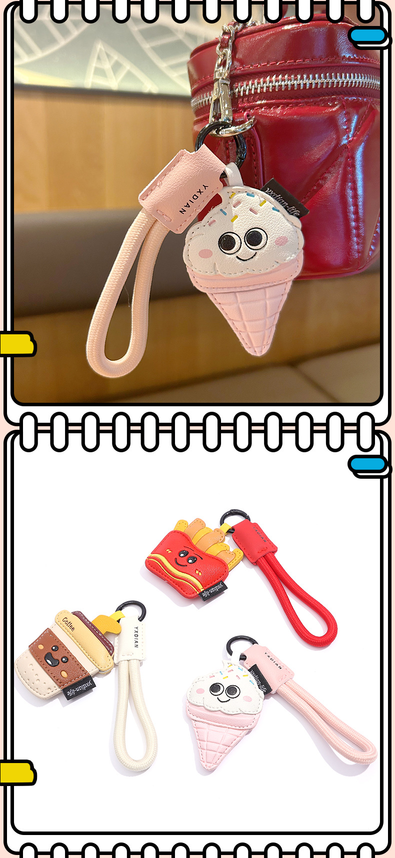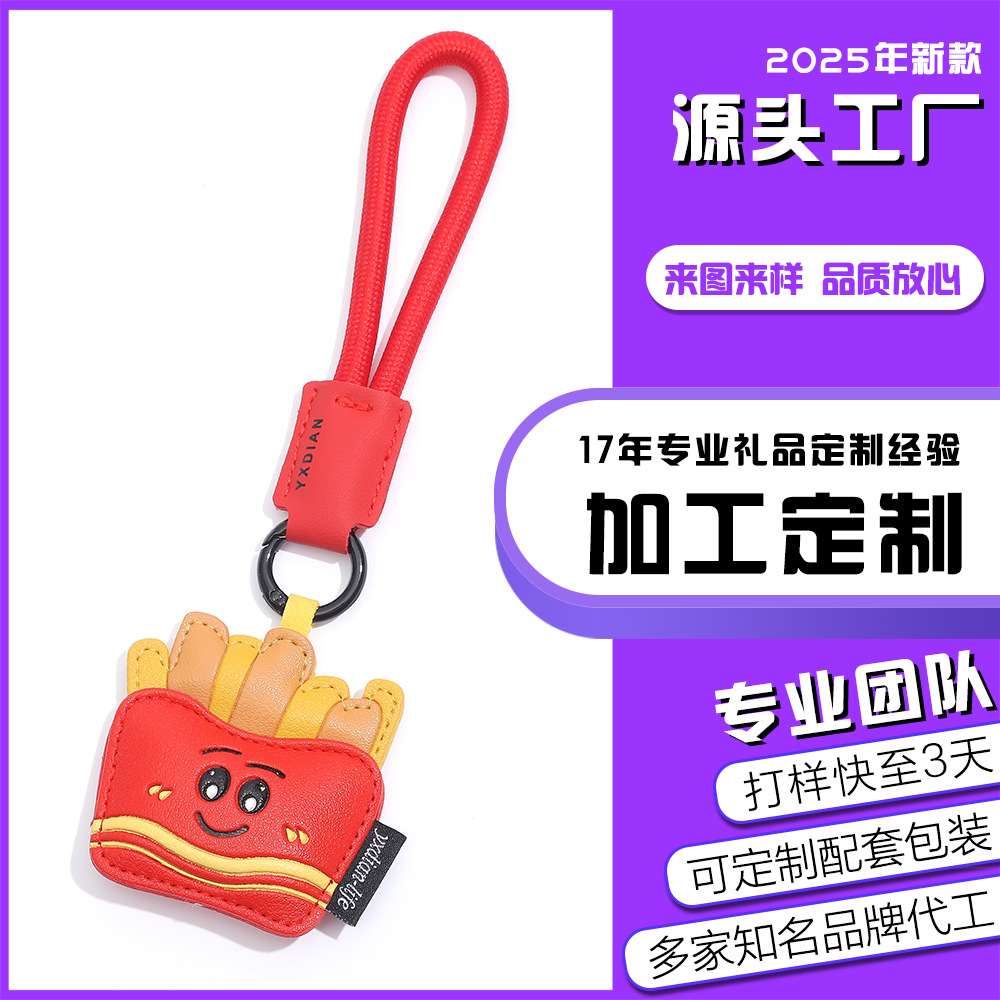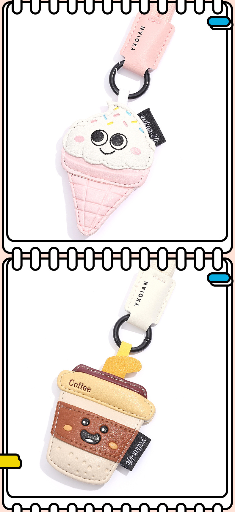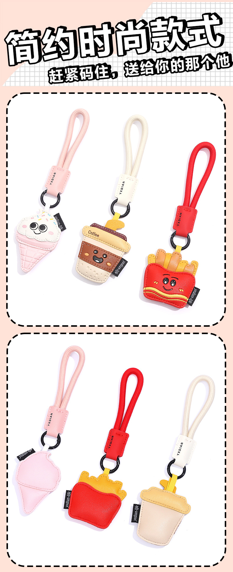 创意卡通皮革零食钥匙扣可爱薯条咖啡冰淇淋情侣包包挂件小礼品