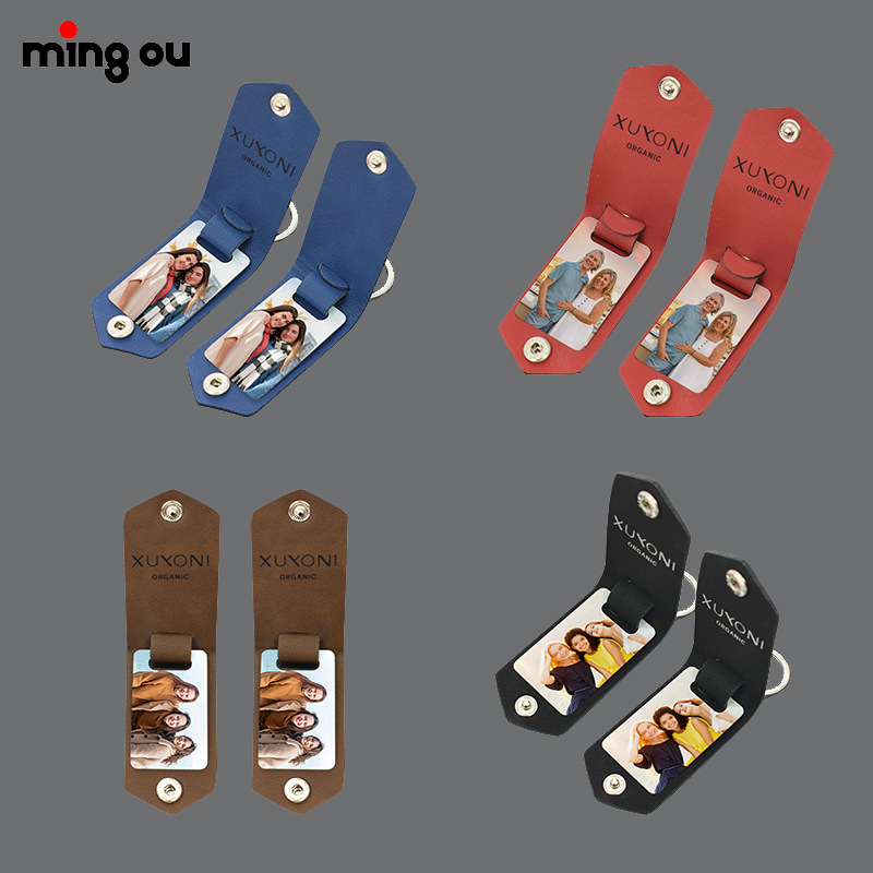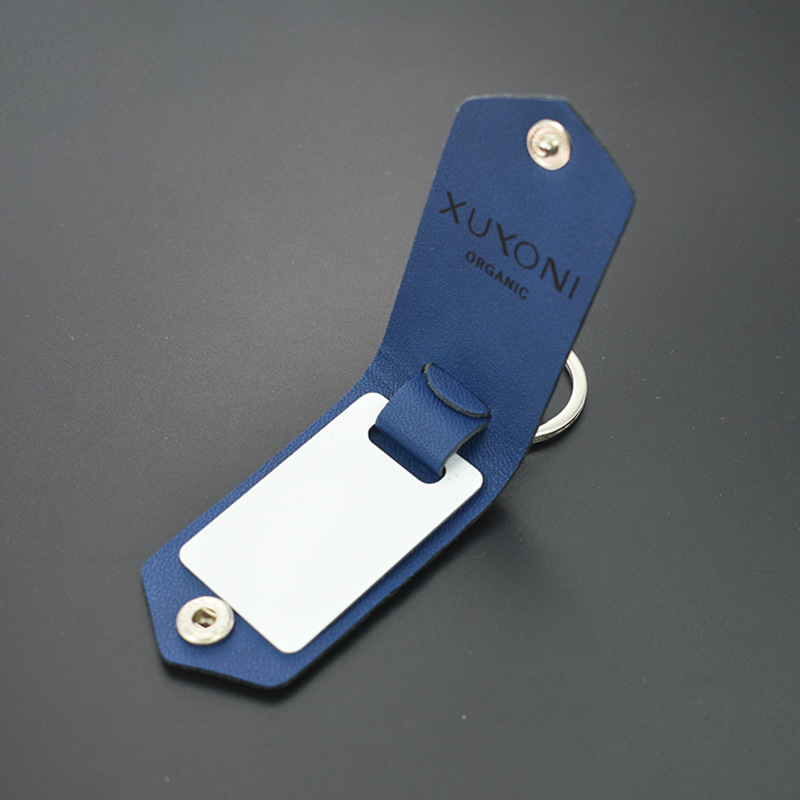 跨境爆款铝片钥匙扣铝片可热转印,双层皮革钥匙扣皮革可镭射