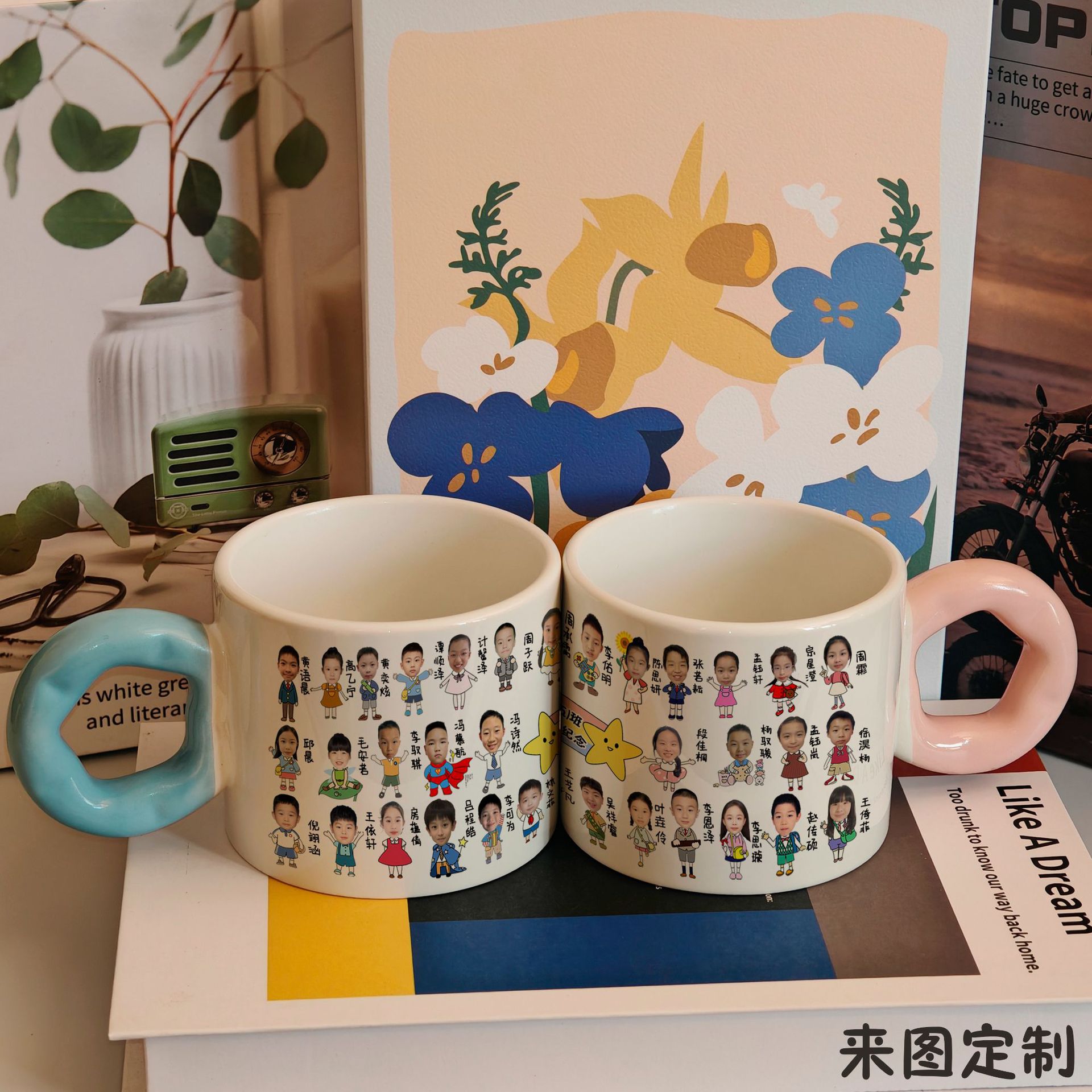 毕业礼物高颜值可爱花把儿童马克杯子家用个性创意印制照片伴手礼