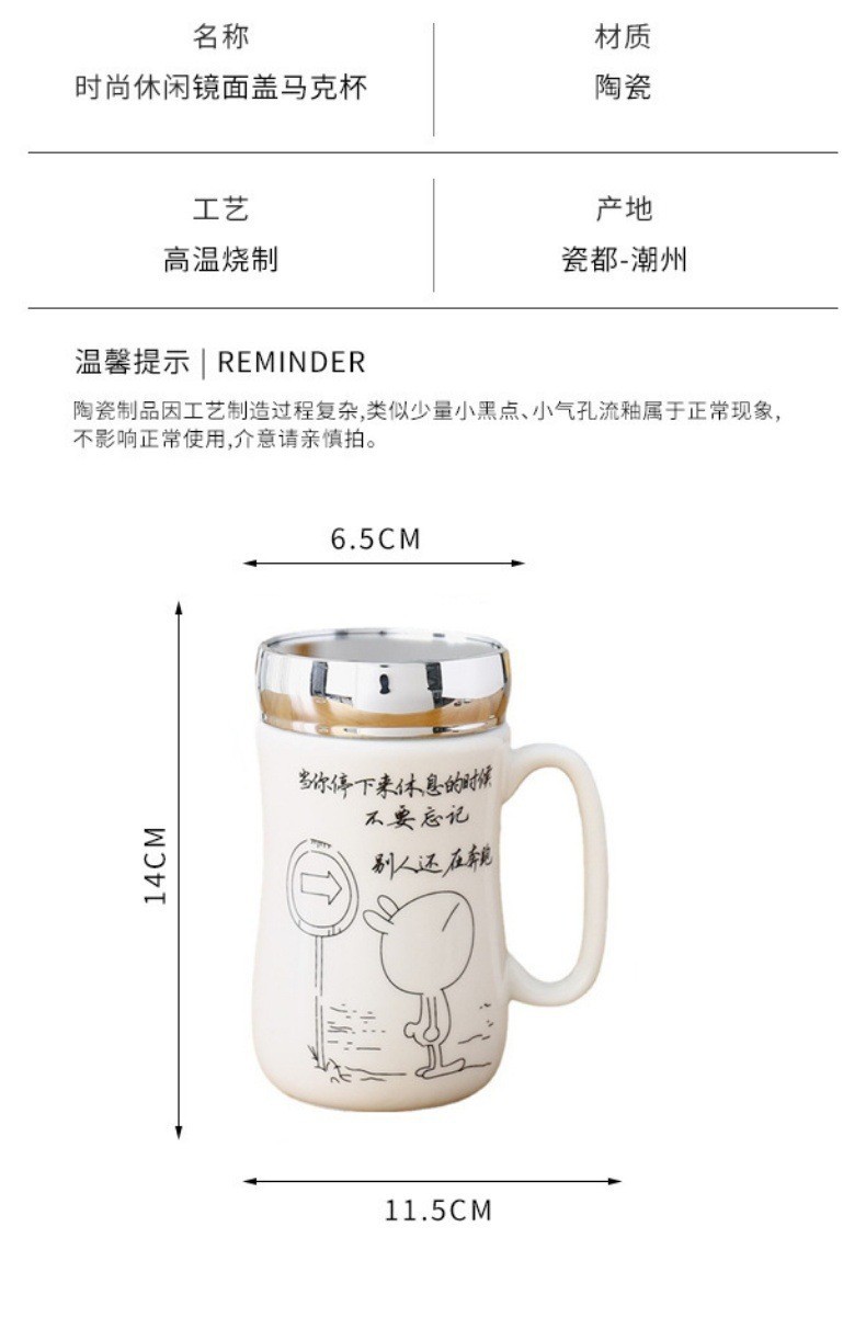 陶瓷杯带盖镜面杯创意家用水杯卡通马克杯广告礼品杯子定制批发