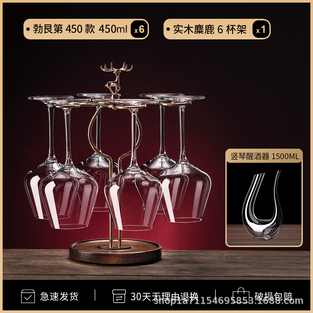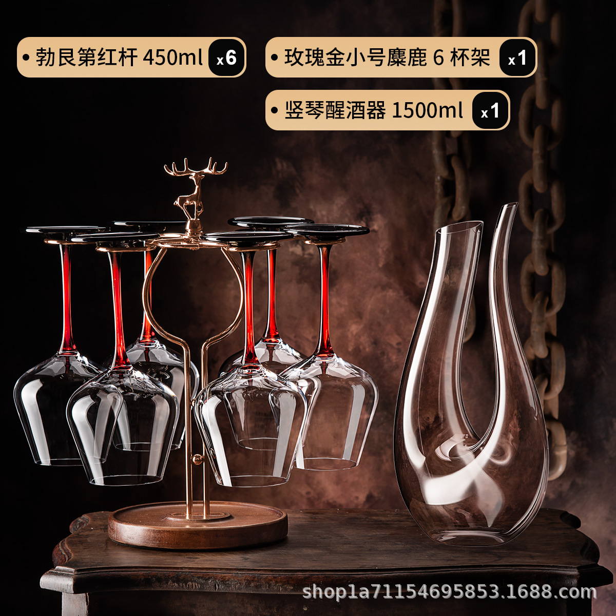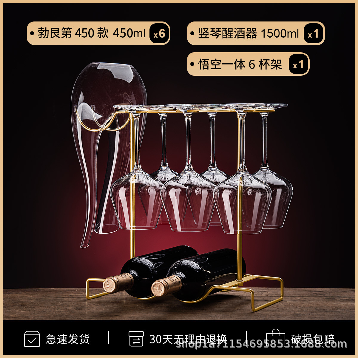 批发一体成型家用玻璃红酒杯子高级感醒酒器酒具套装红领结酒杯