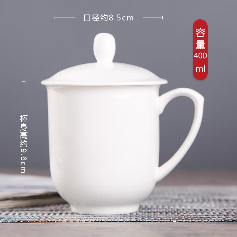 景德镇陶瓷办公杯茶杯水杯办公家用茶杯带盖商务会议杯LOGO可定制