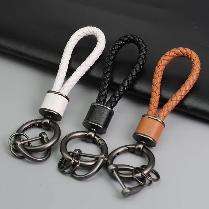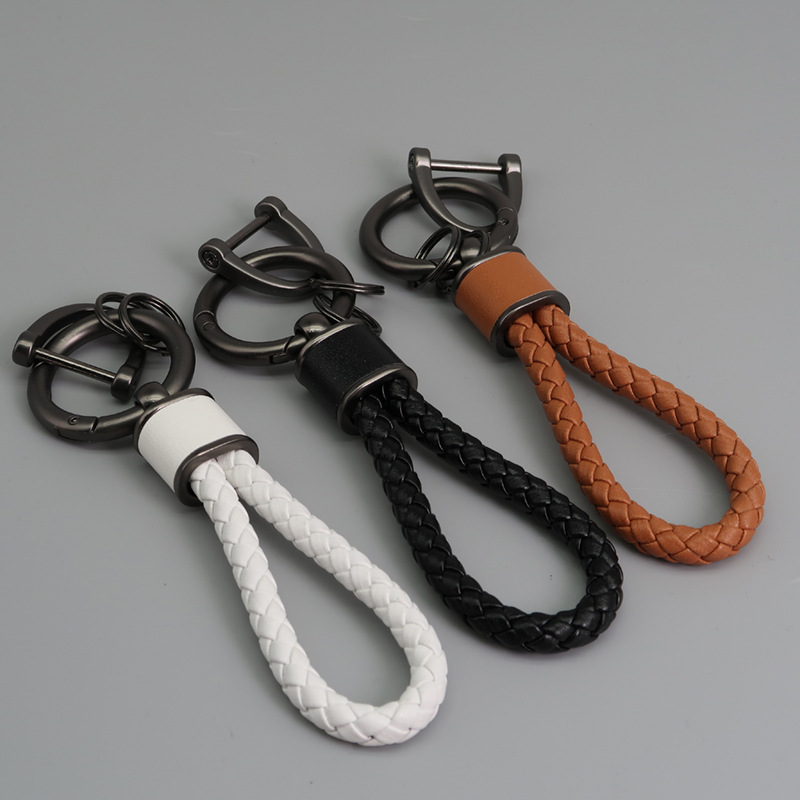 跨境爆款彩色皮革钥匙链挂绳 时尚手工腰挂创意编织绳汽车钥匙扣