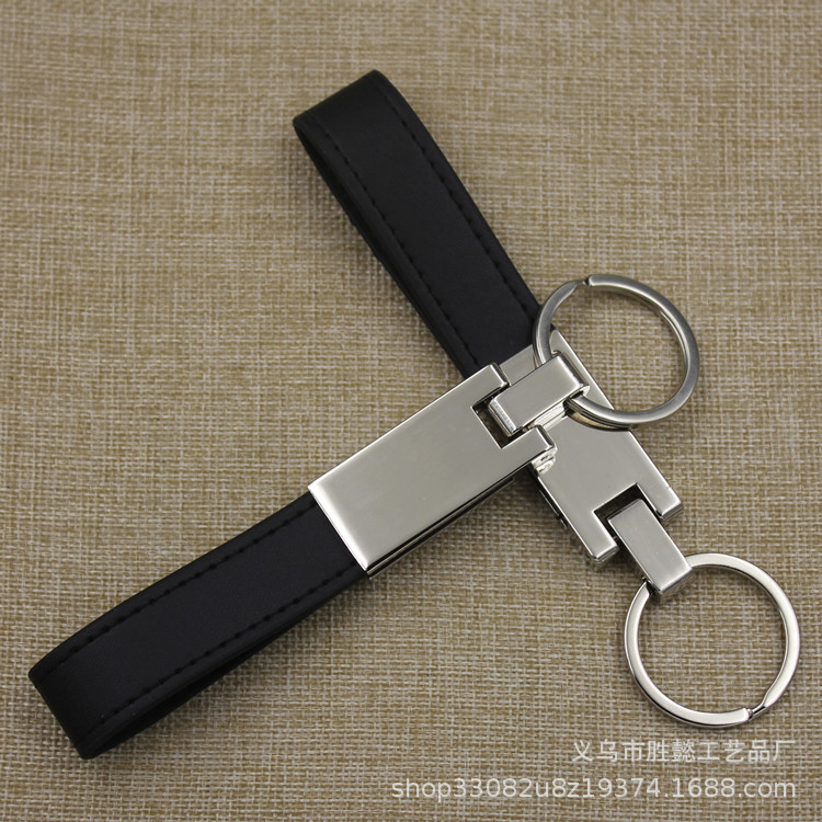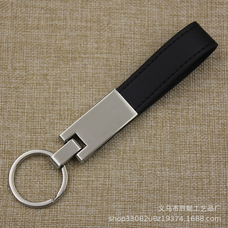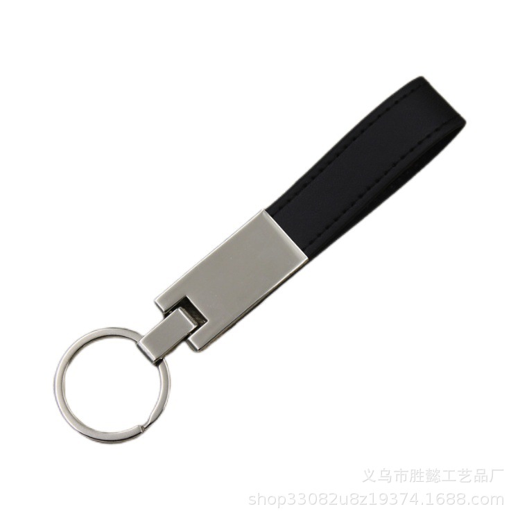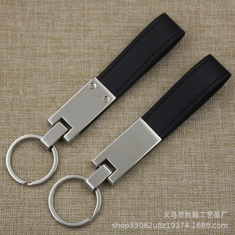 厂家批发金属汽车真皮钥匙链可印logo皮革钥匙扣pu皮钥匙圈挂件