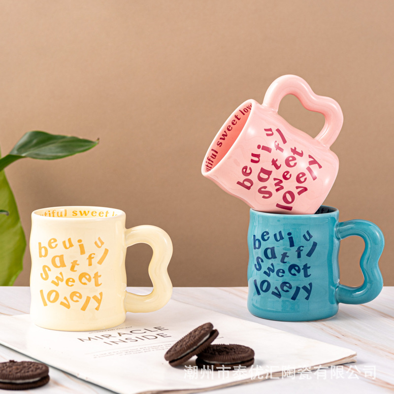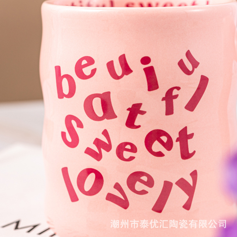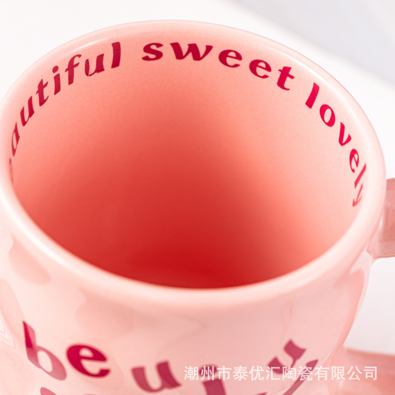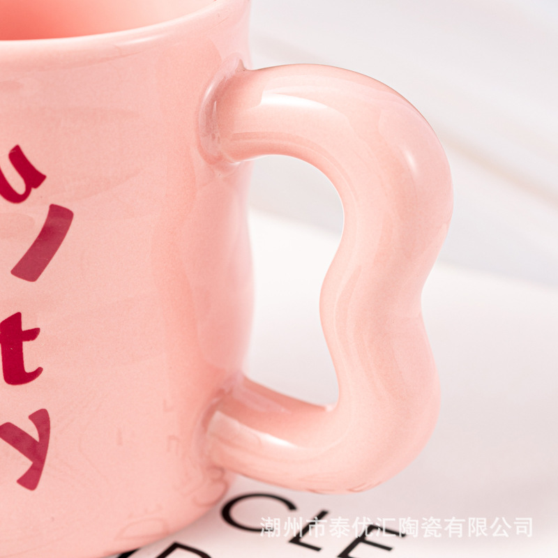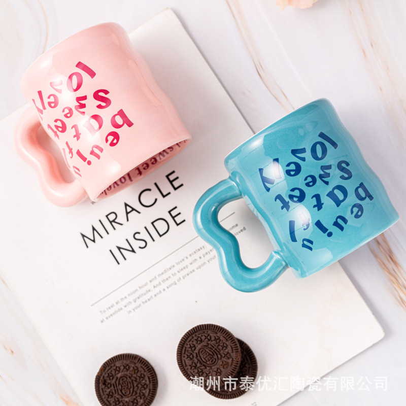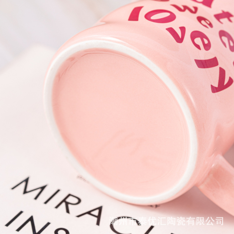卡通英文陶瓷杯伴手礼马克杯男女学生情侣水杯子咖啡杯情人节礼物