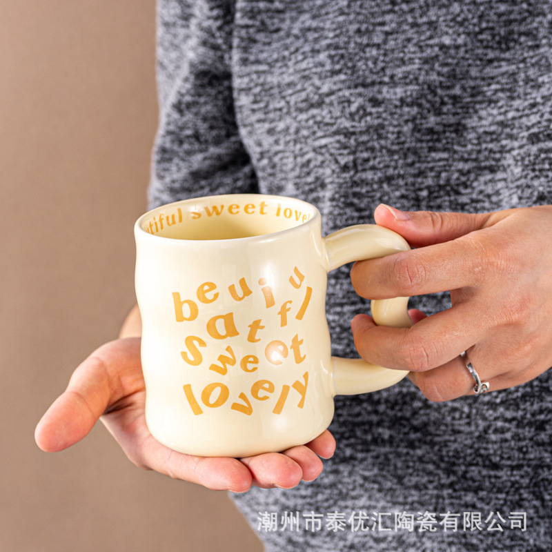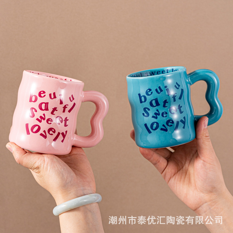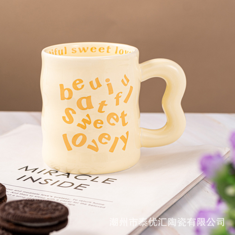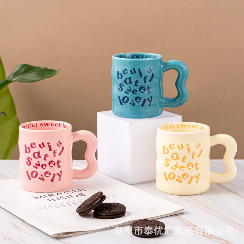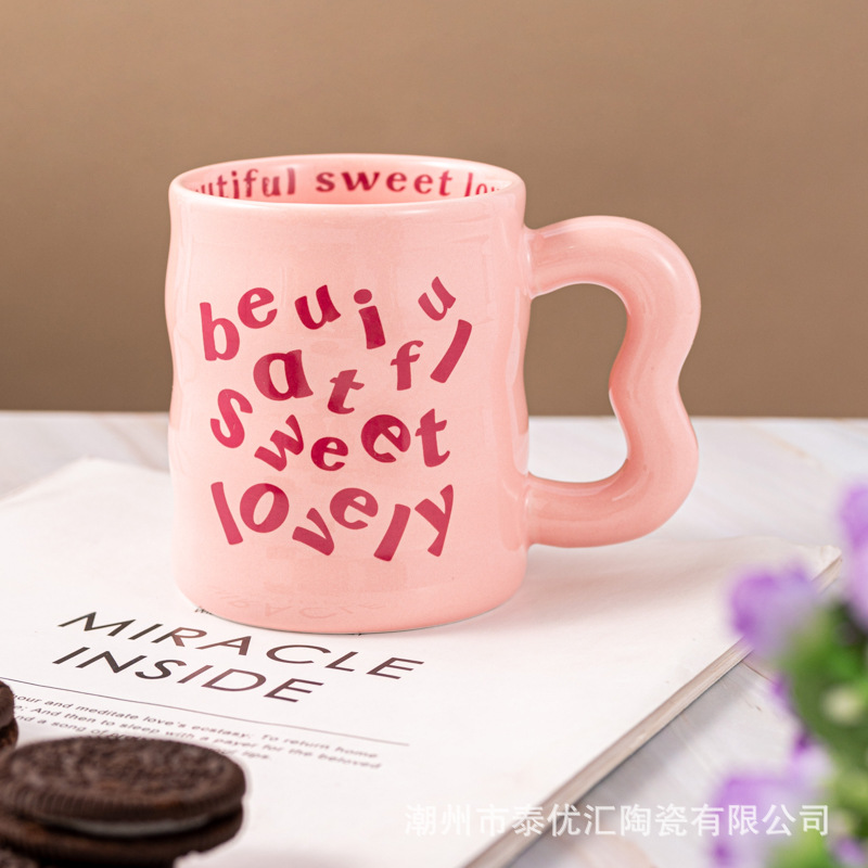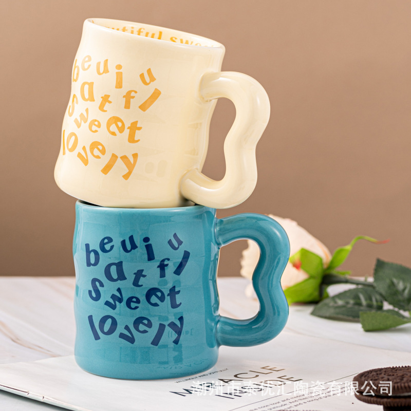 卡通英文陶瓷杯伴手礼马克杯男女学生情侣水杯子咖啡杯情人节礼物