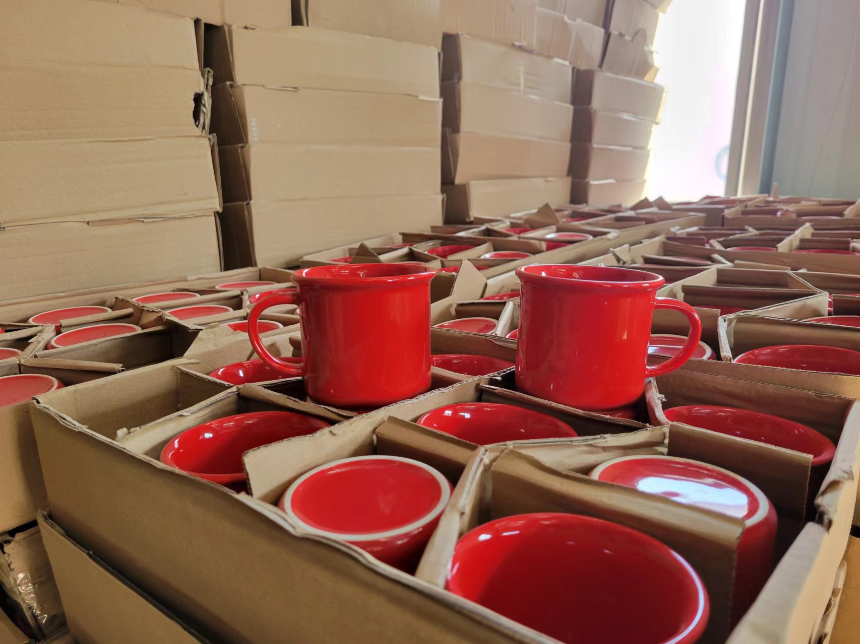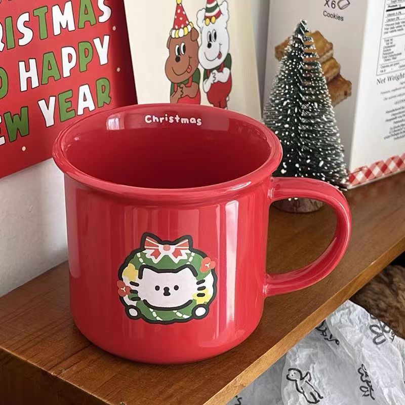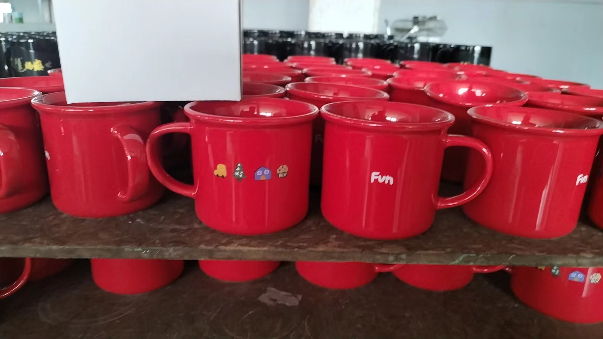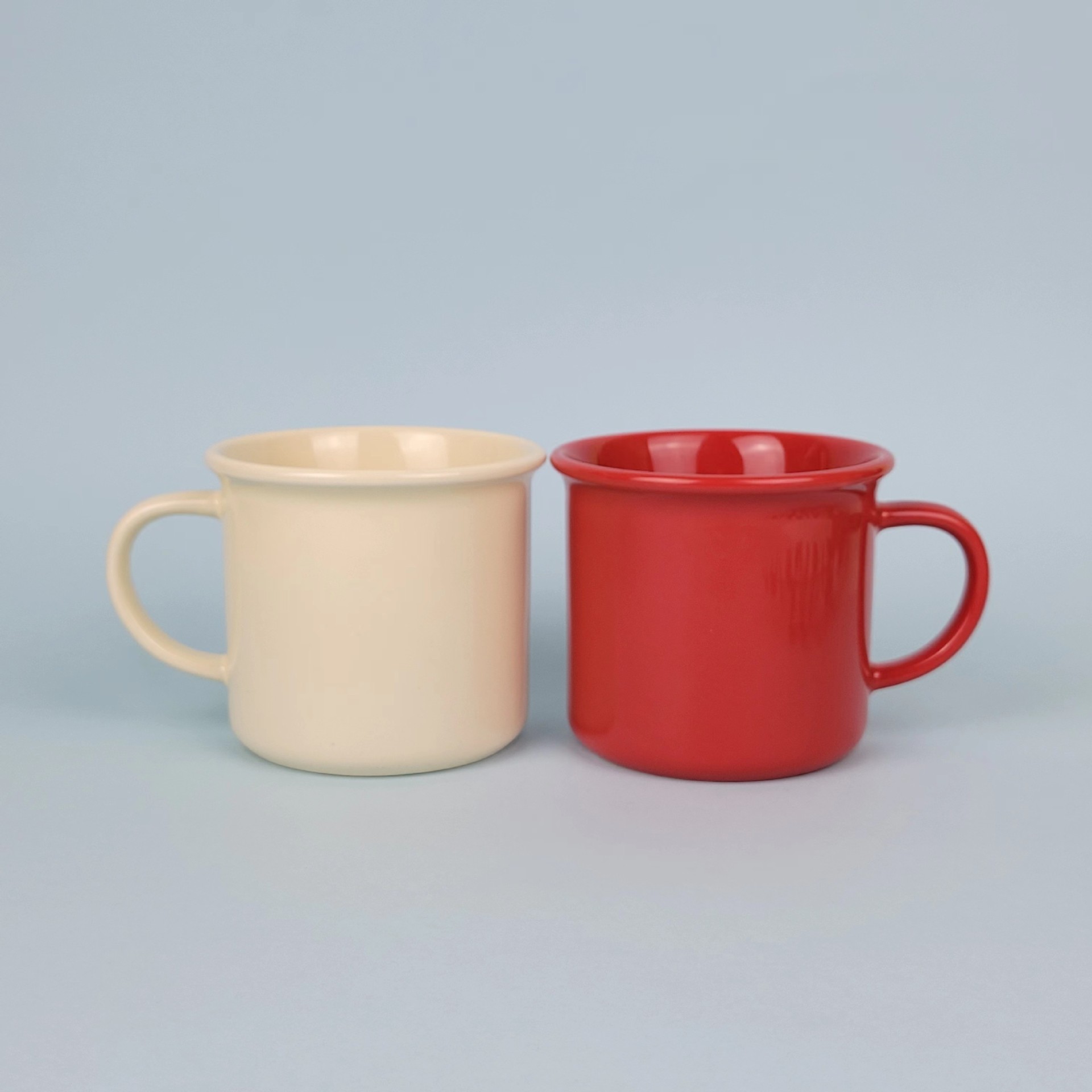出口仿搪瓷陶瓷杯简约马克杯咖啡杯情侣水杯定 制logo礼品批发