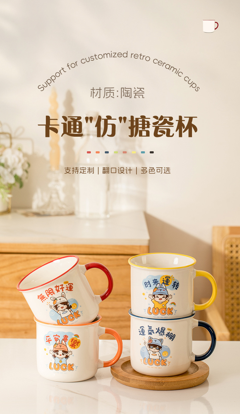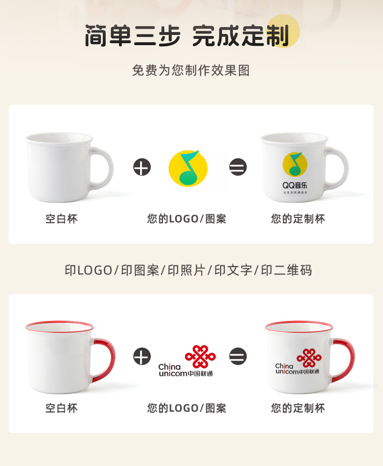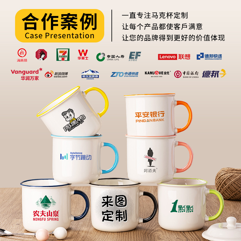 仿搪瓷杯定制LOGO印图马克杯陶瓷杯子咖啡杯水杯怀旧复古广告礼品