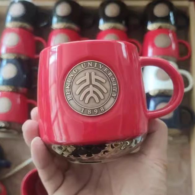 北京大学铜牌马克杯定订清华铜章浮雕 logo咖啡杯学校教师节礼品