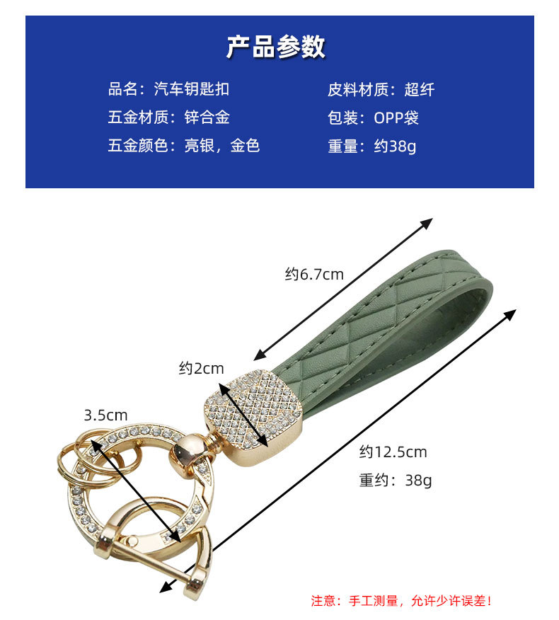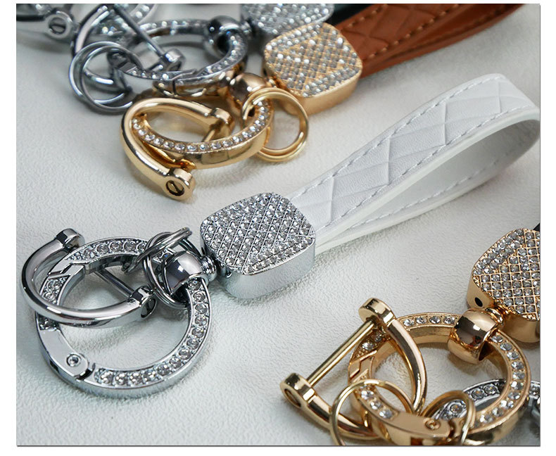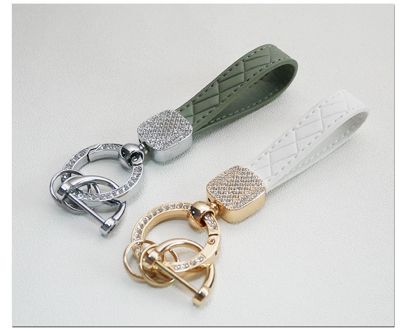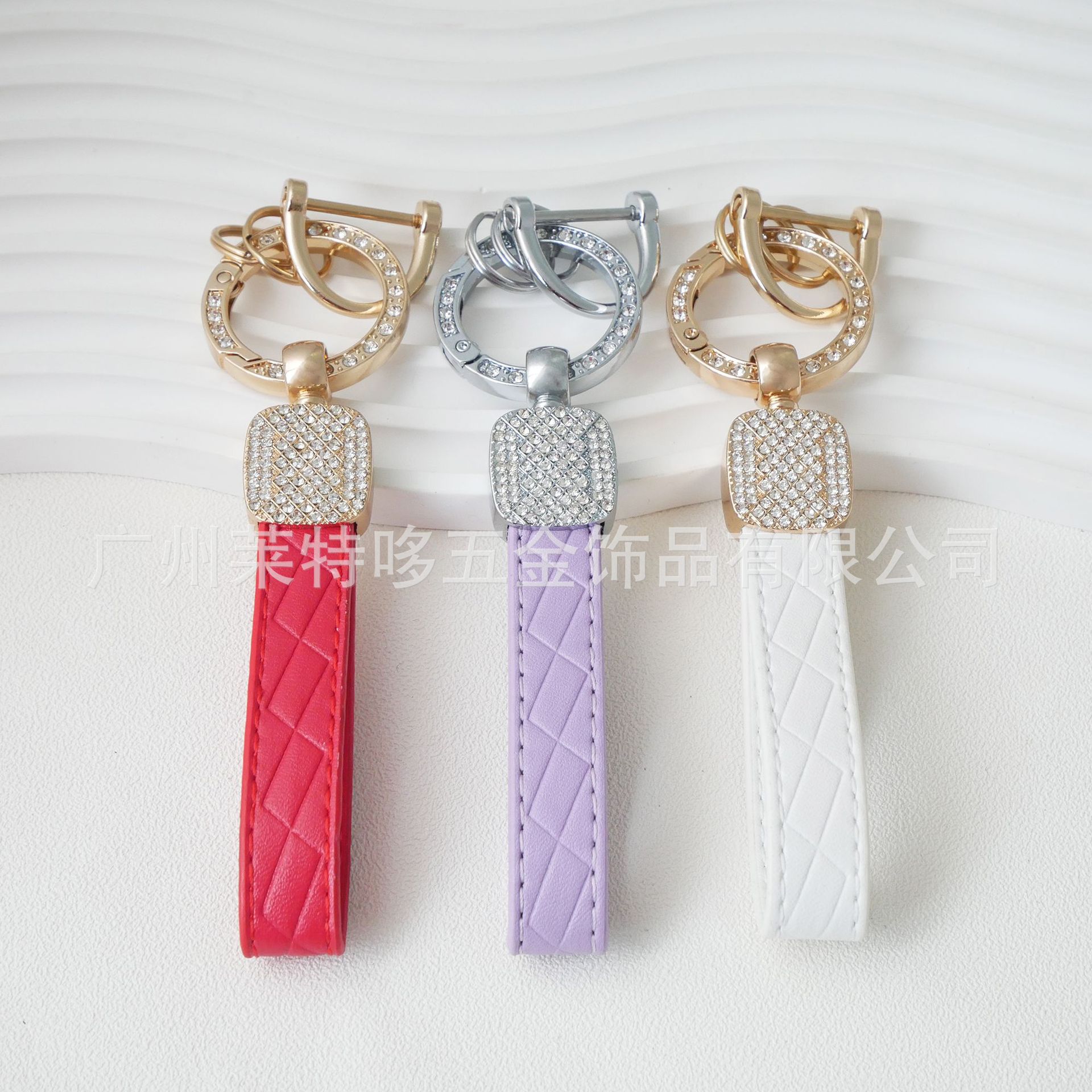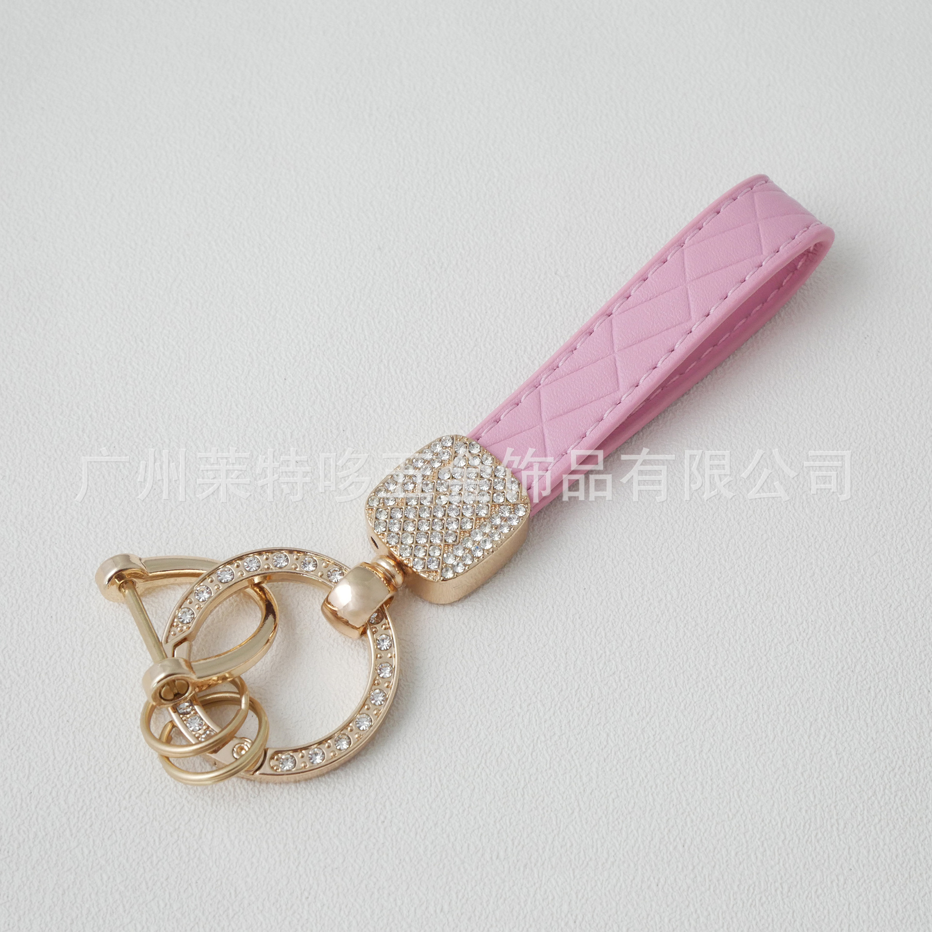 韩系镶钻汽车钥匙扣挂件创意菱形格防掉钥匙扣汽车高级感小礼品