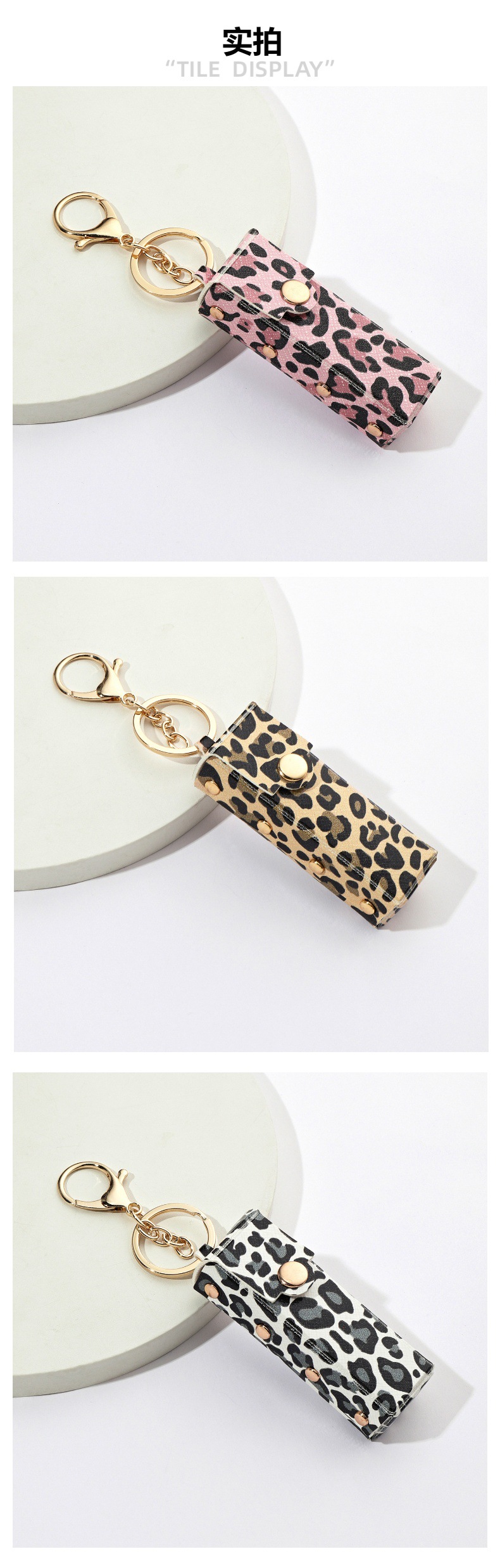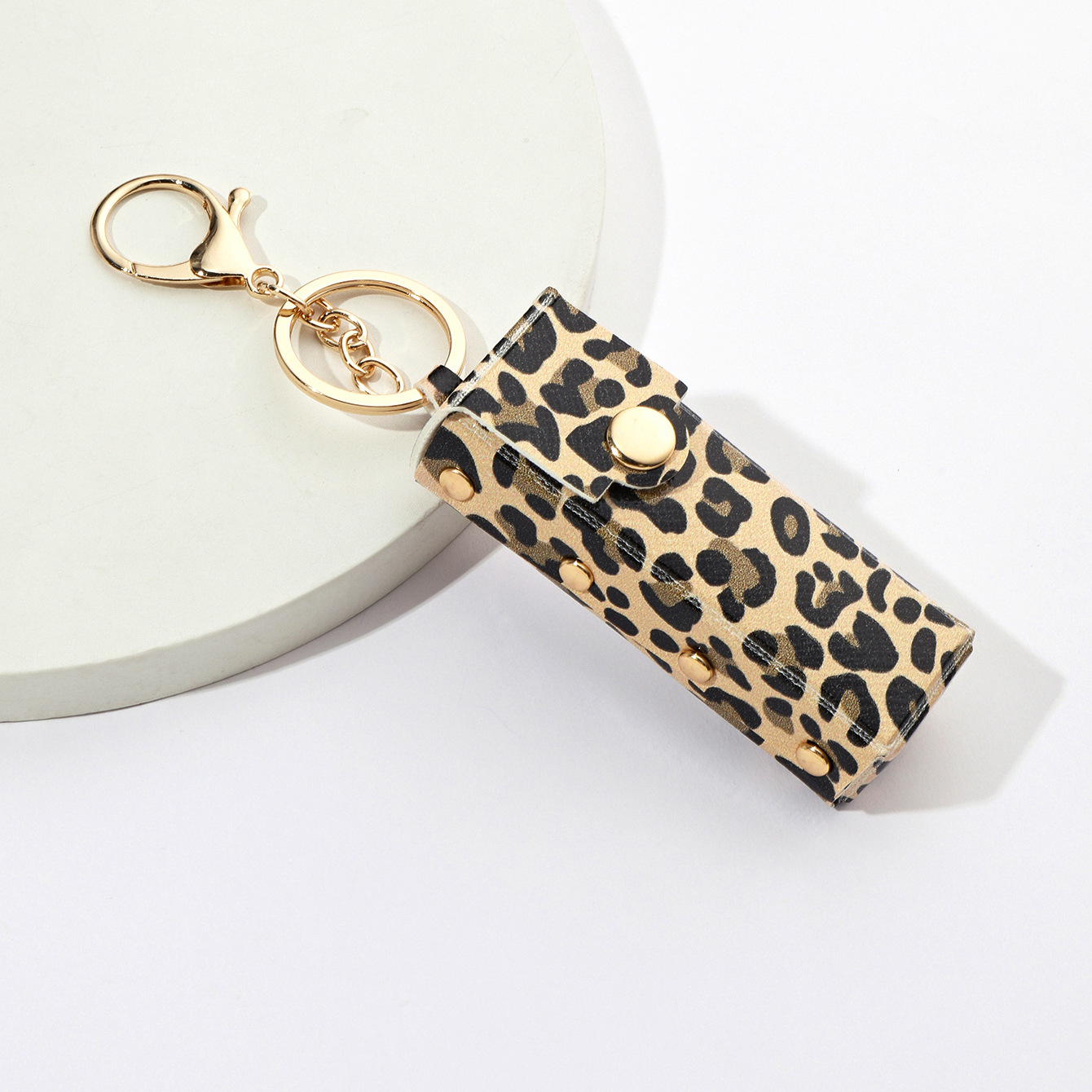 豹纹金属铆钉口红包钥匙扣PU皮革制品钥匙手机包包挂件直播小礼物