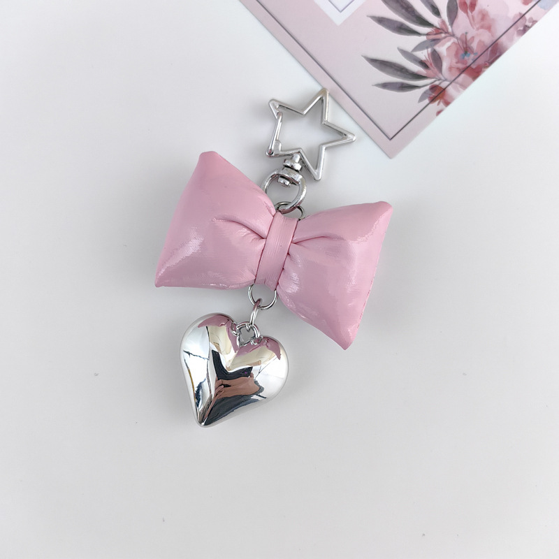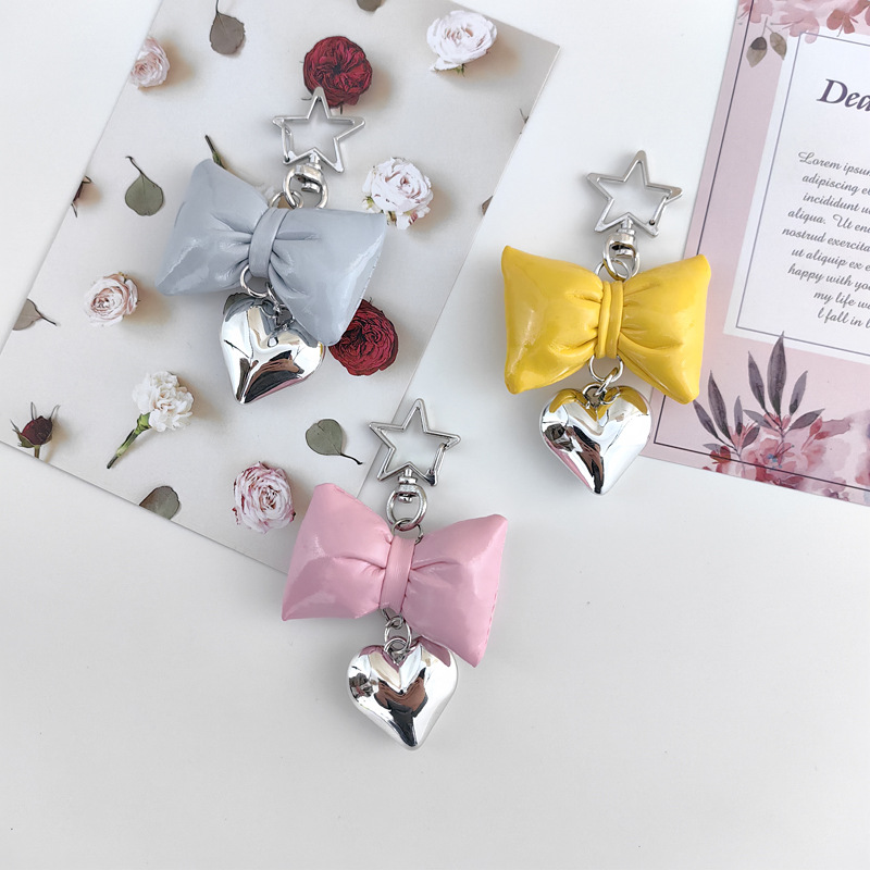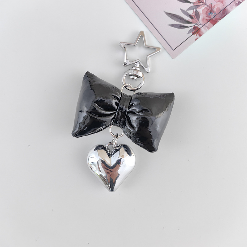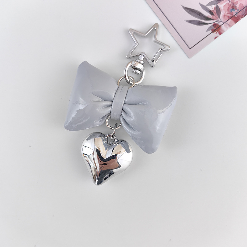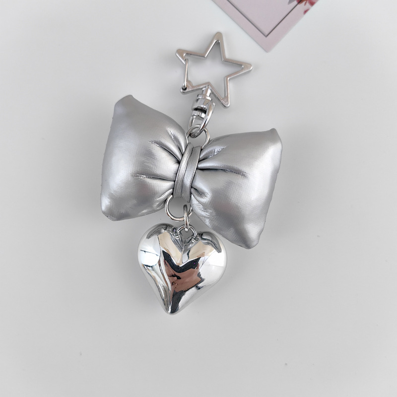 韩国新款银色爱心五角星皮革蝴蝶结包包挂件 时尚百搭钥匙扣挂饰