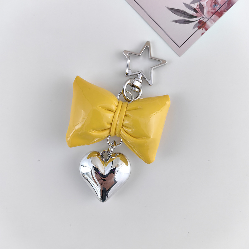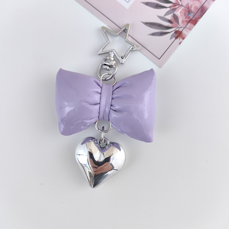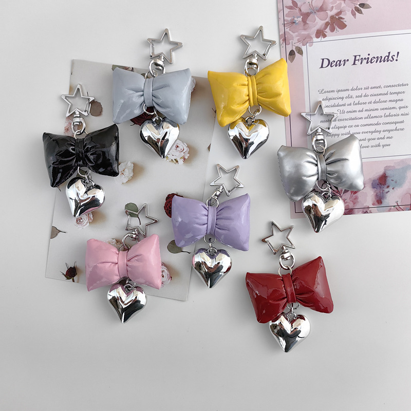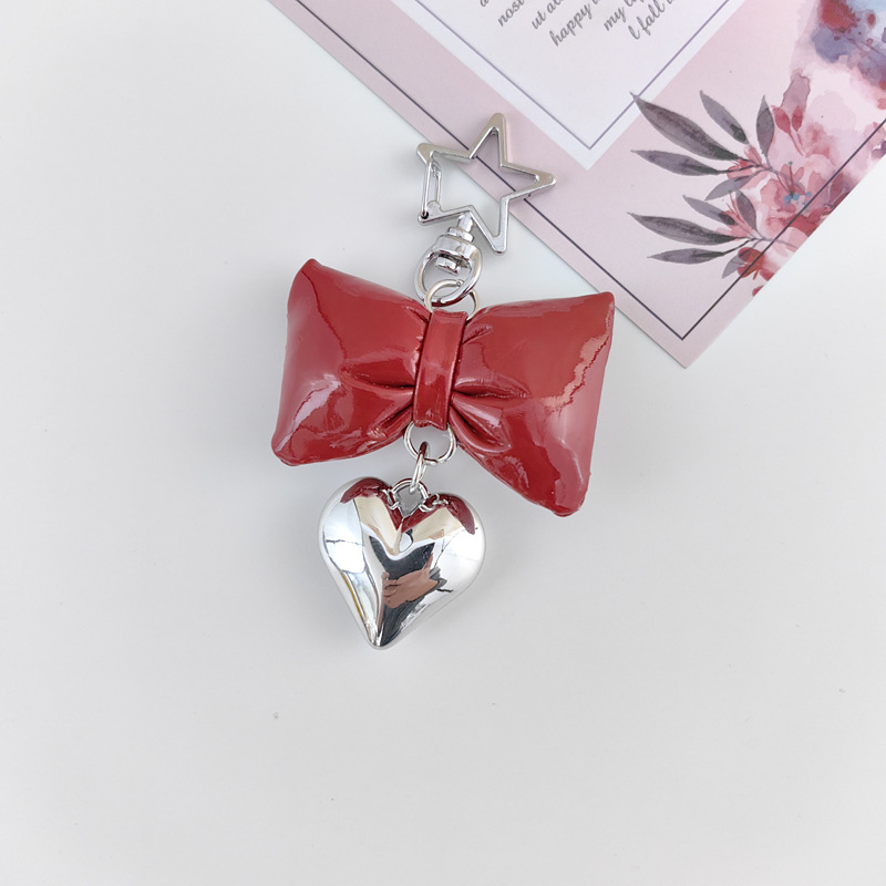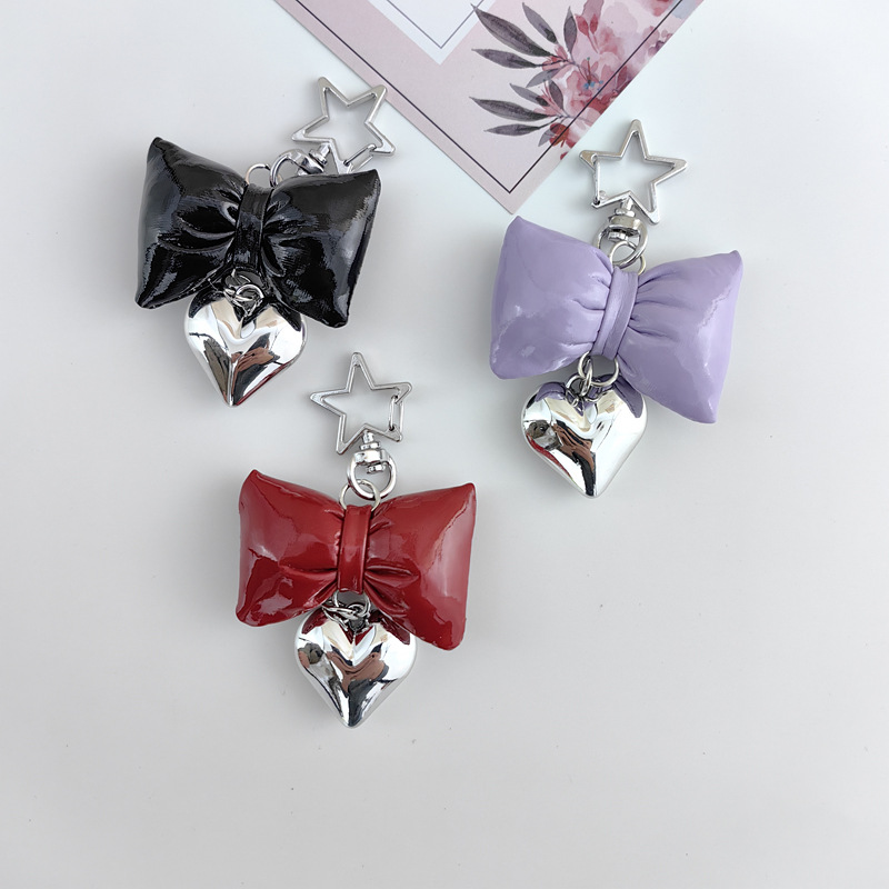 韩国新款银色爱心五角星皮革蝴蝶结包包挂件 时尚百搭钥匙扣挂饰