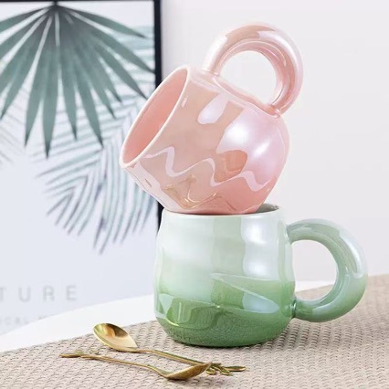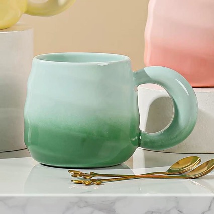 ins风渐变螺纹陶瓷杯高颜值马卡龙奶油风马克杯网红办公室水杯E18