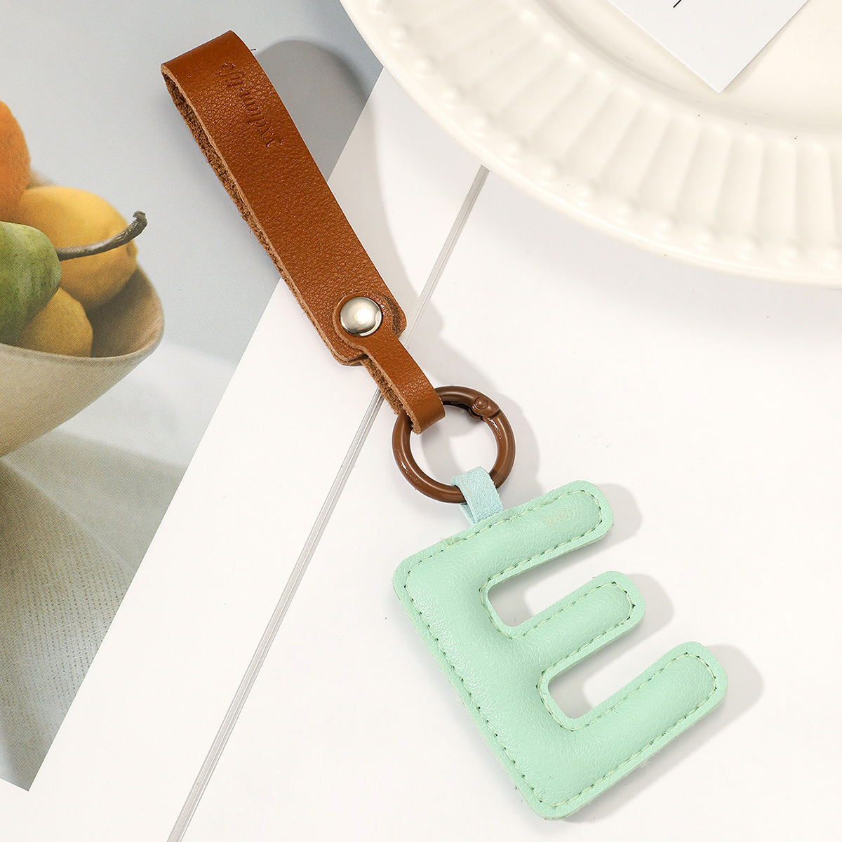 时尚皮质26个字母钥匙扣高级感皮革可爱风挂件爆款亚马逊外贸批发