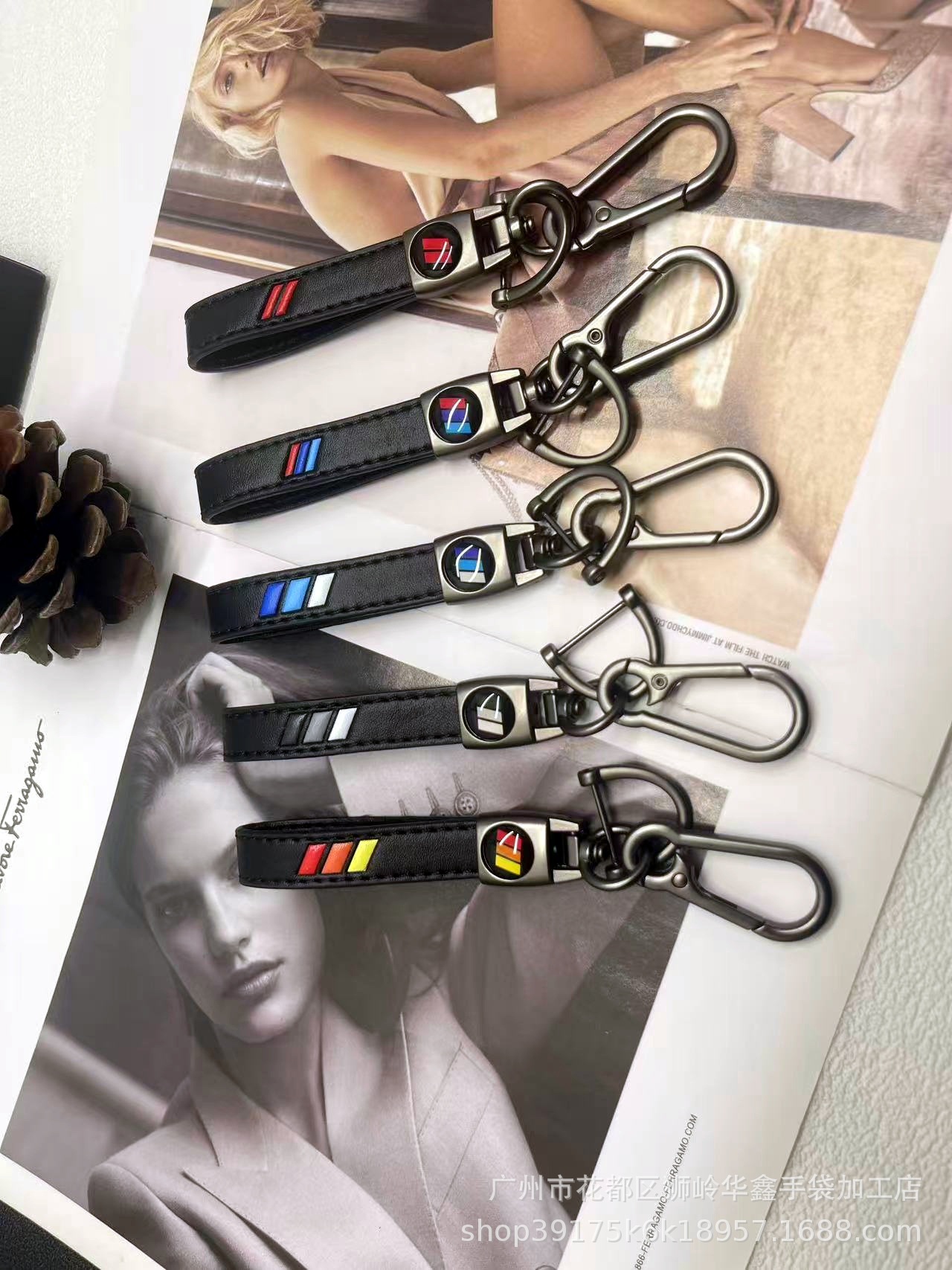 跨境小羊皮汽车钥匙扣制定饰品易安装商务男士钥匙链包包挂件挂饰