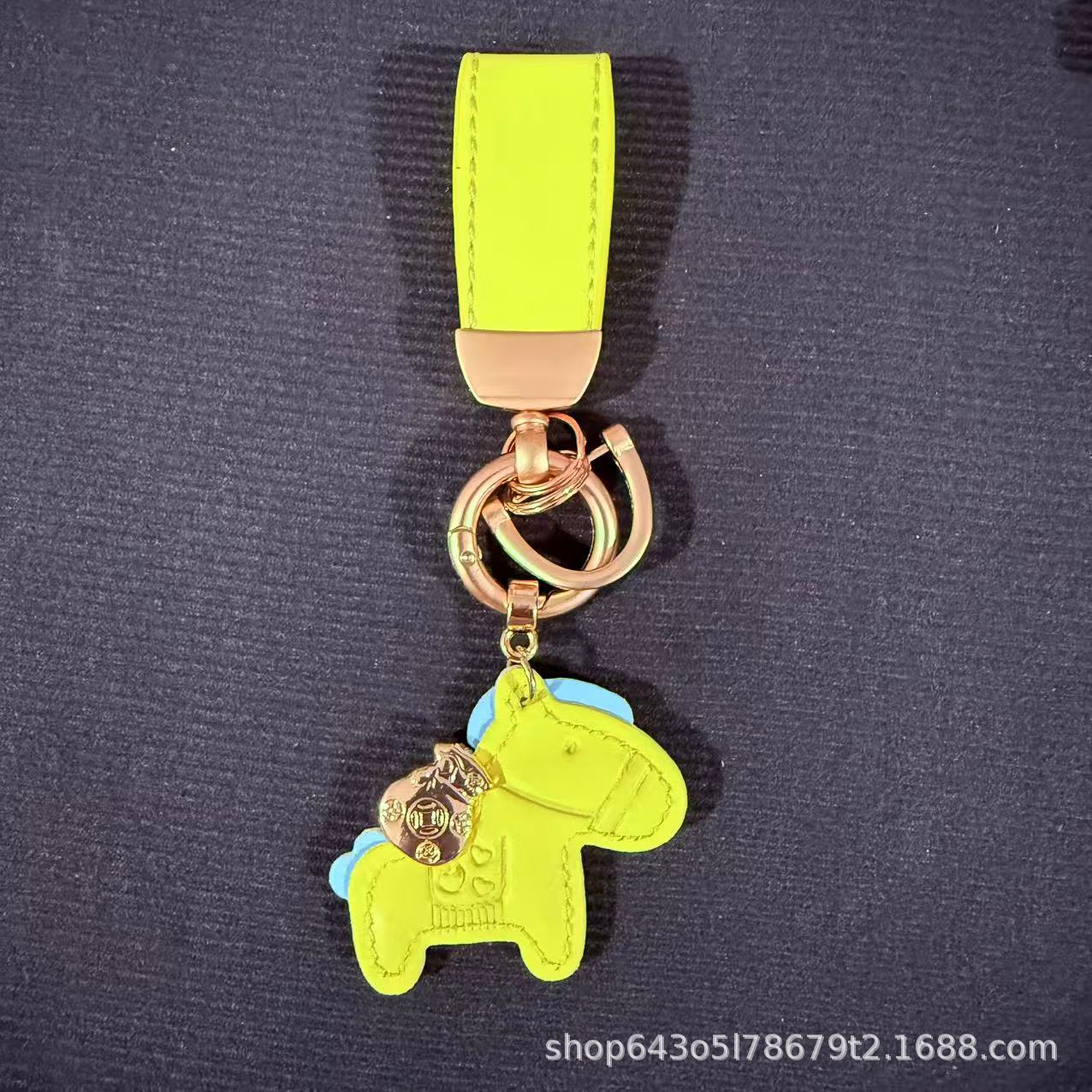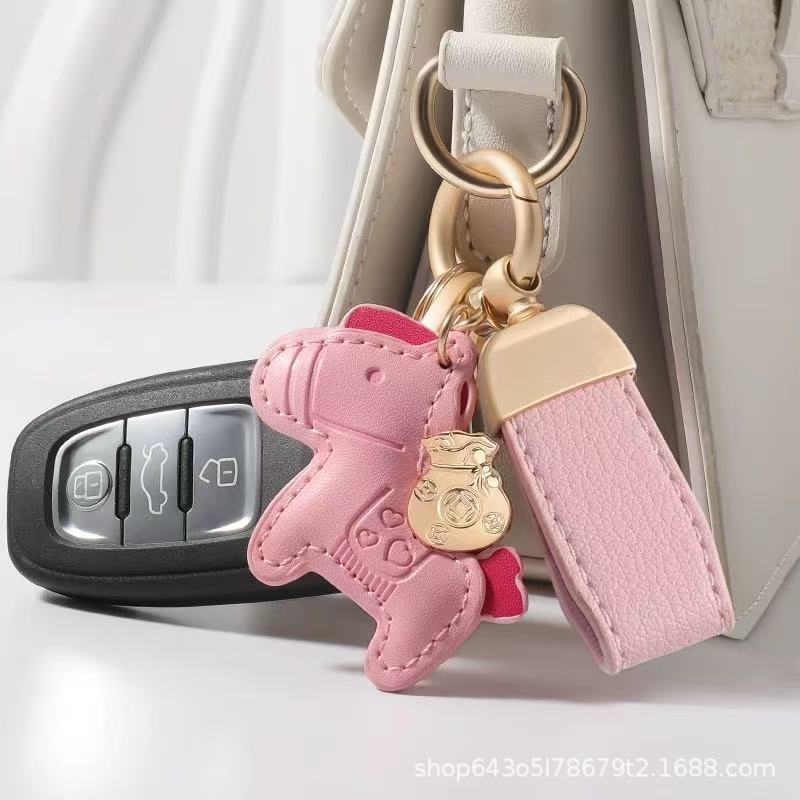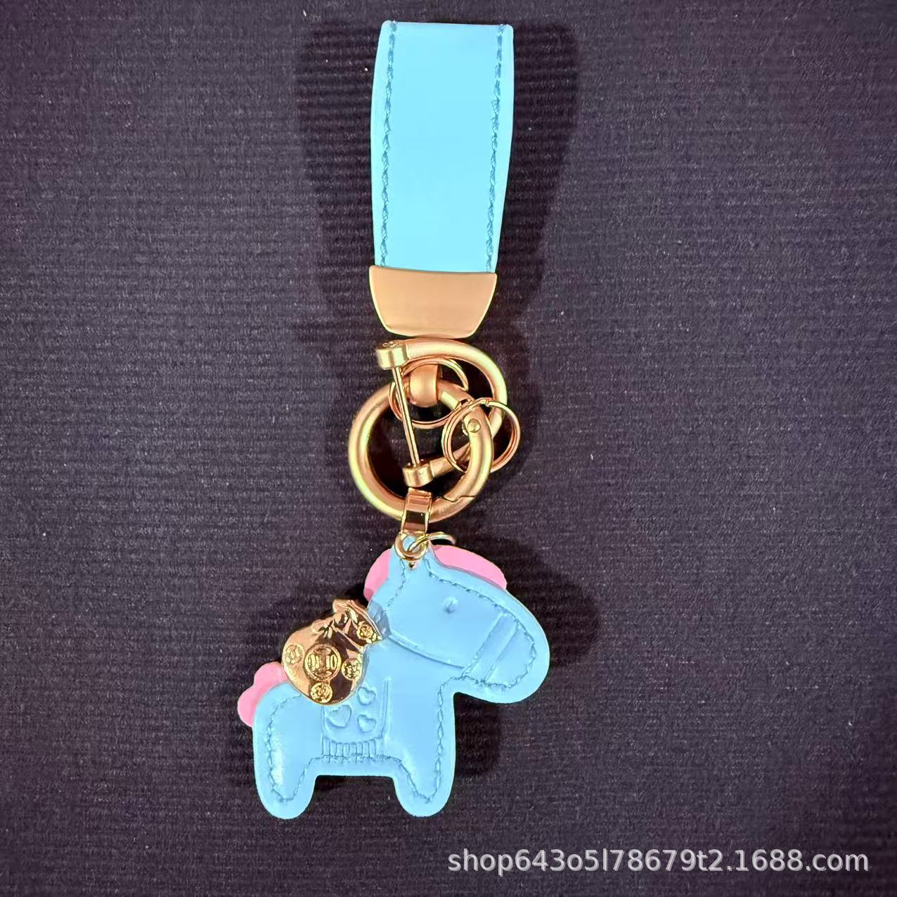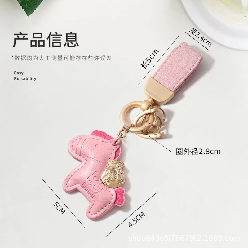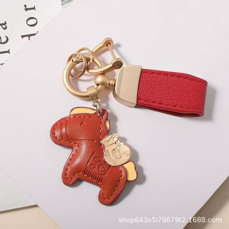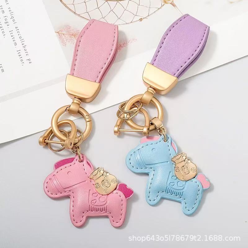 创意马上有钱皮绳钥匙扣皮革卡通小马挂件情侣包包网红汽车钥匙扣