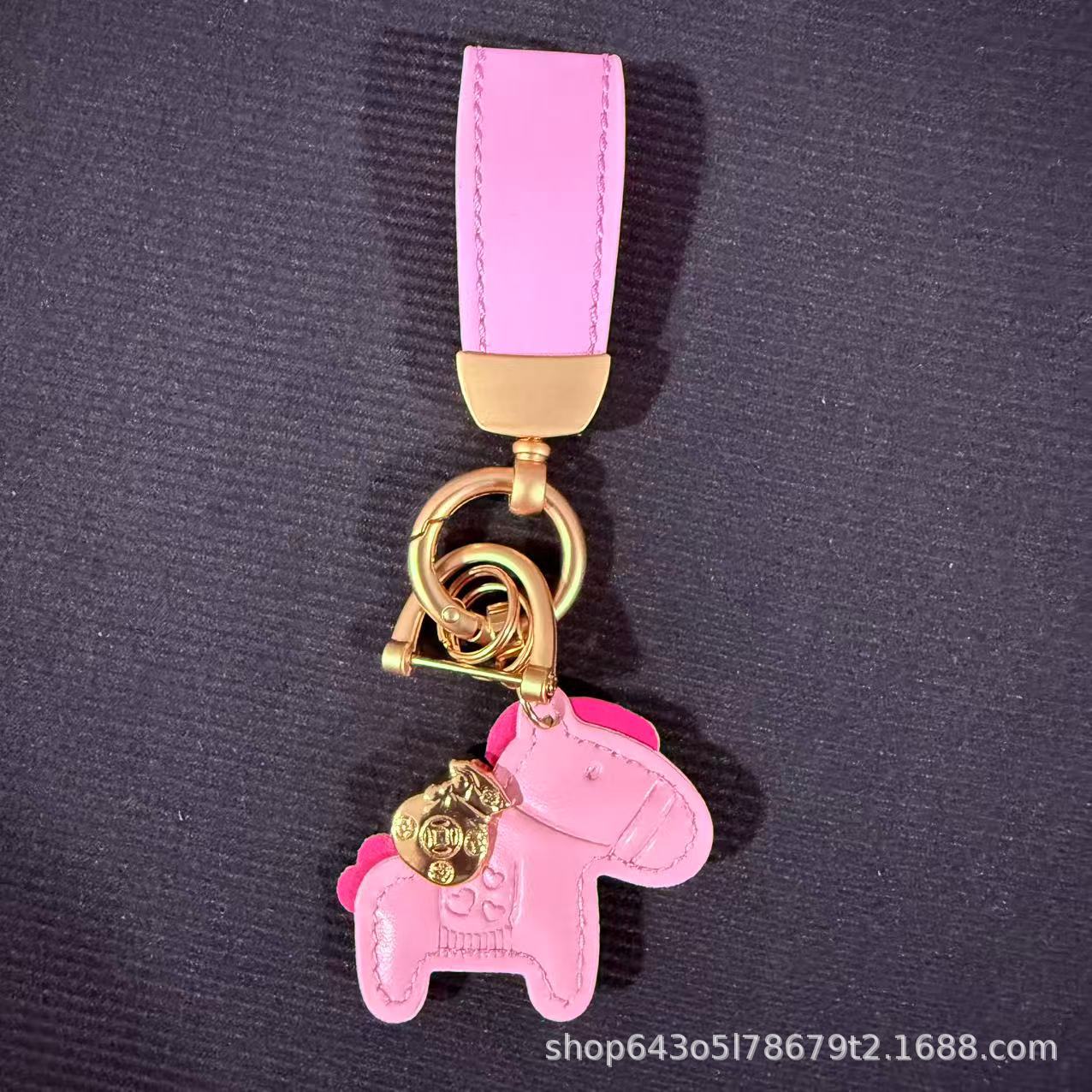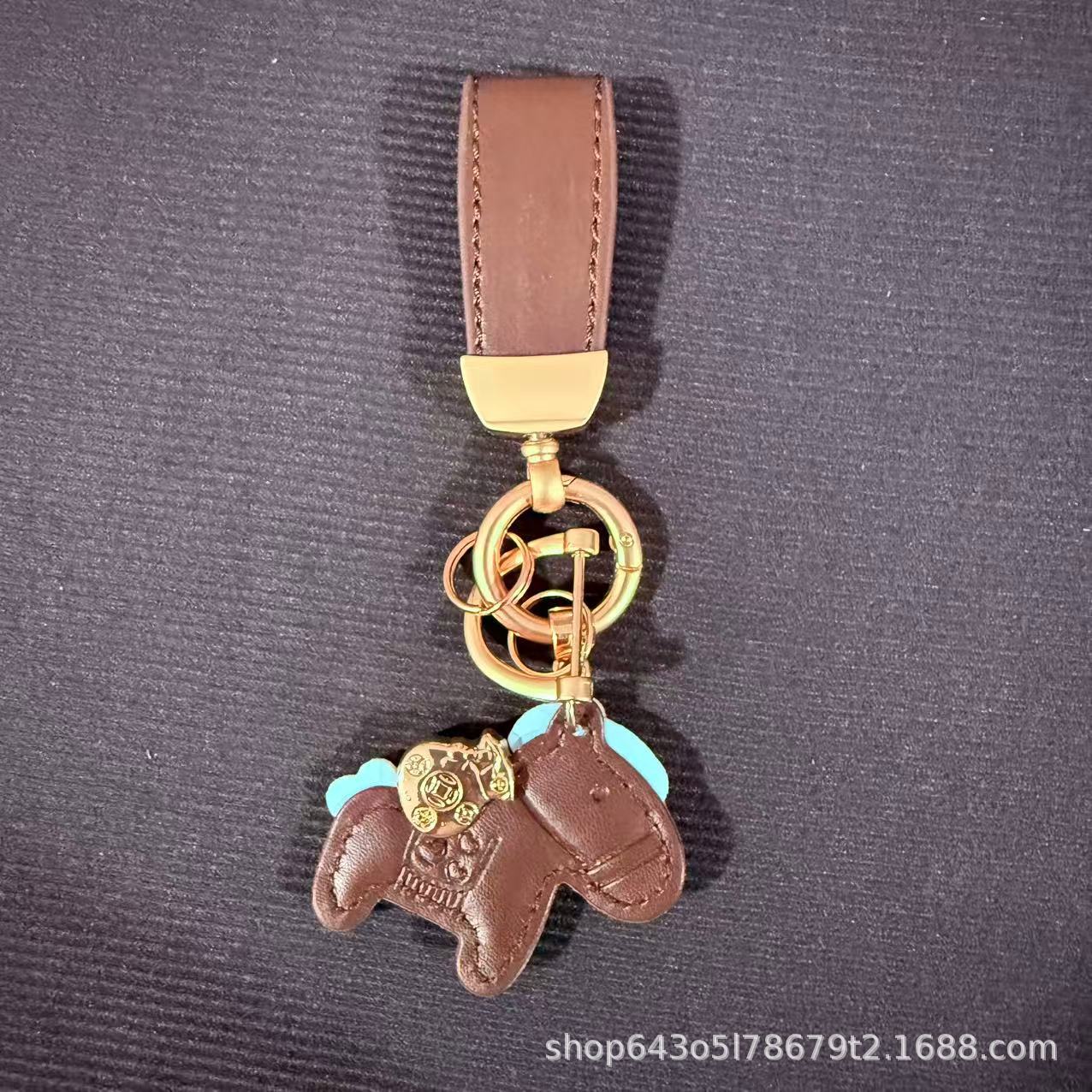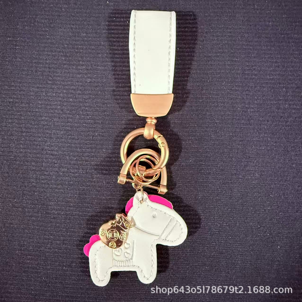 创意马上有钱皮绳钥匙扣皮革卡通小马挂件情侣包包网红汽车钥匙扣