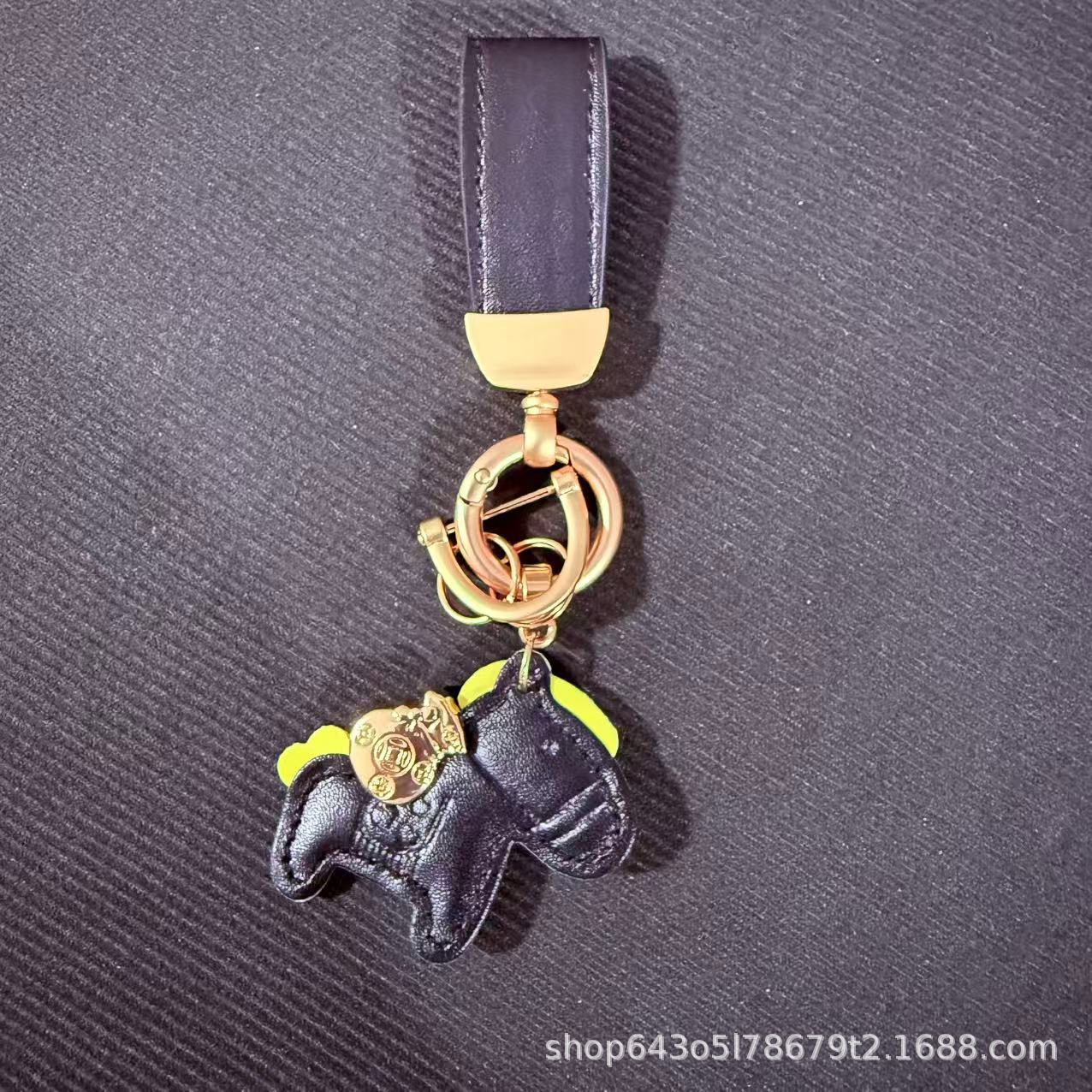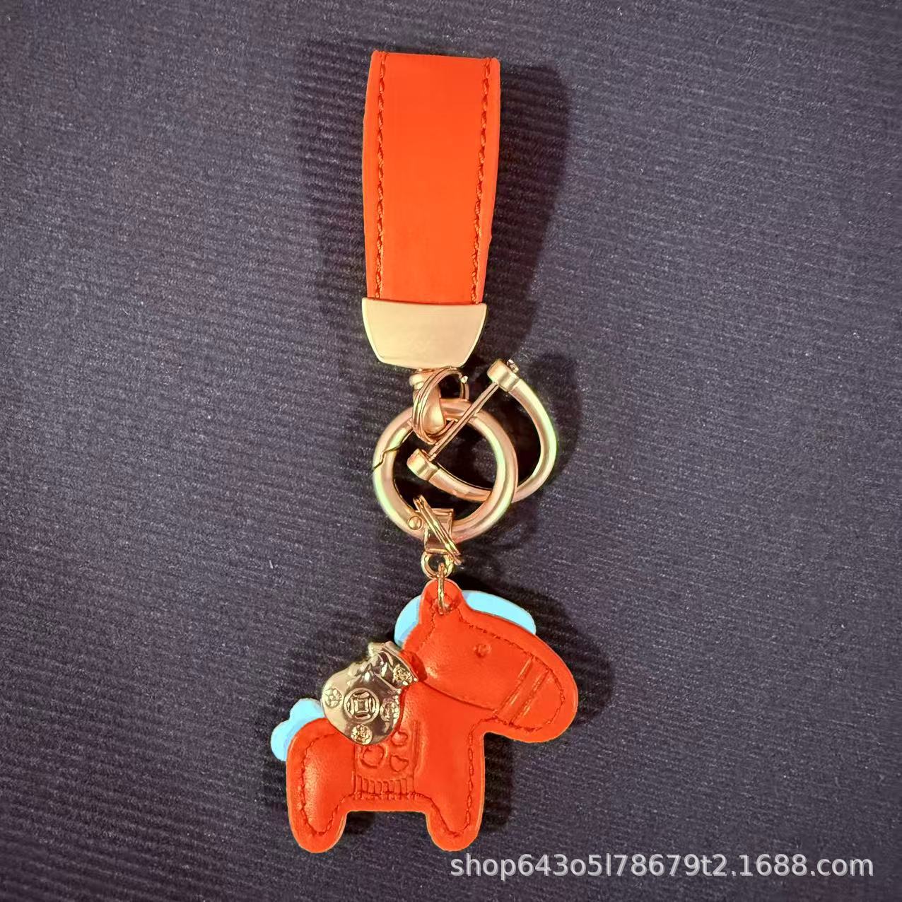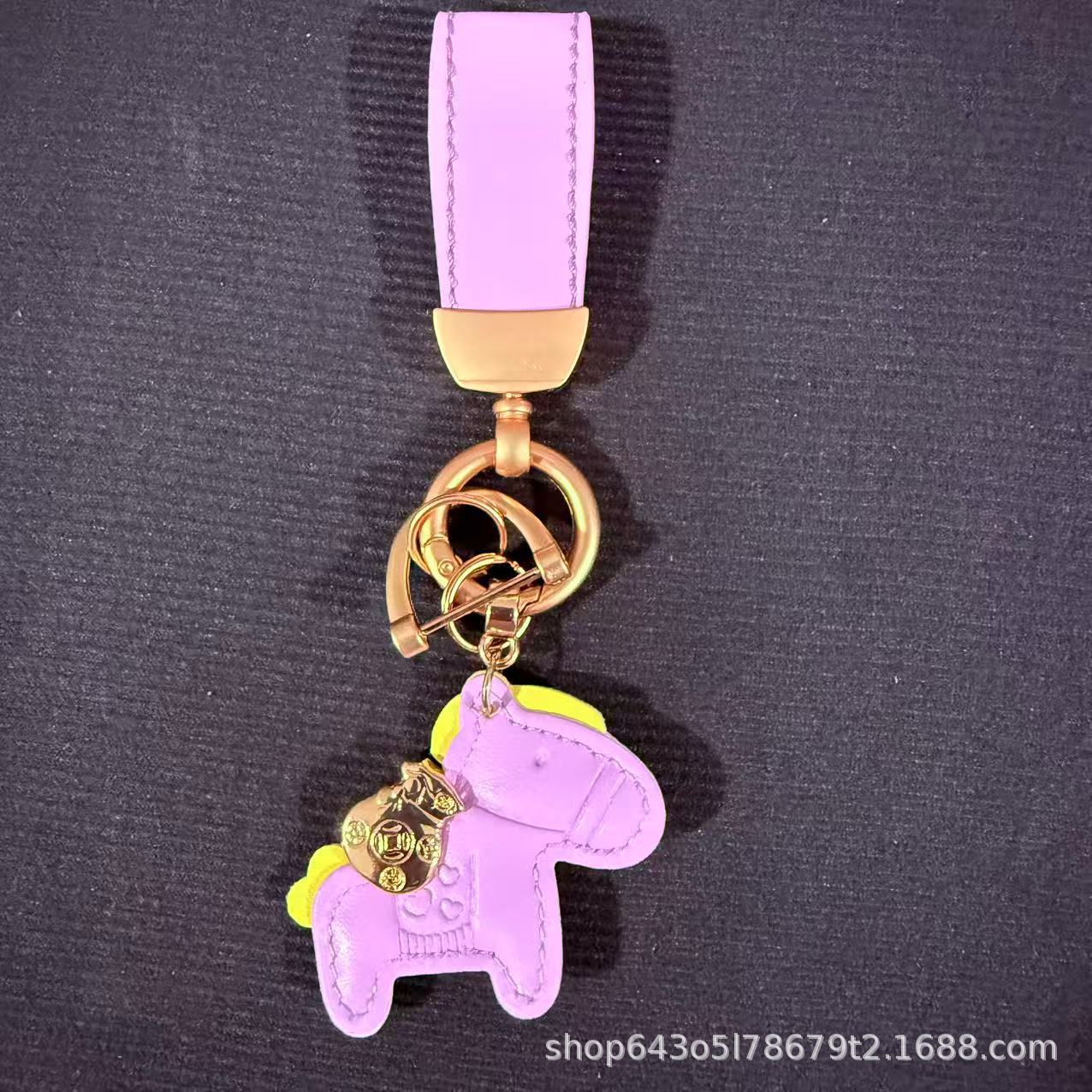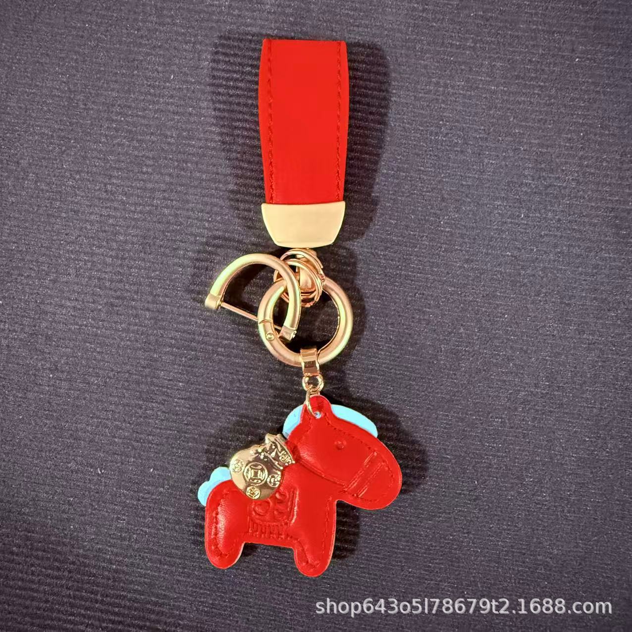 创意马上有钱皮绳钥匙扣皮革卡通小马挂件情侣包包网红汽车钥匙扣