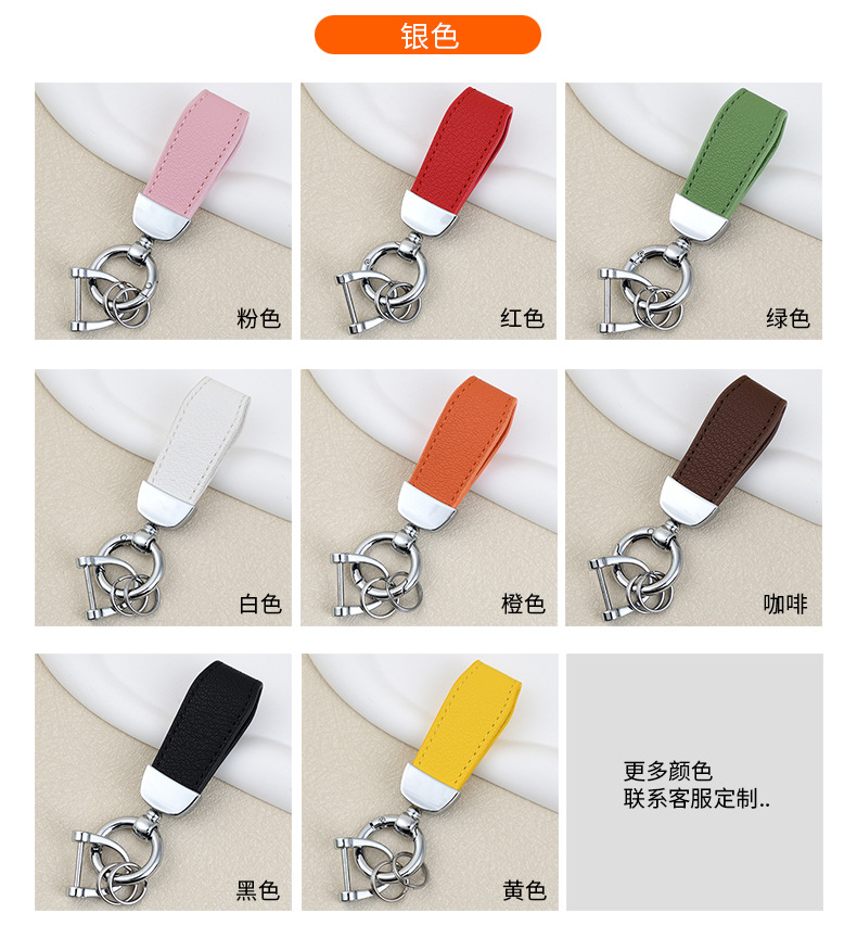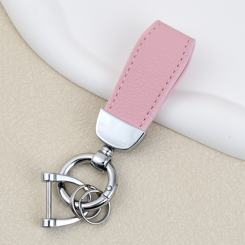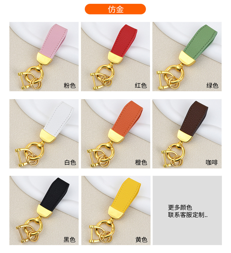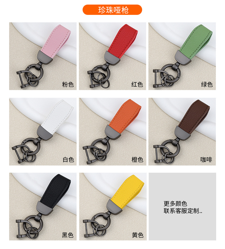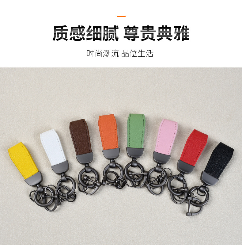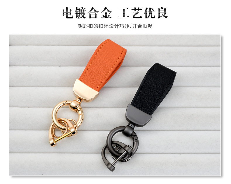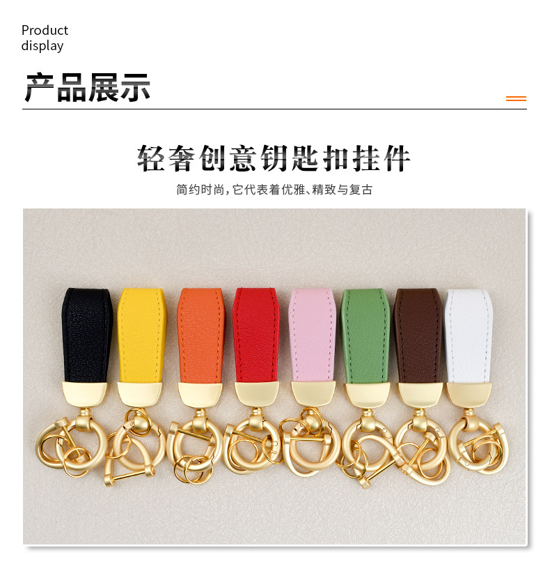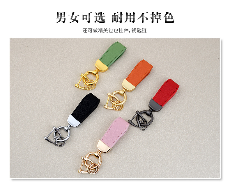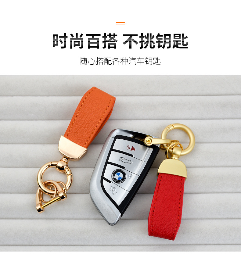 男士汽车皮革钥匙扣印logo情侣钥匙挂件羊纹手绳真皮DIY包包挂件