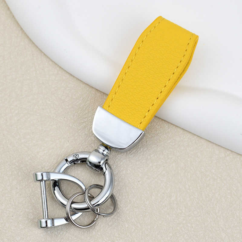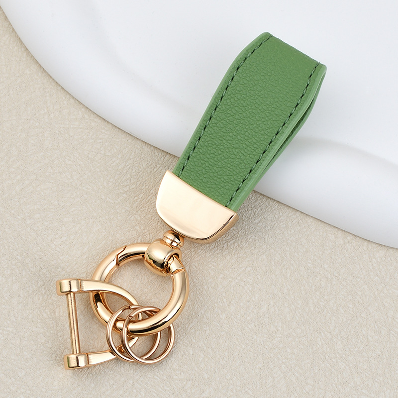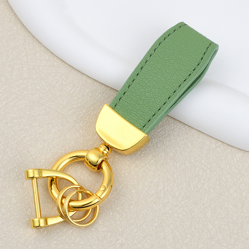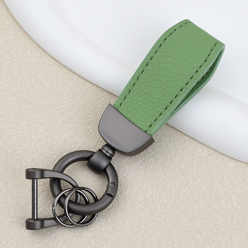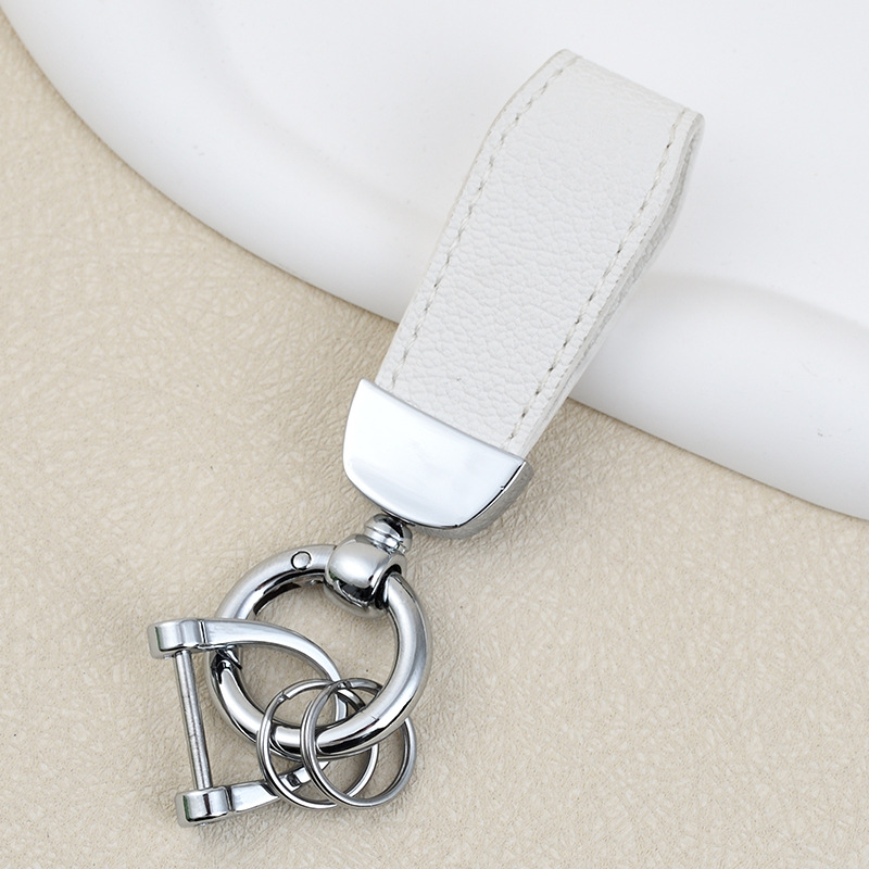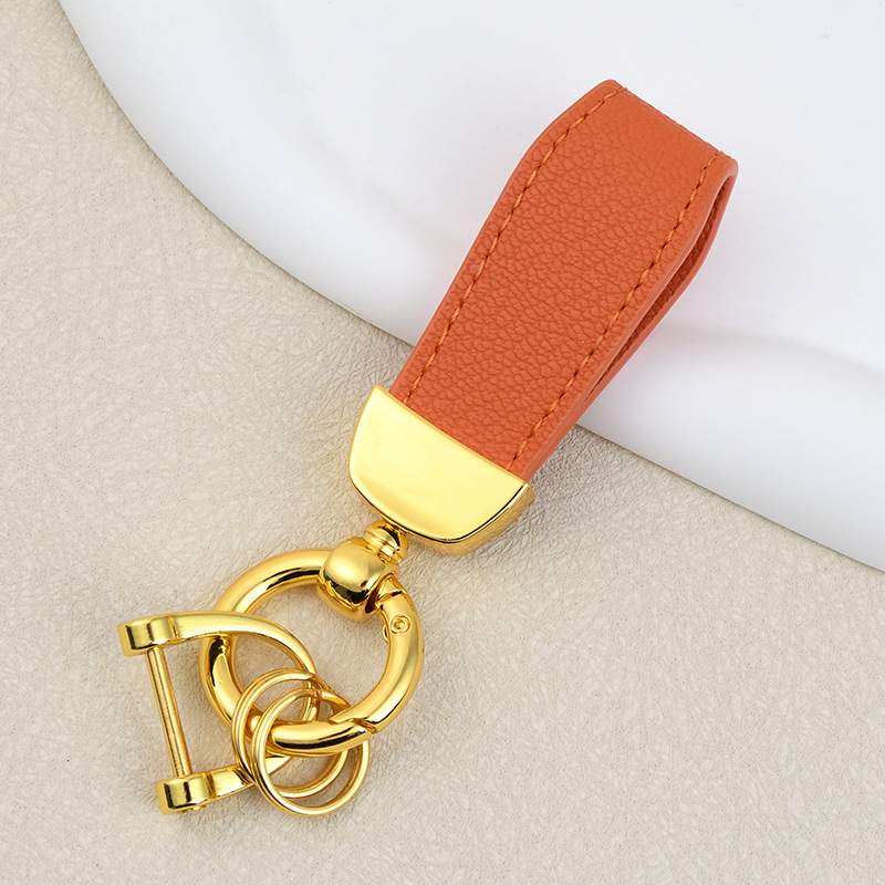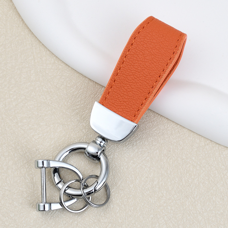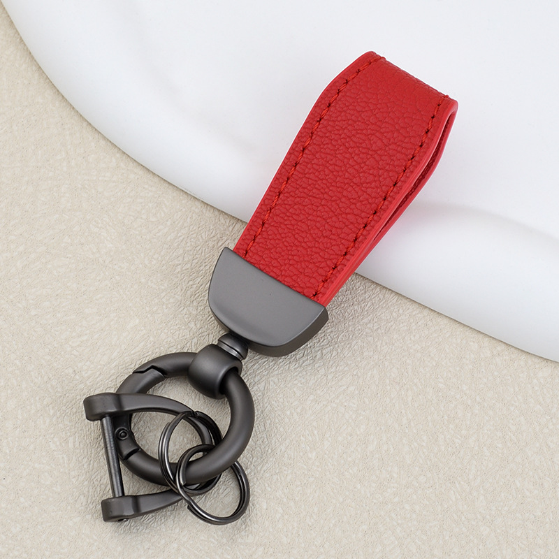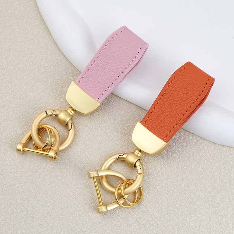 男士汽车皮革钥匙扣印logo情侣钥匙挂件羊纹手绳真皮DIY包包挂件